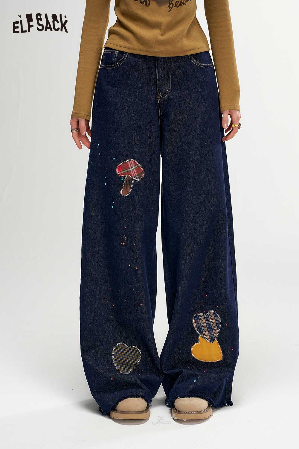 Vintage Raw Hem Wide Leg Splatter Graphic Jeans