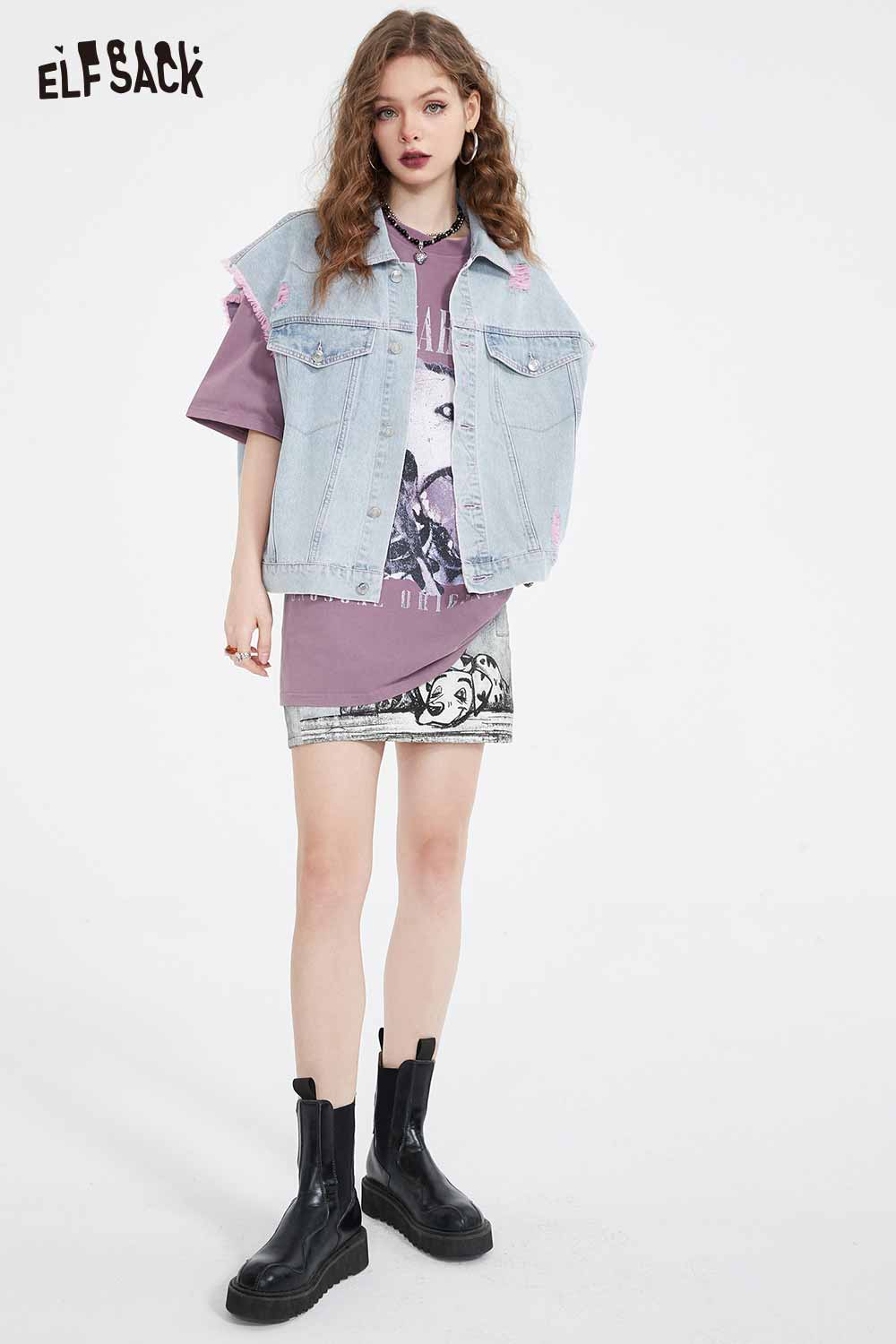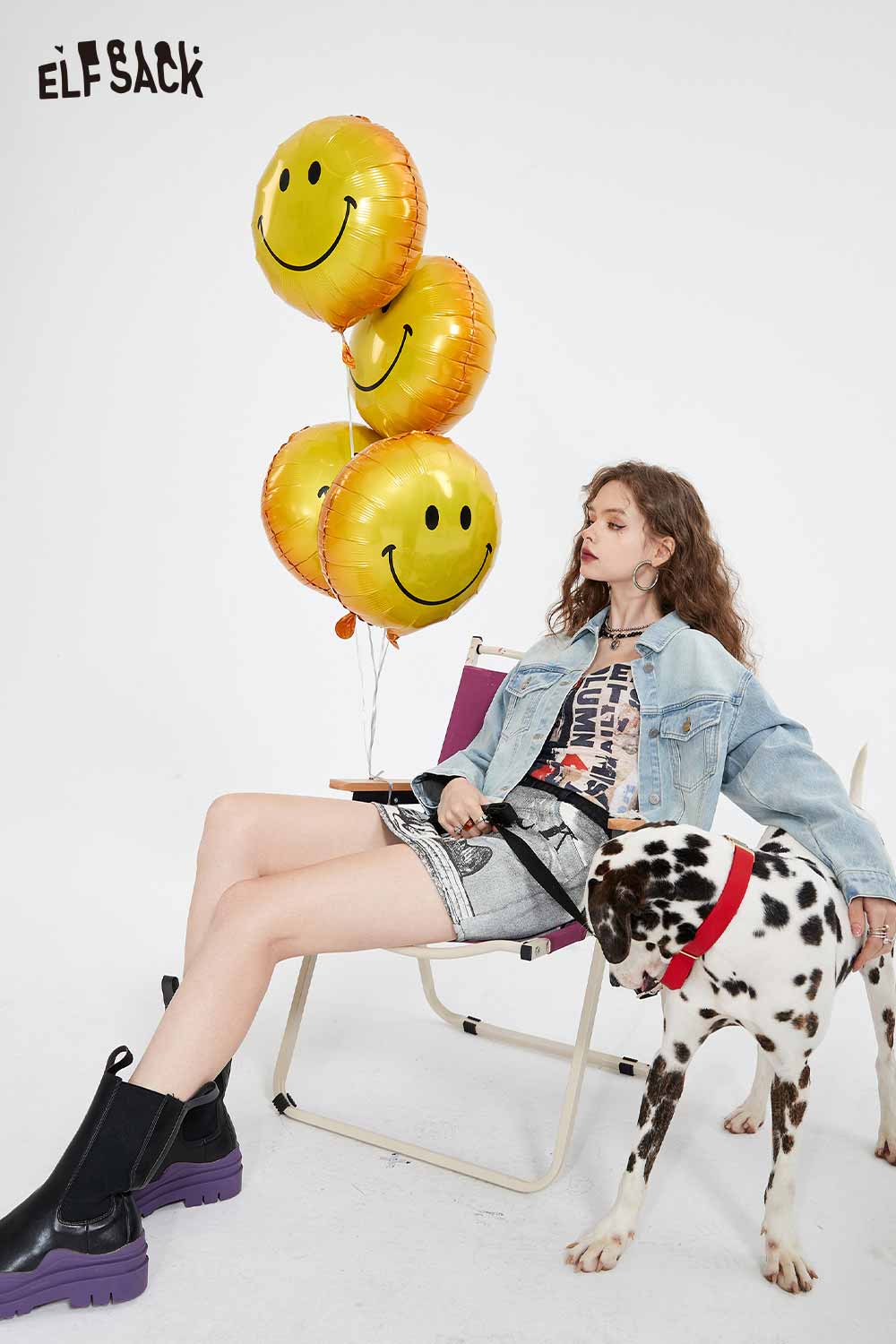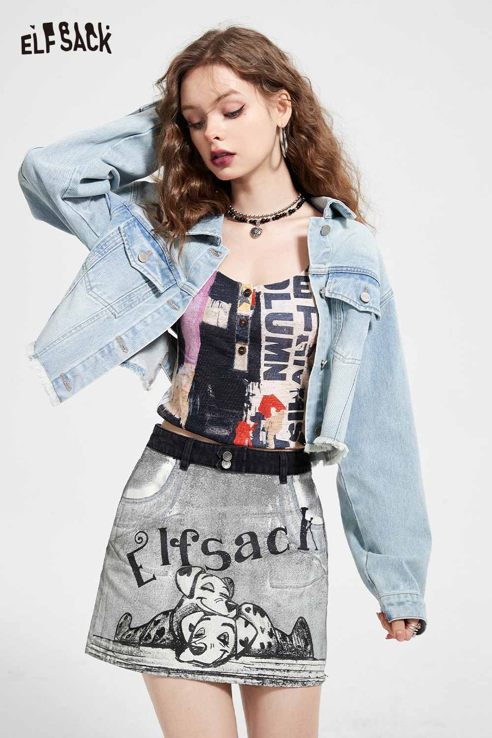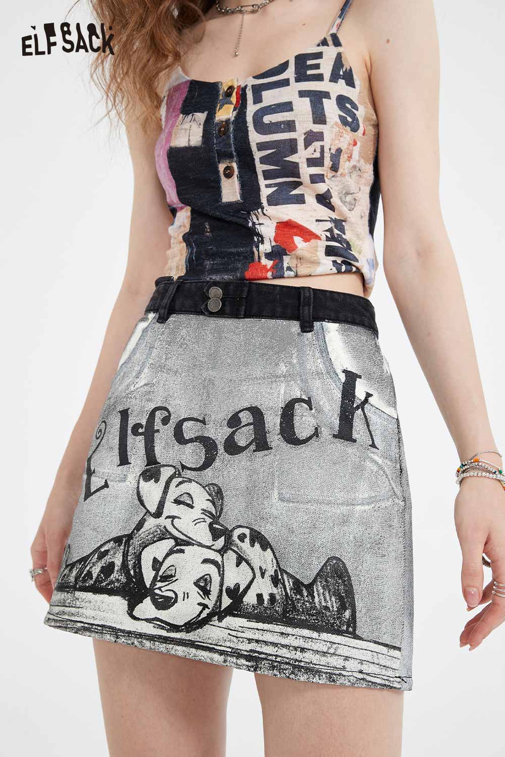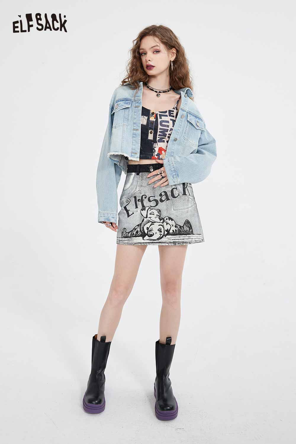 Soft Petite Denim High Waist Loose A-Line Skirt