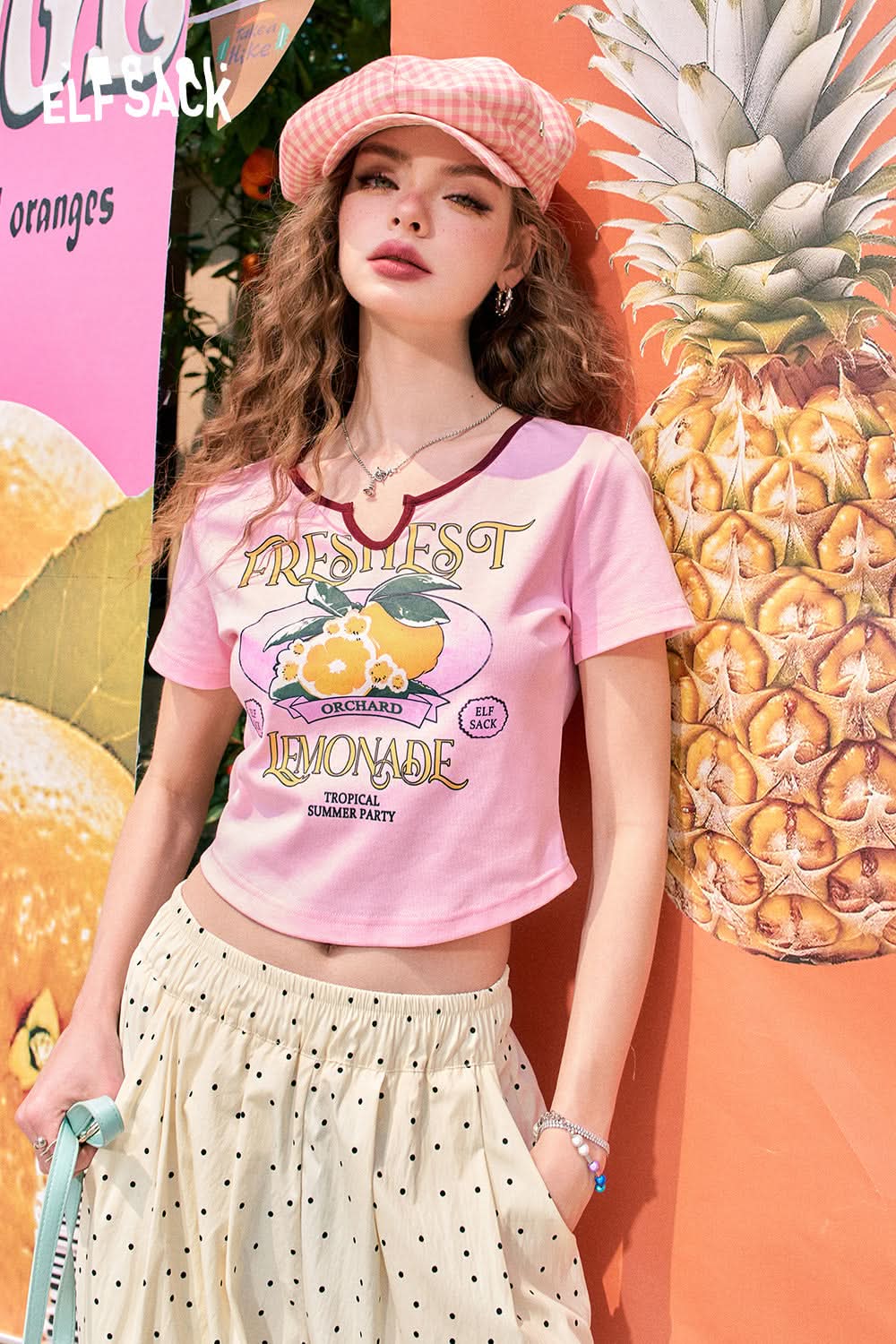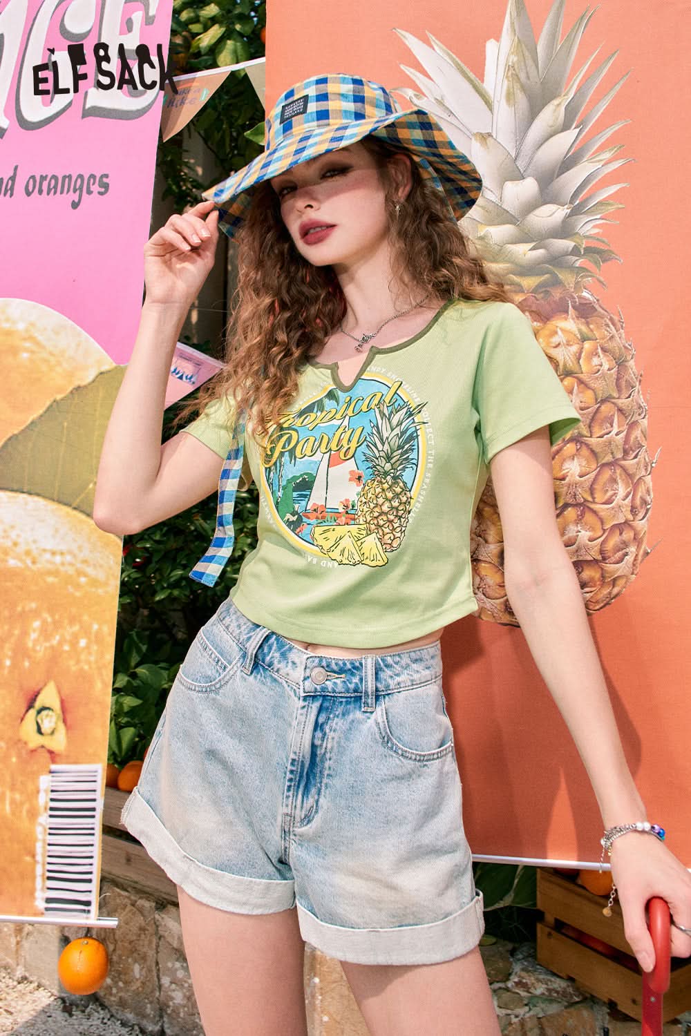 Y2K Contrast Trim Curved Hem Slim Fit Short Sleeve T-shirt