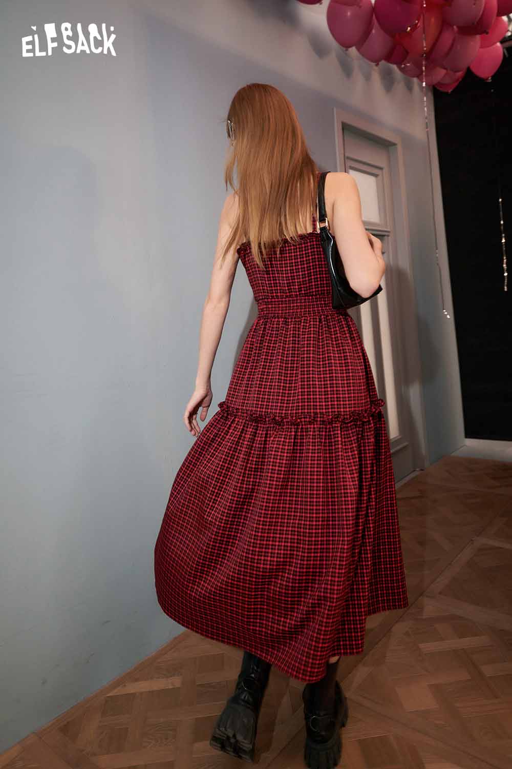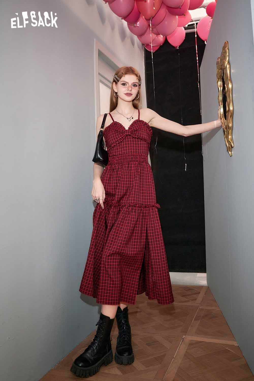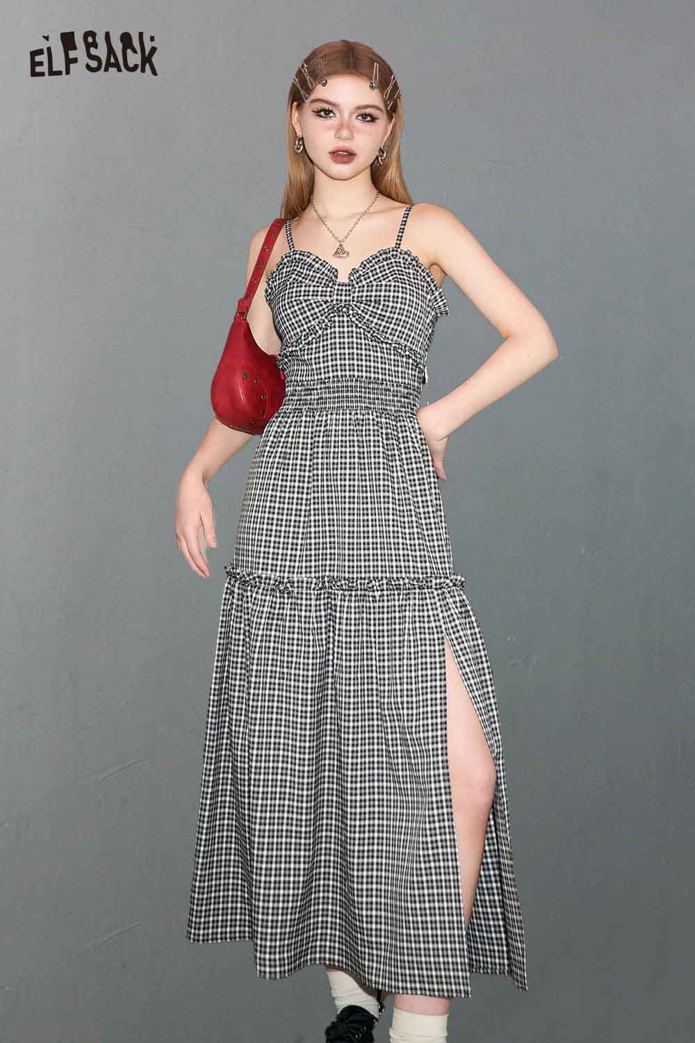 Plaid Slit Strapless Dress Slim Waist Bodycon Design
