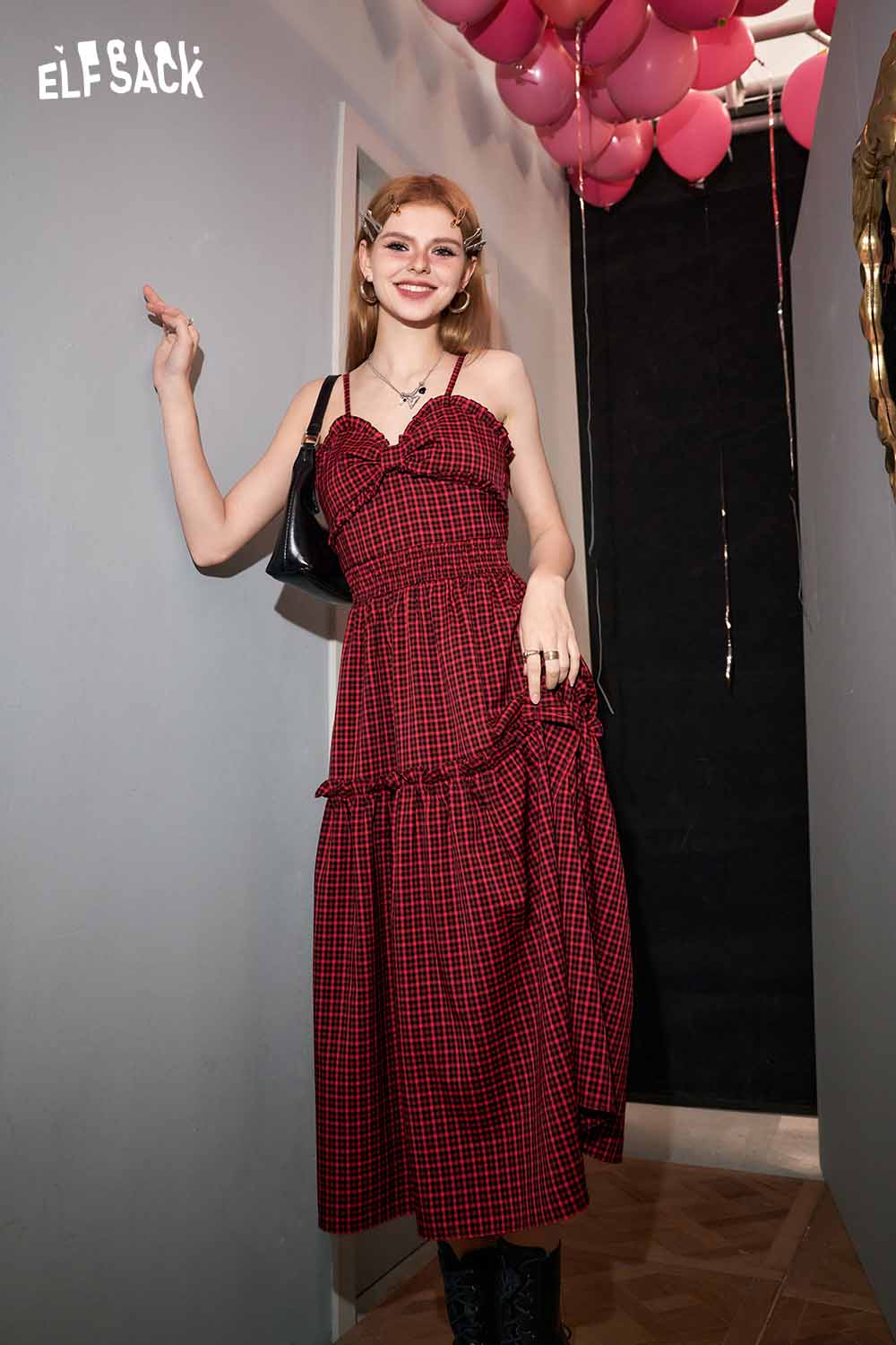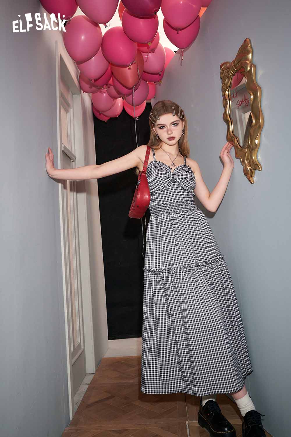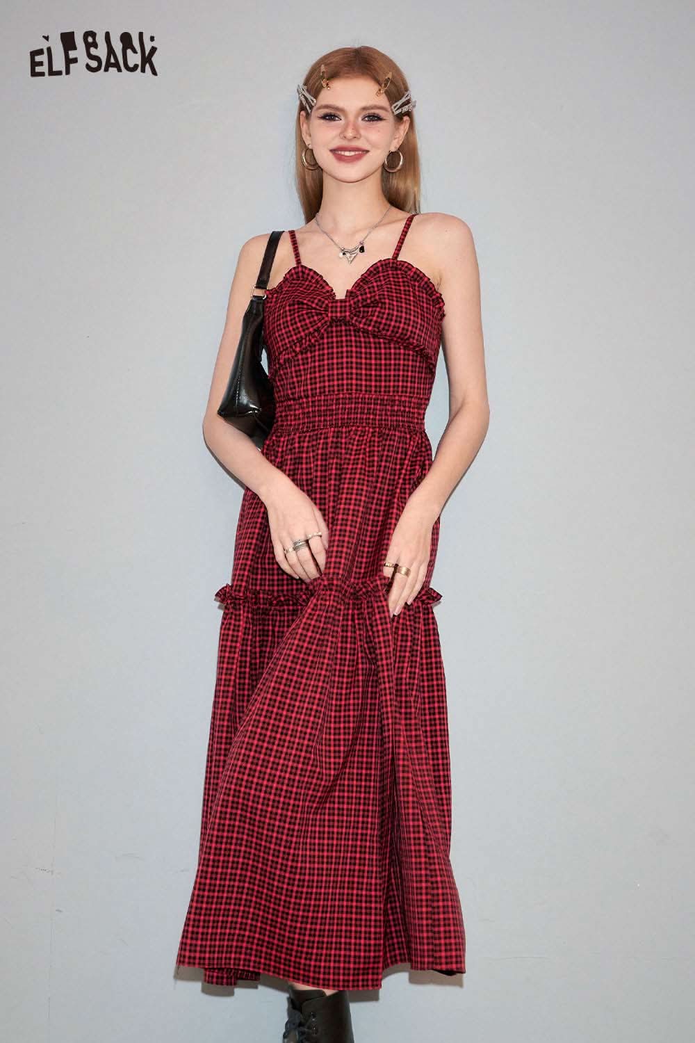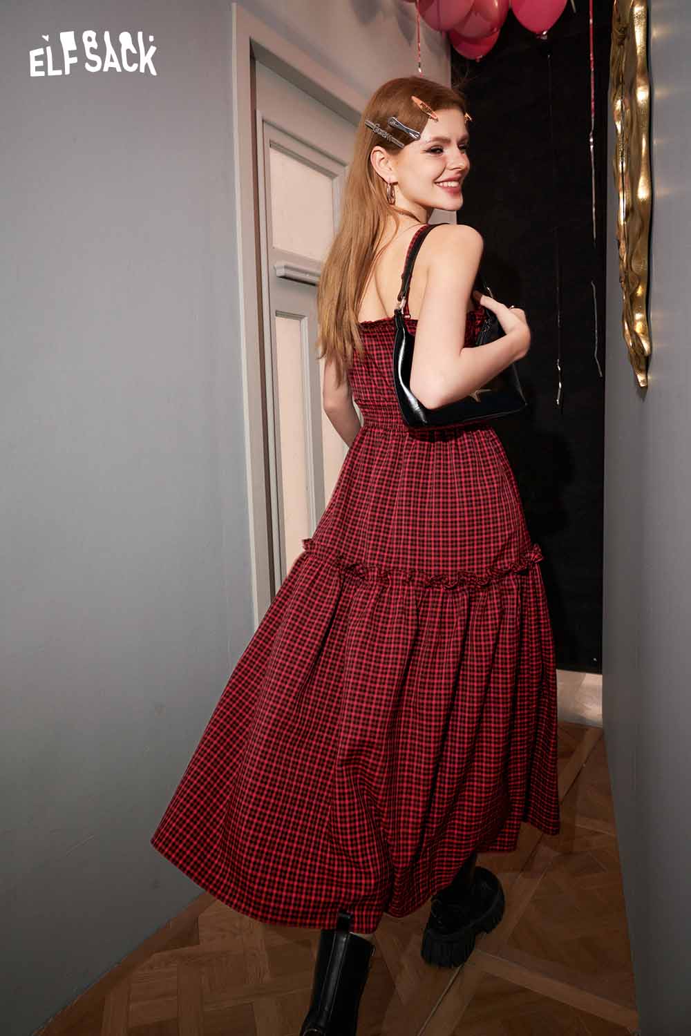 Plaid Slit Strapless Dress Slim Waist Bodycon Design