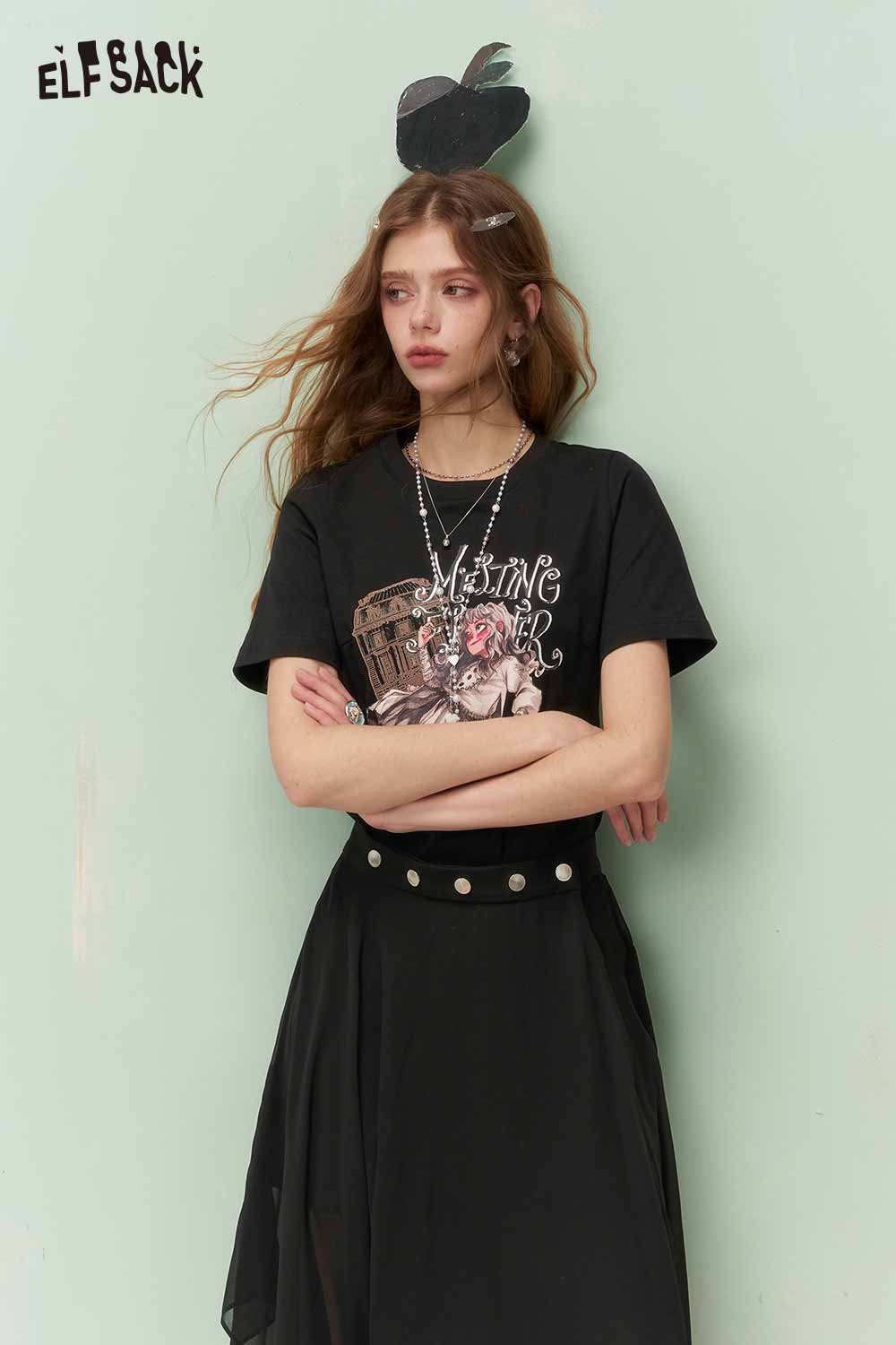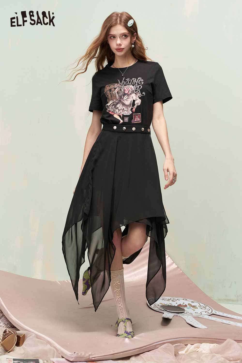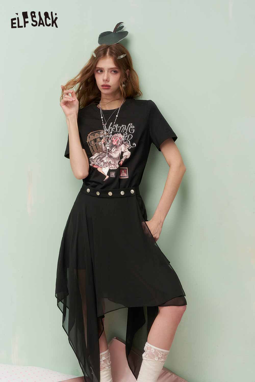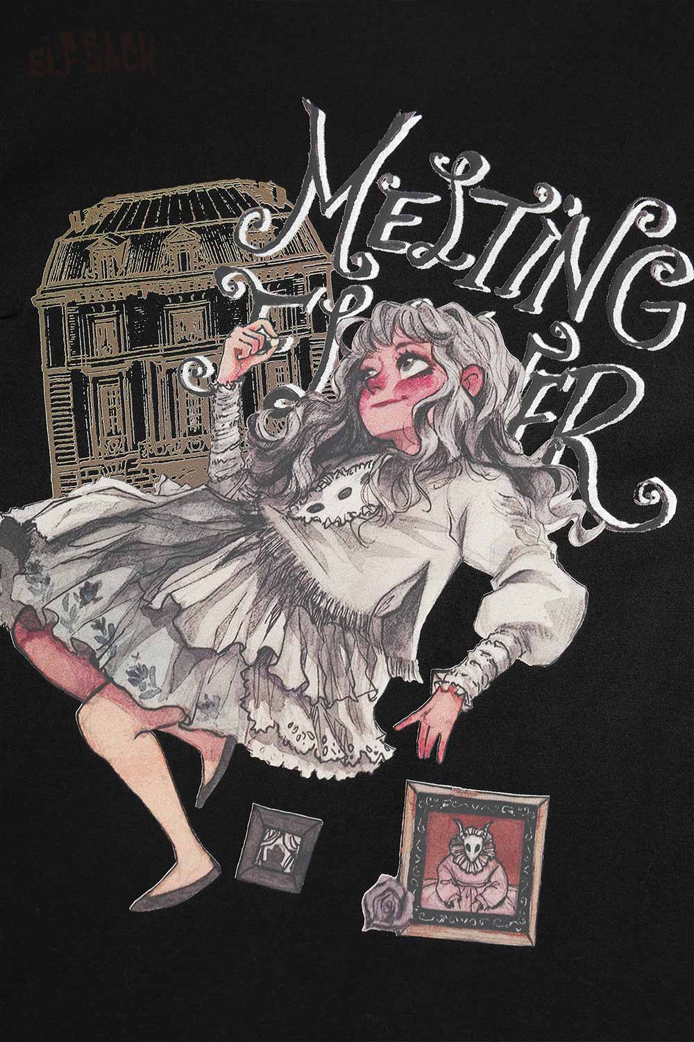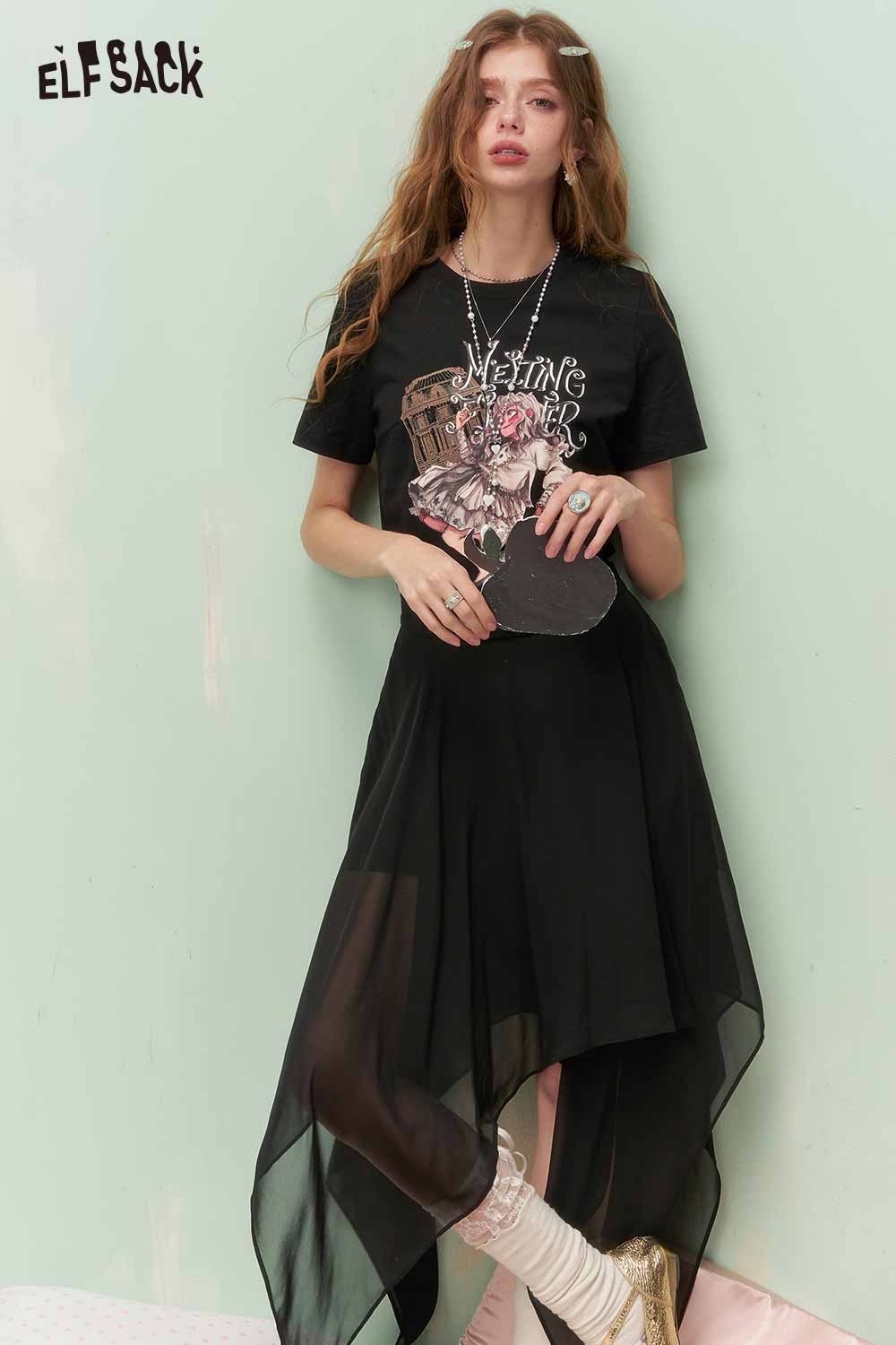 Vintage Sweet Cool Royal Portrait Print Asymmetrical Mesh Tshirt Dress