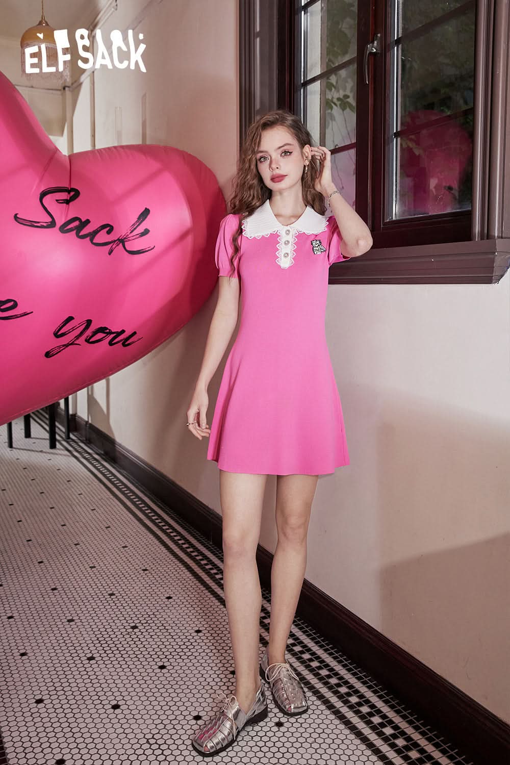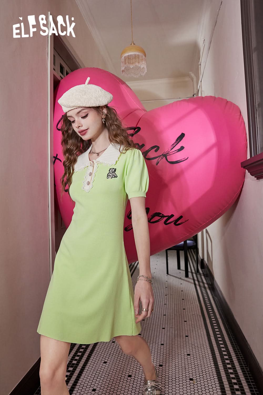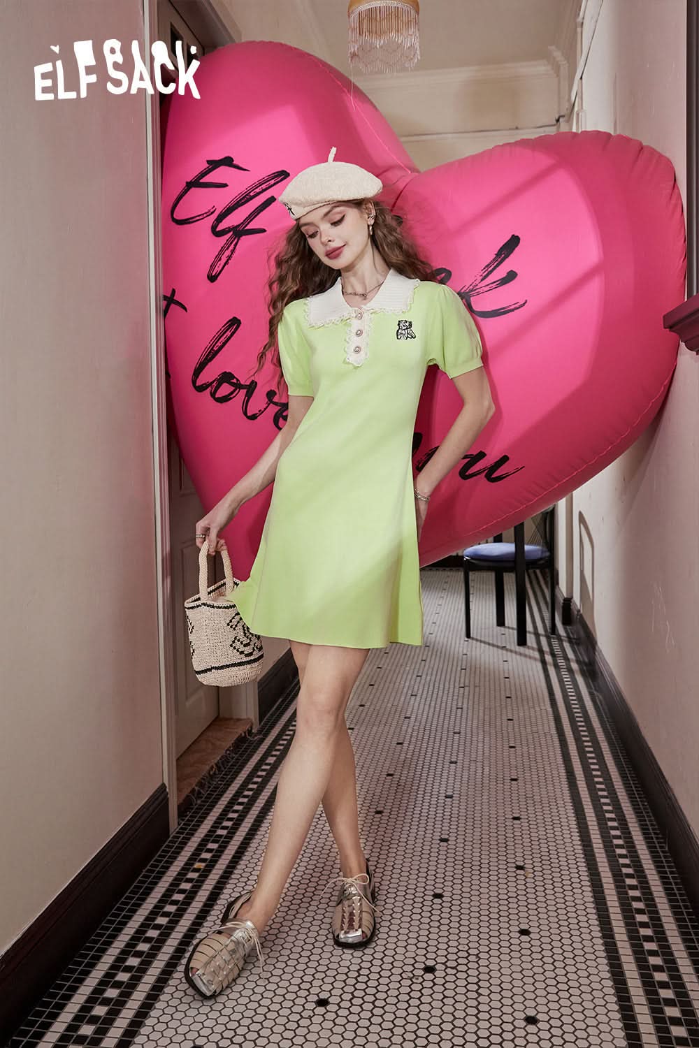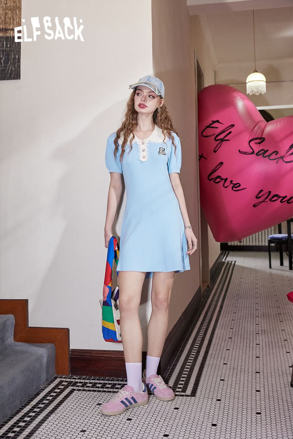 Polo collar waist angel pattern sports sweet preppy style skirt dress