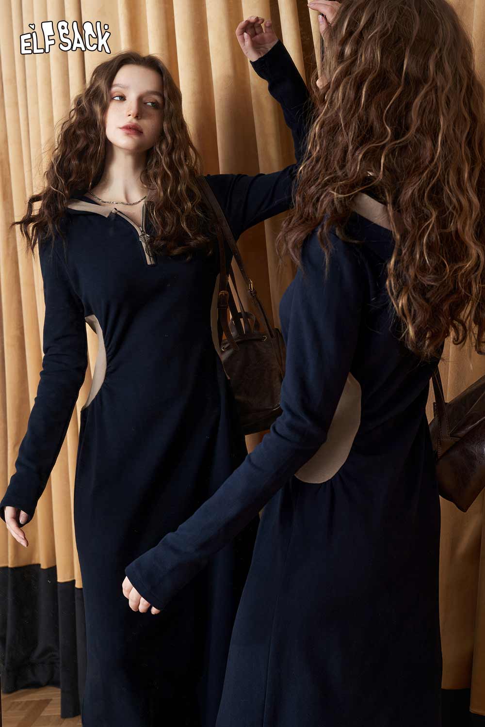 Light Versatile Waist Slimming Zip Lapel Long Dress