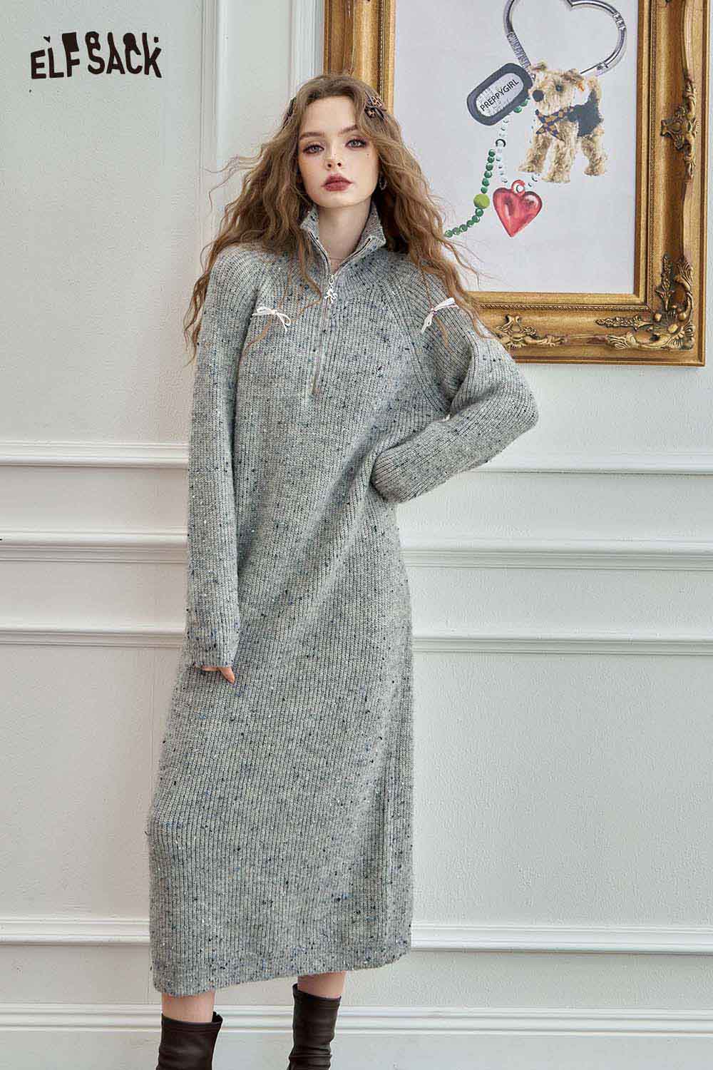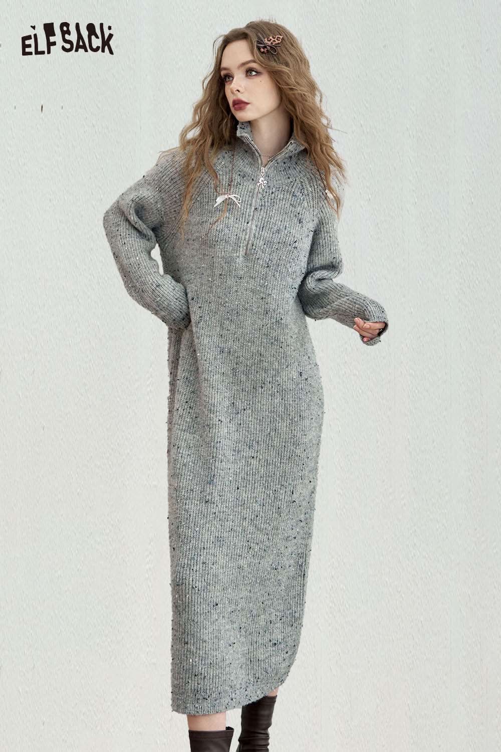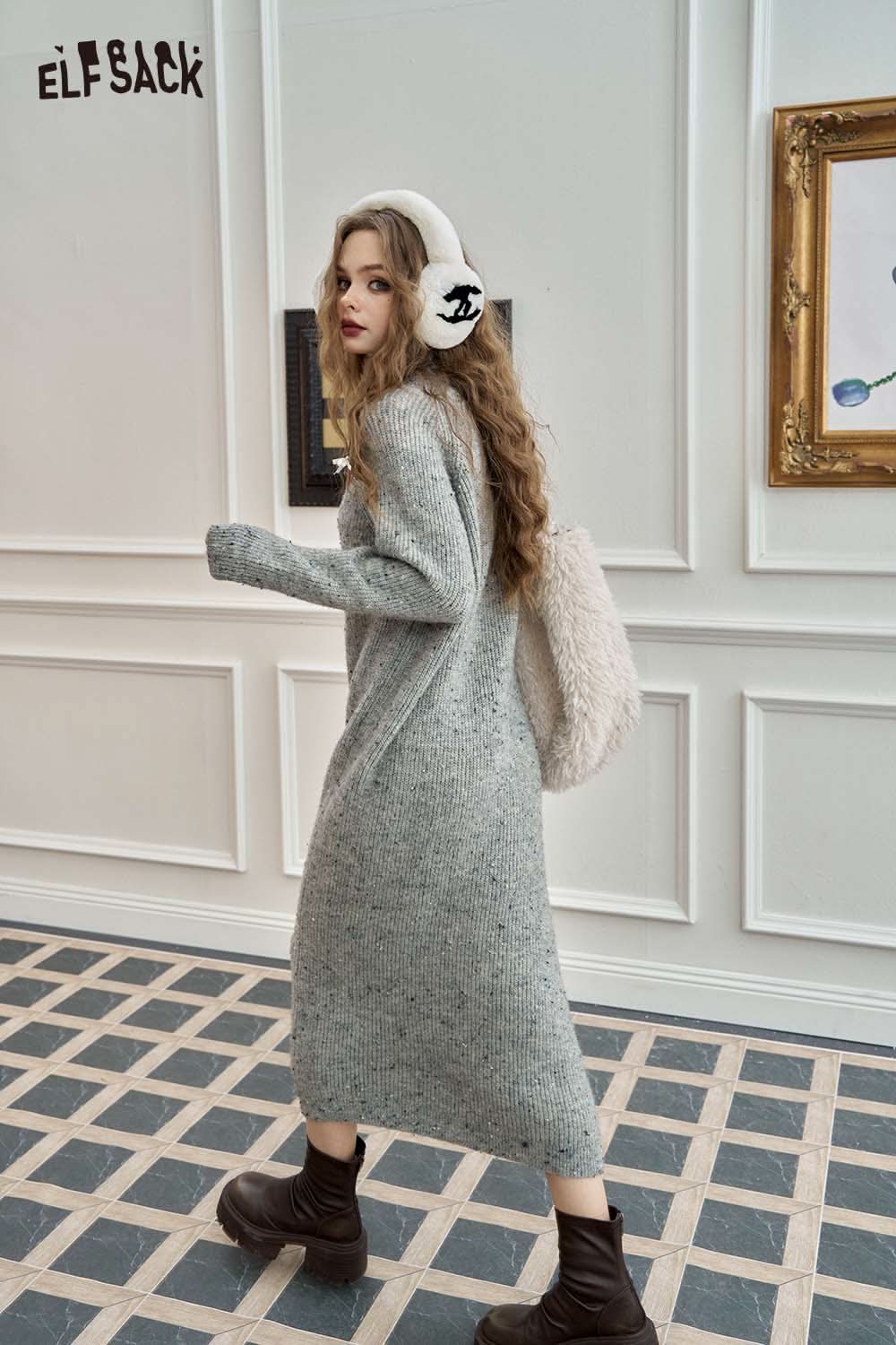 Loose Straight Skirt Shirt Collar Knit Midi Dress