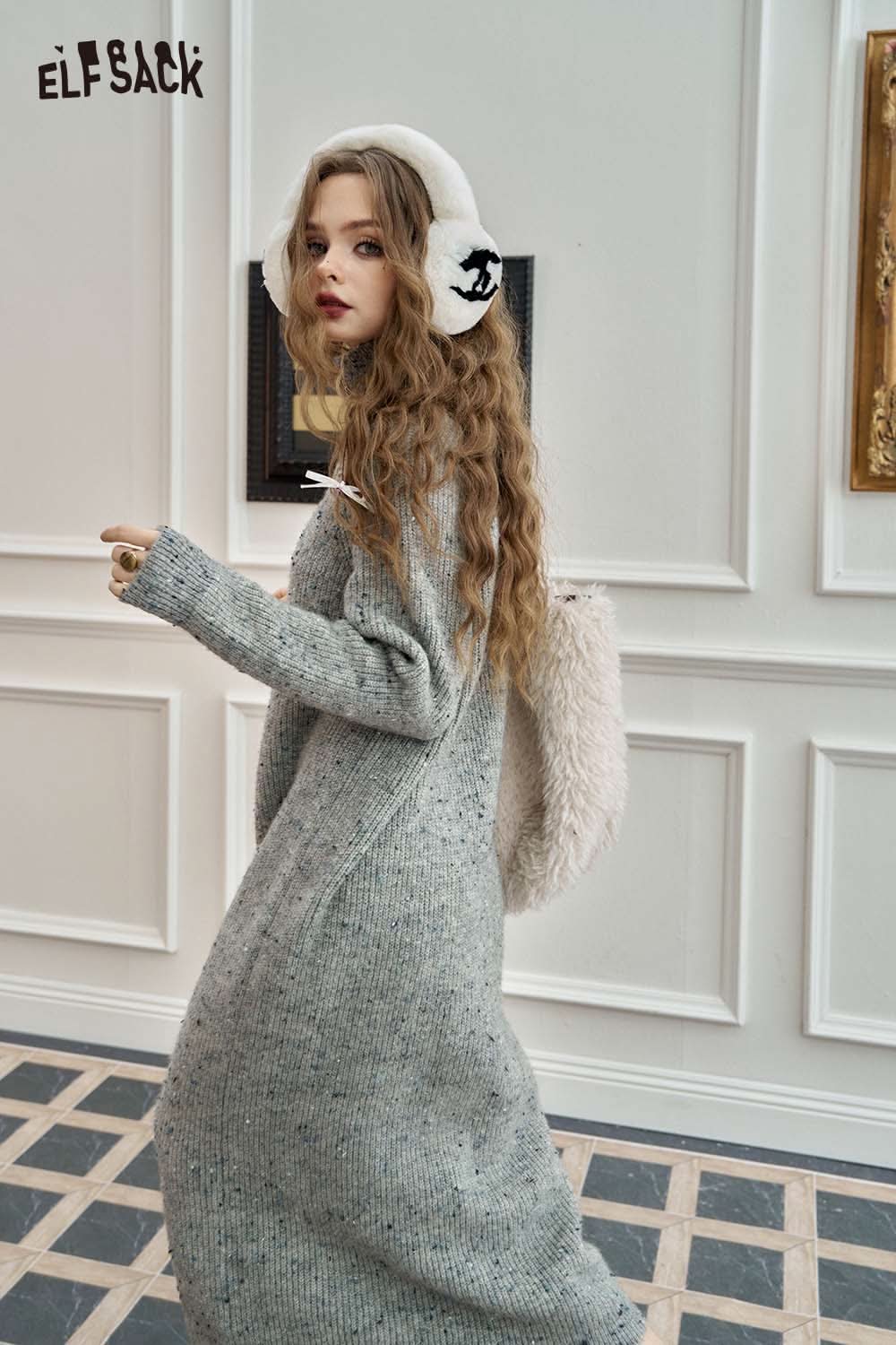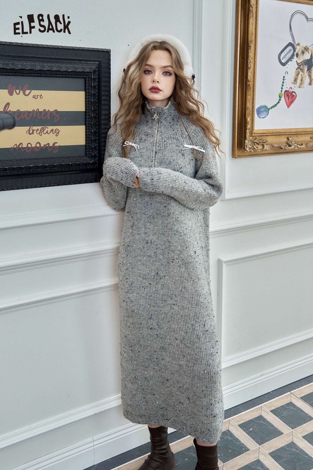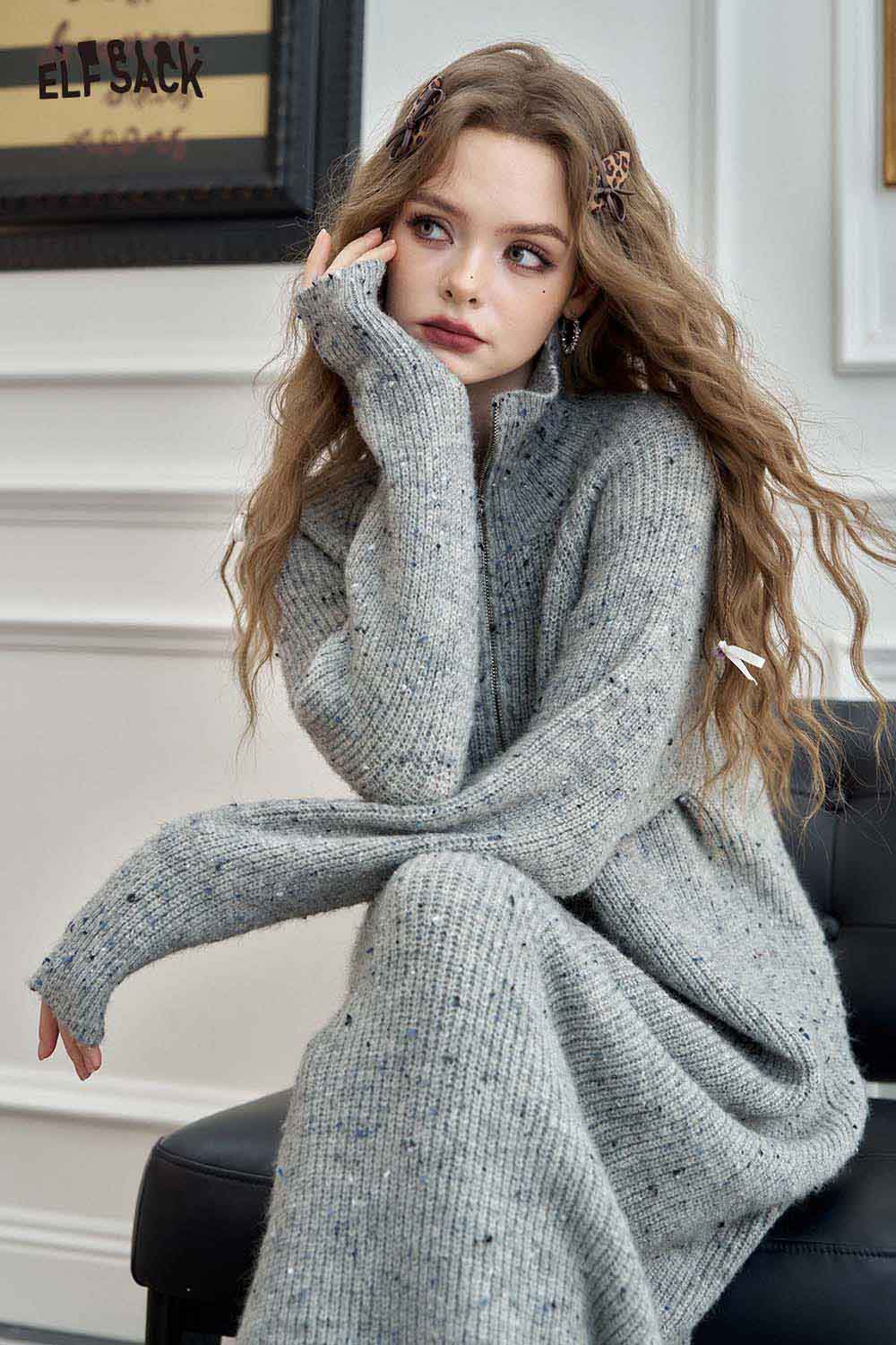 Loose Straight Skirt Shirt Collar Knit Midi Dress