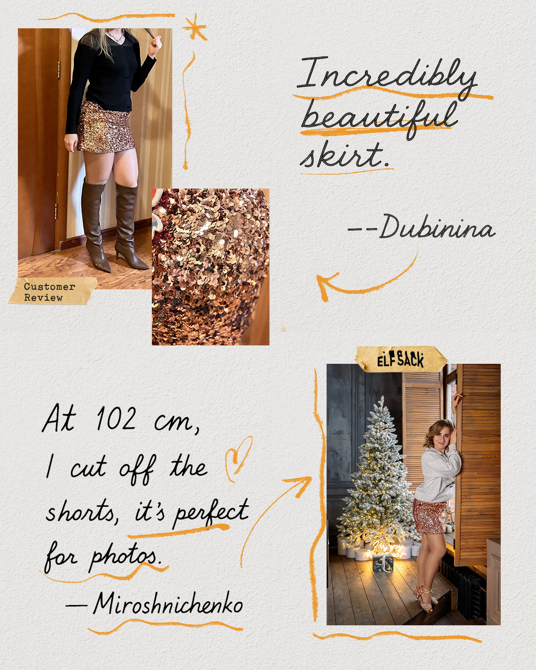ELFSACK Sequined pink brown heavy sequined personalized drawstring elastic waist high waist hip skirt