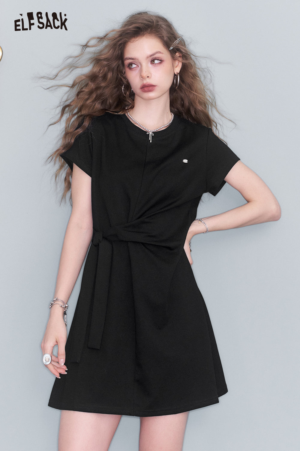 Elfsack Bat Sleeve Strapped Dress Mid Length T Shirt Dress