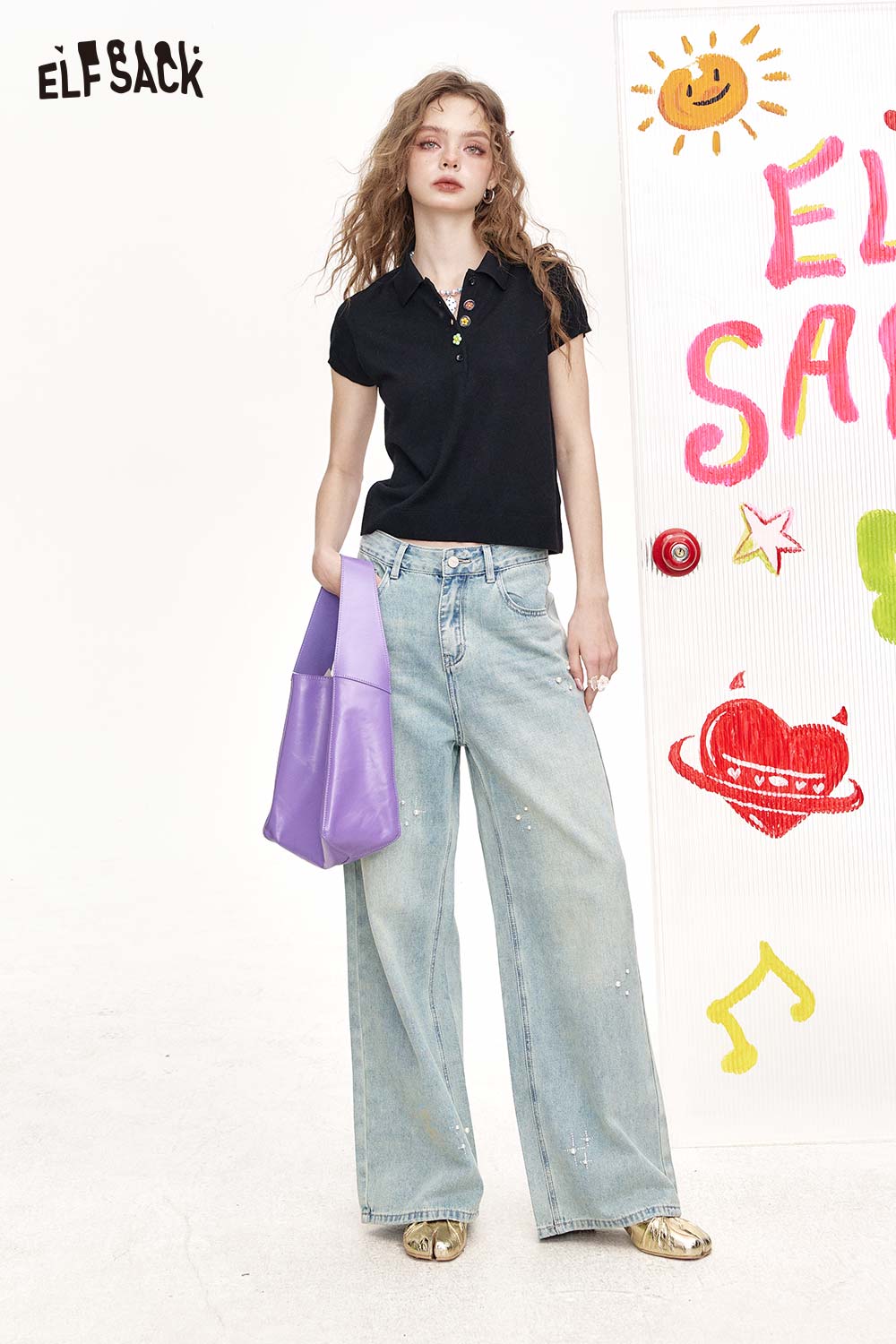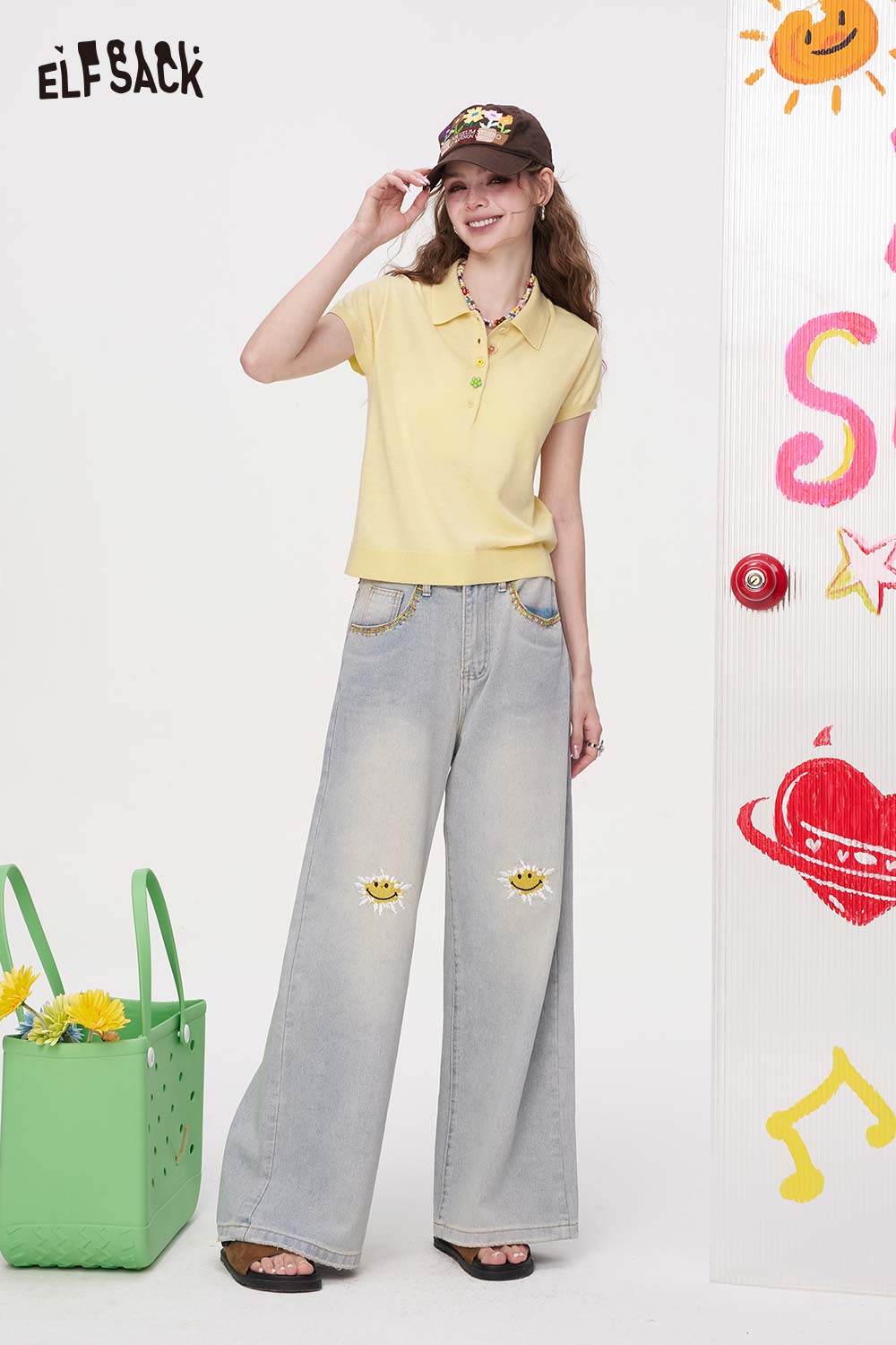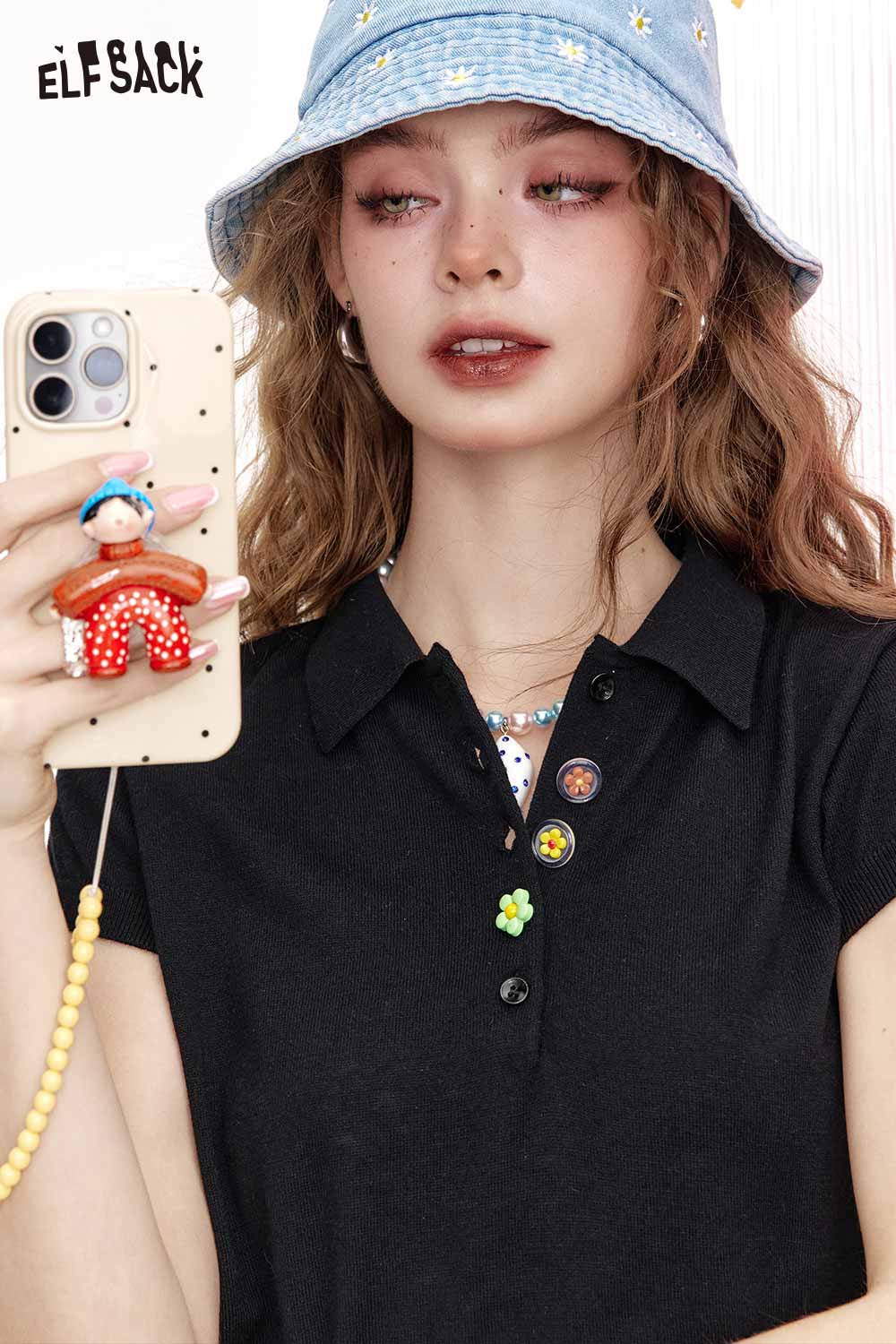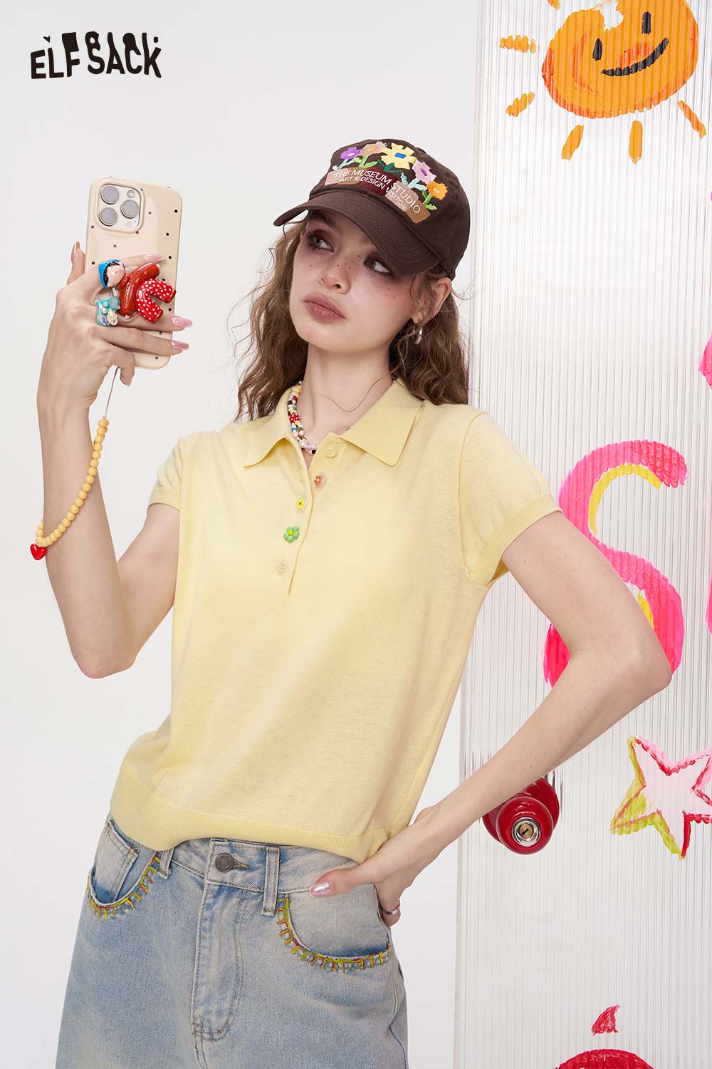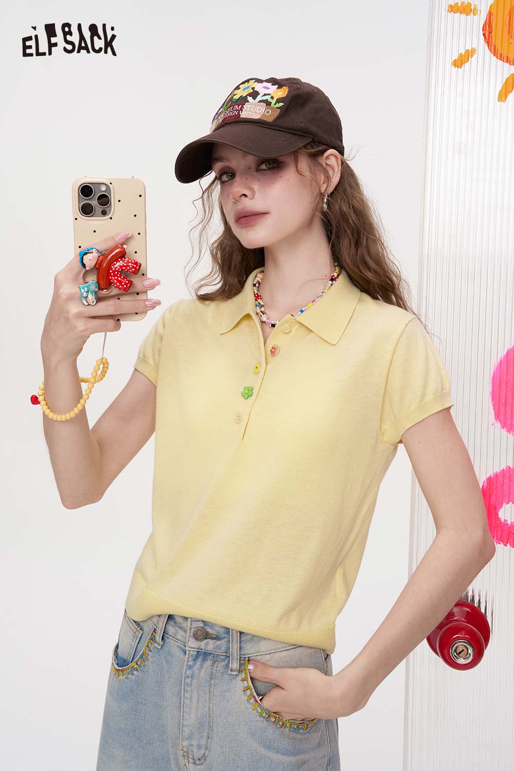 Casual Solid Polo Collar Color Button Short Sleeve Knitwear
