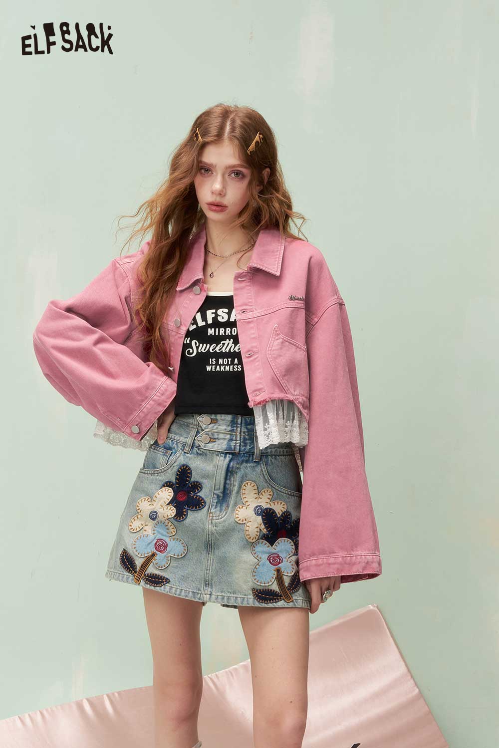 Contrast Trim Cami Top with Lace & Embroidery Patch