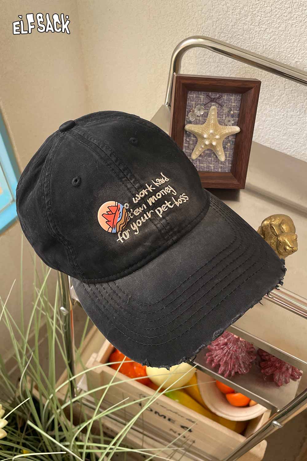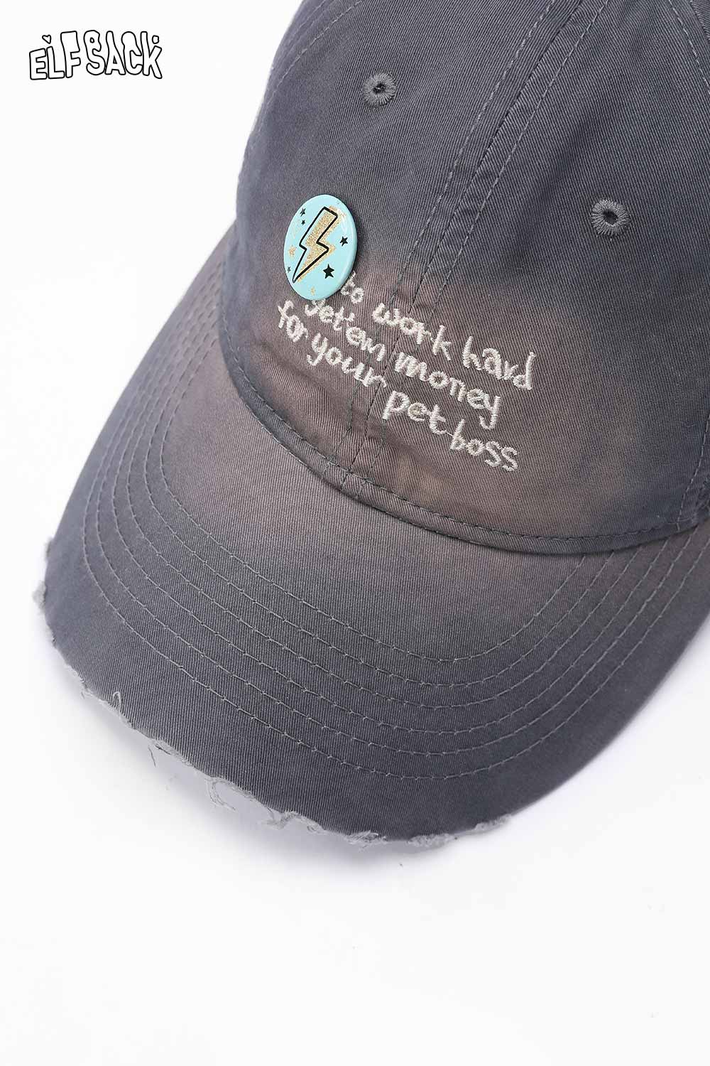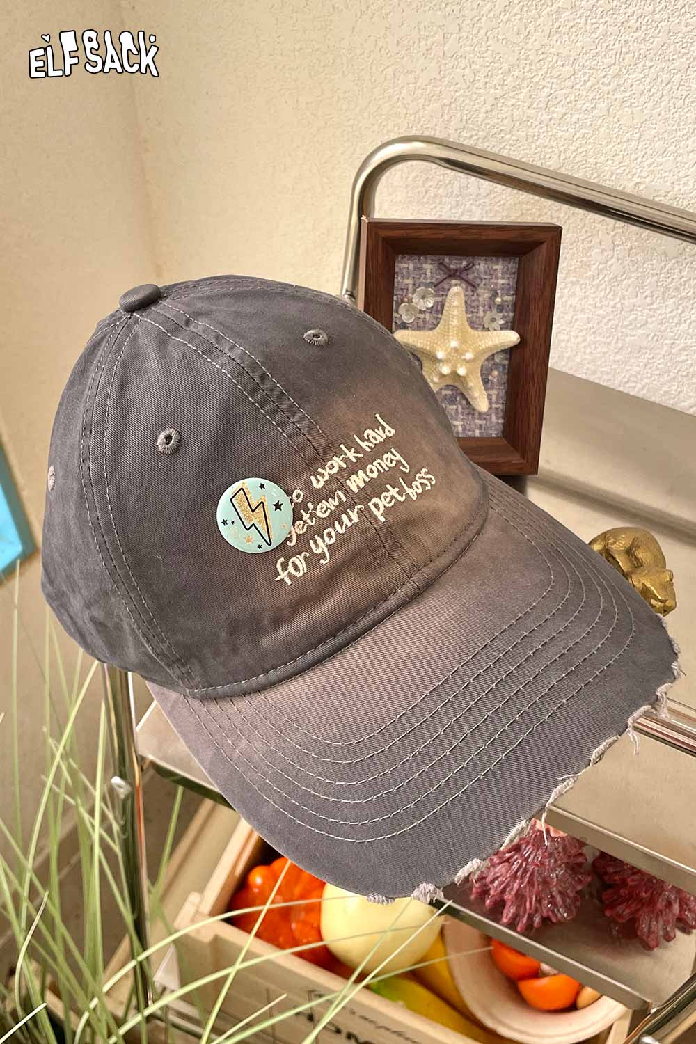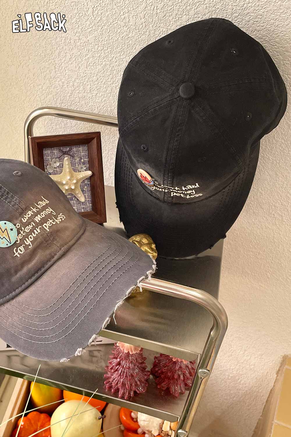 Cotton Distressed Denim Frayed Hem Letter Embroidery Vintage Baseball Cap