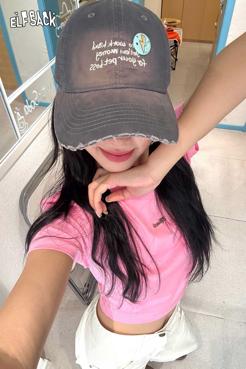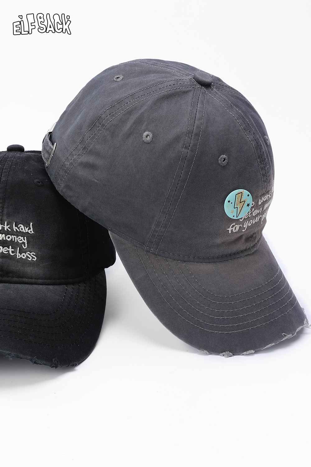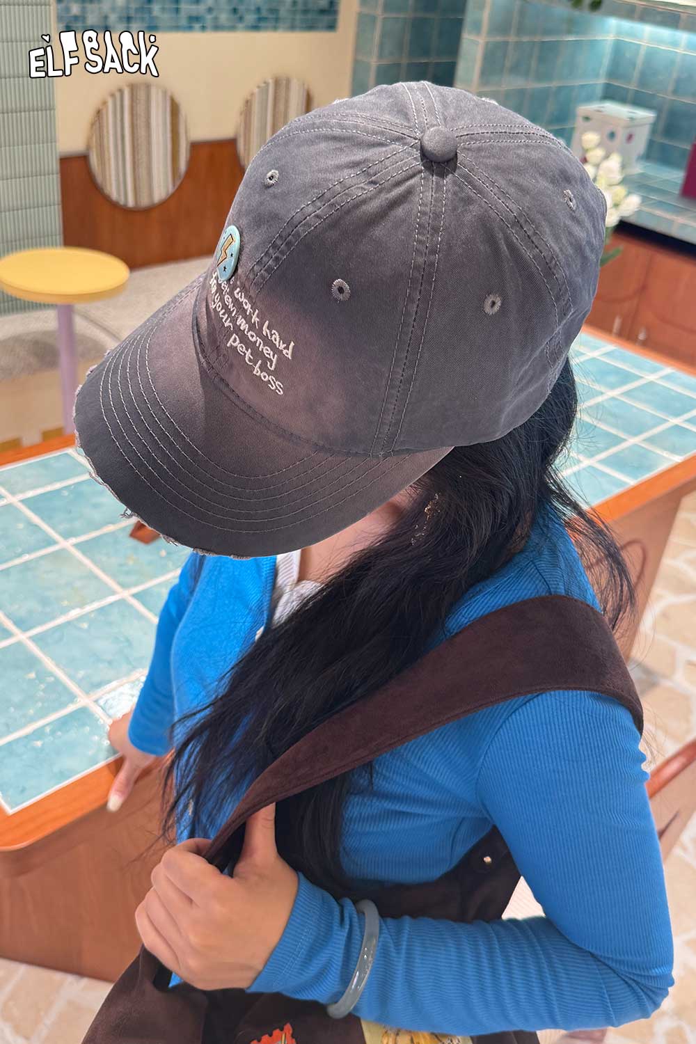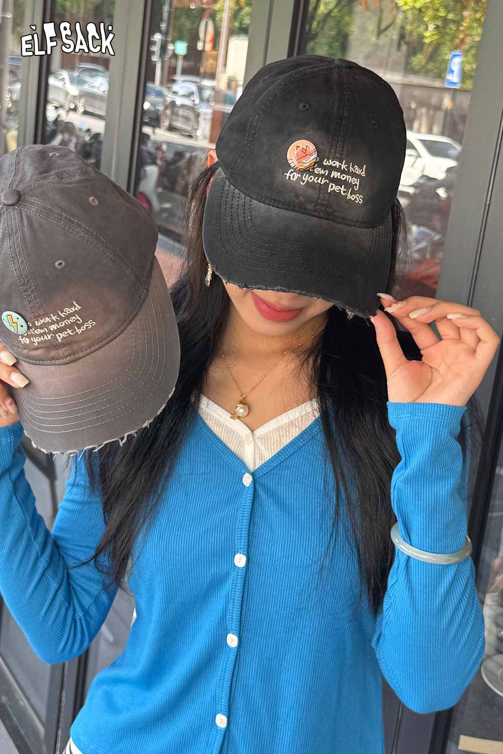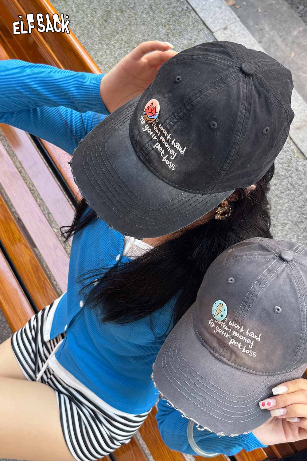 Cotton Distressed Denim Frayed Hem Letter Embroidery Vintage Baseball Cap
