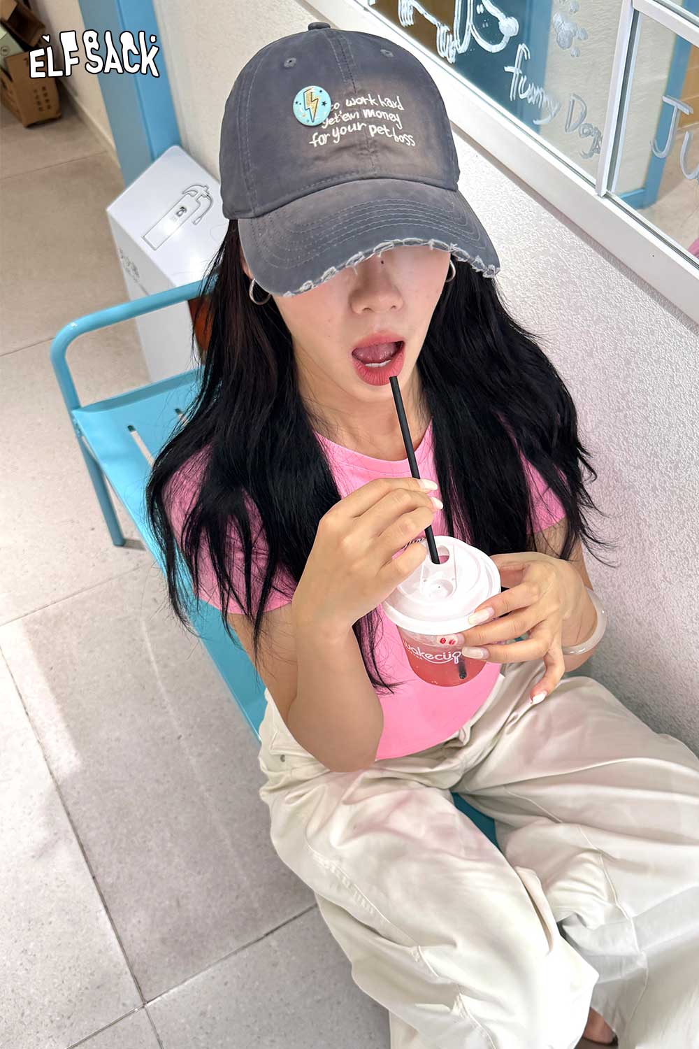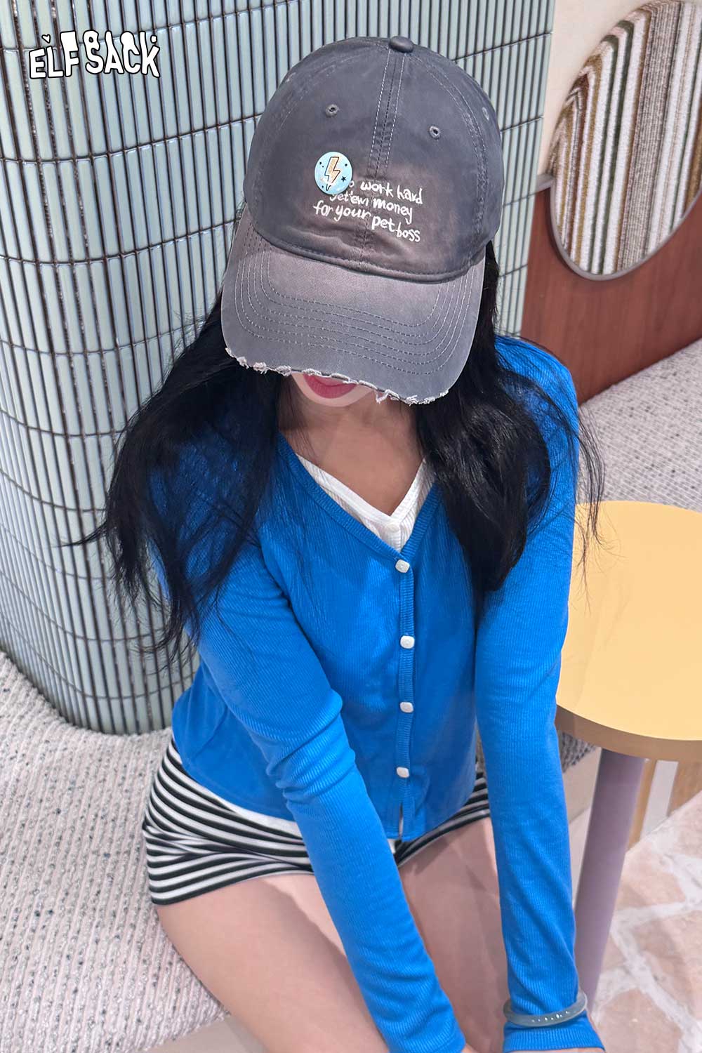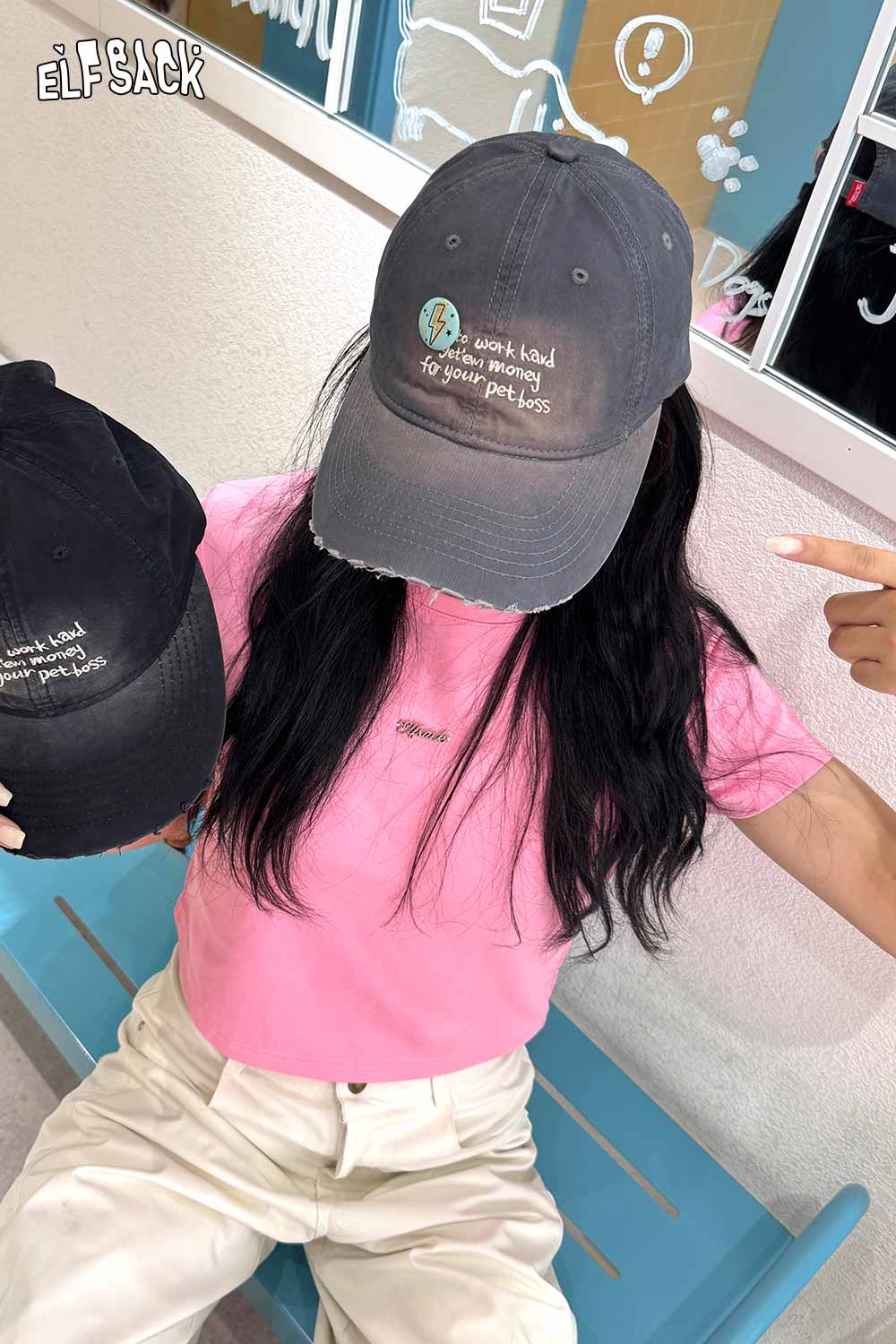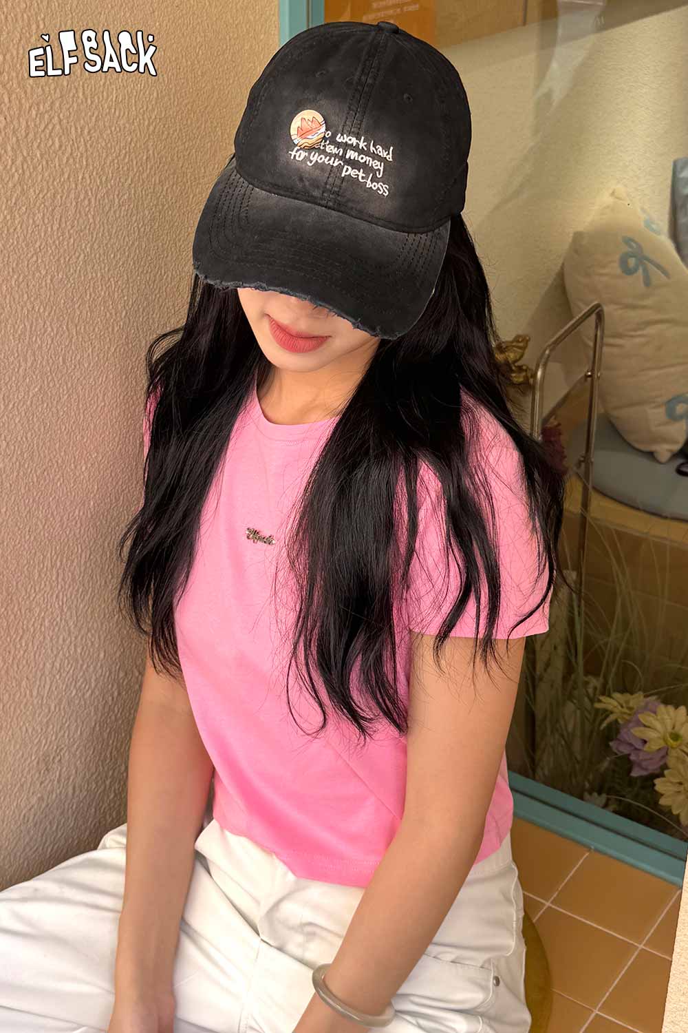 Cotton Distressed Denim Frayed Hem Letter Embroidery Vintage Baseball Cap