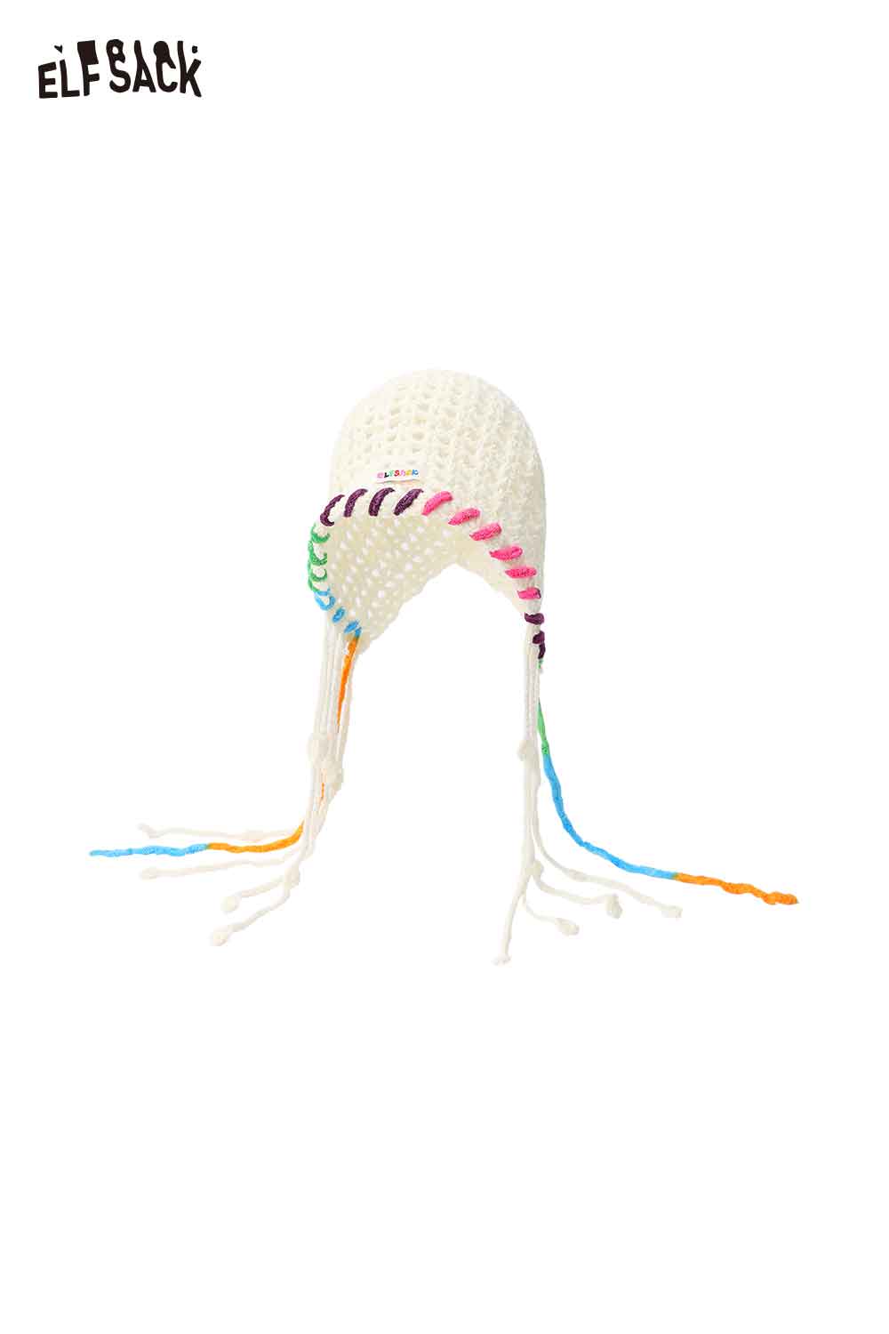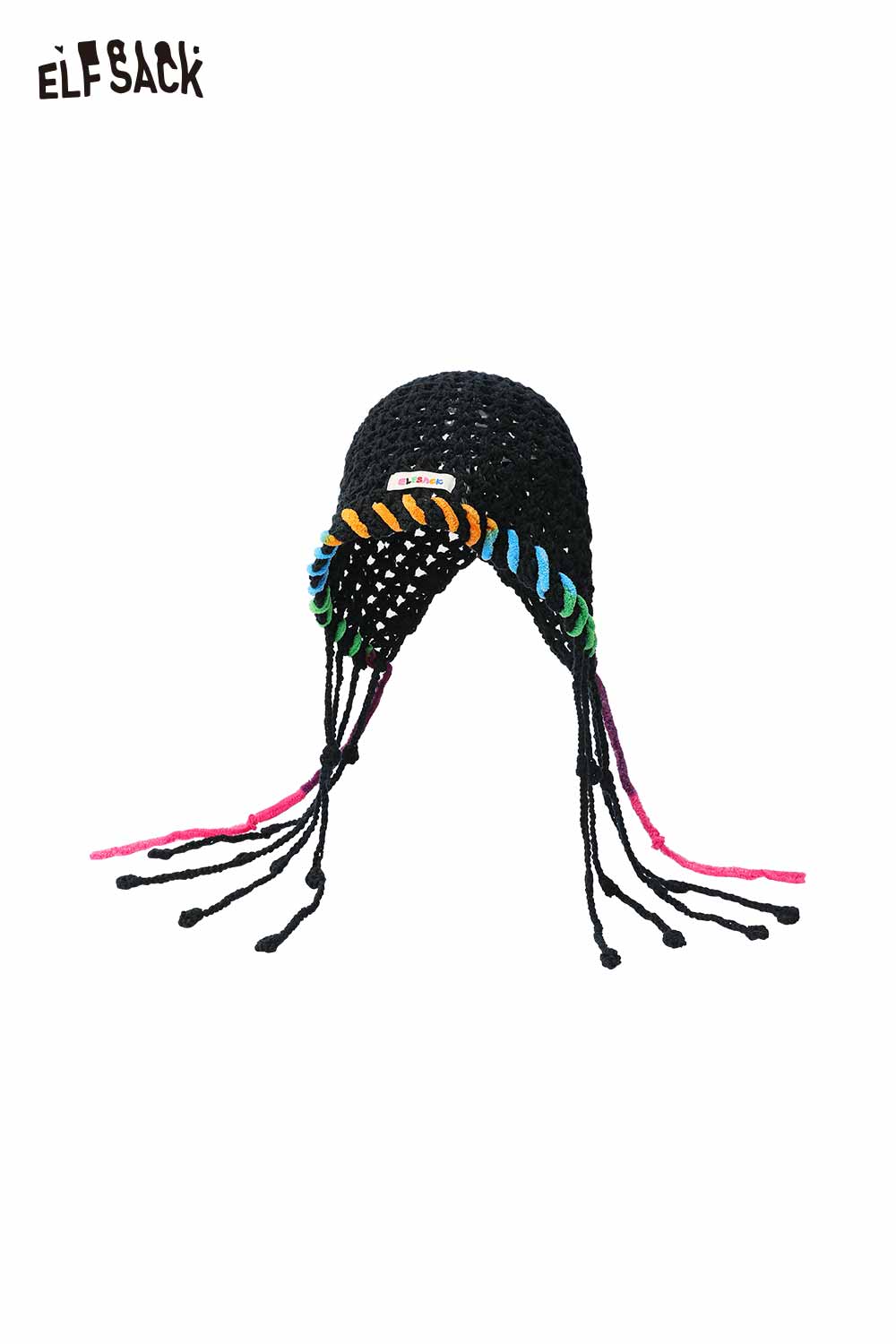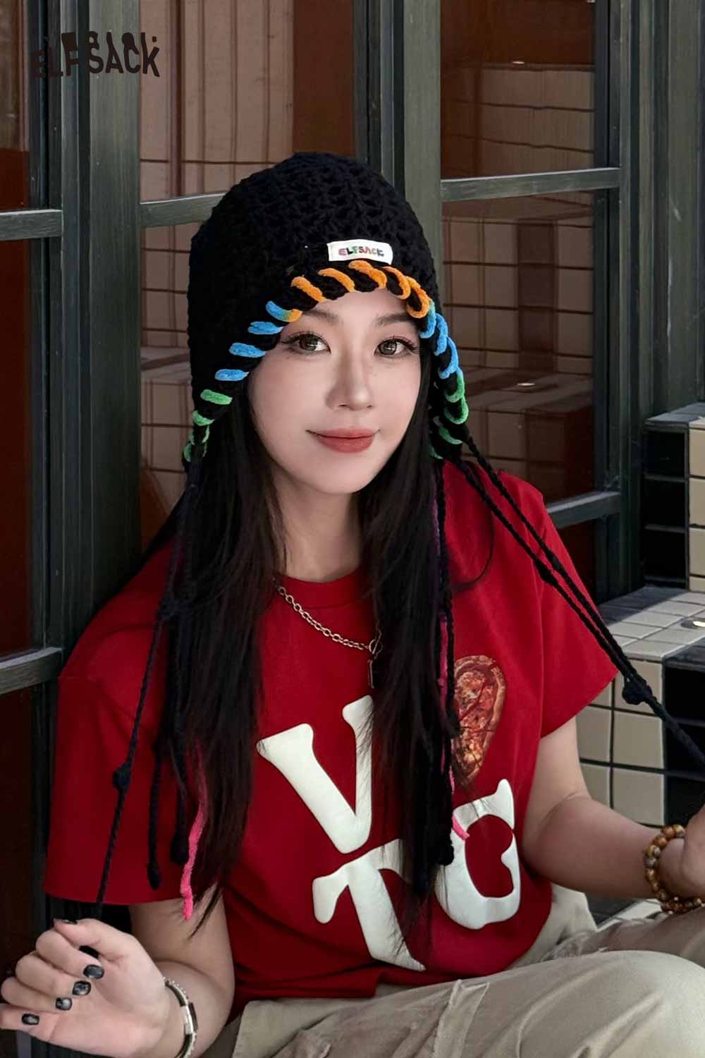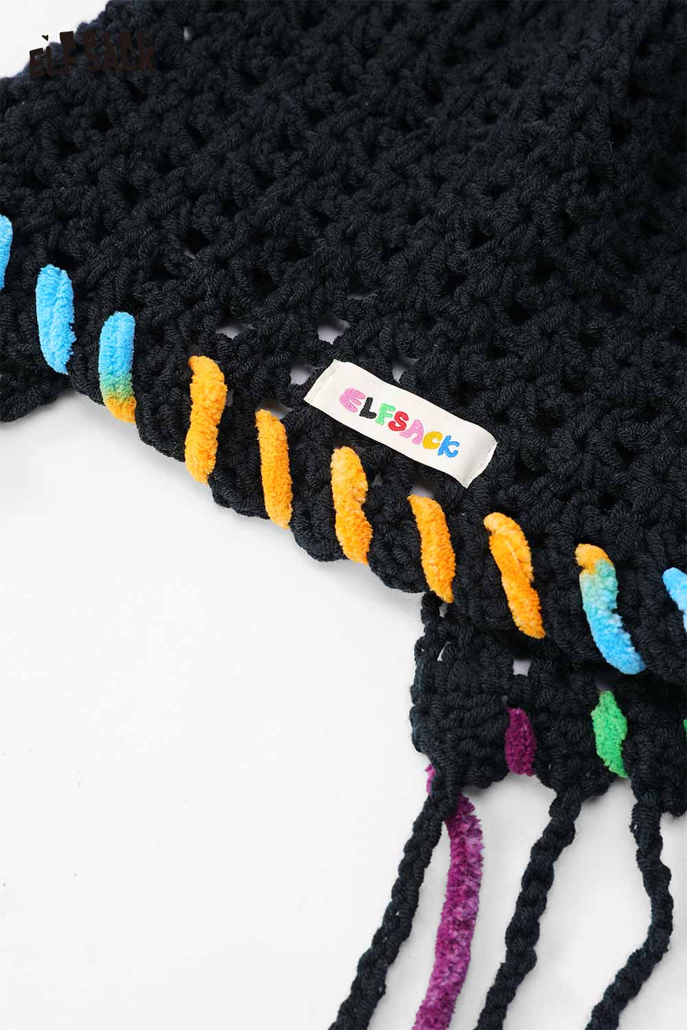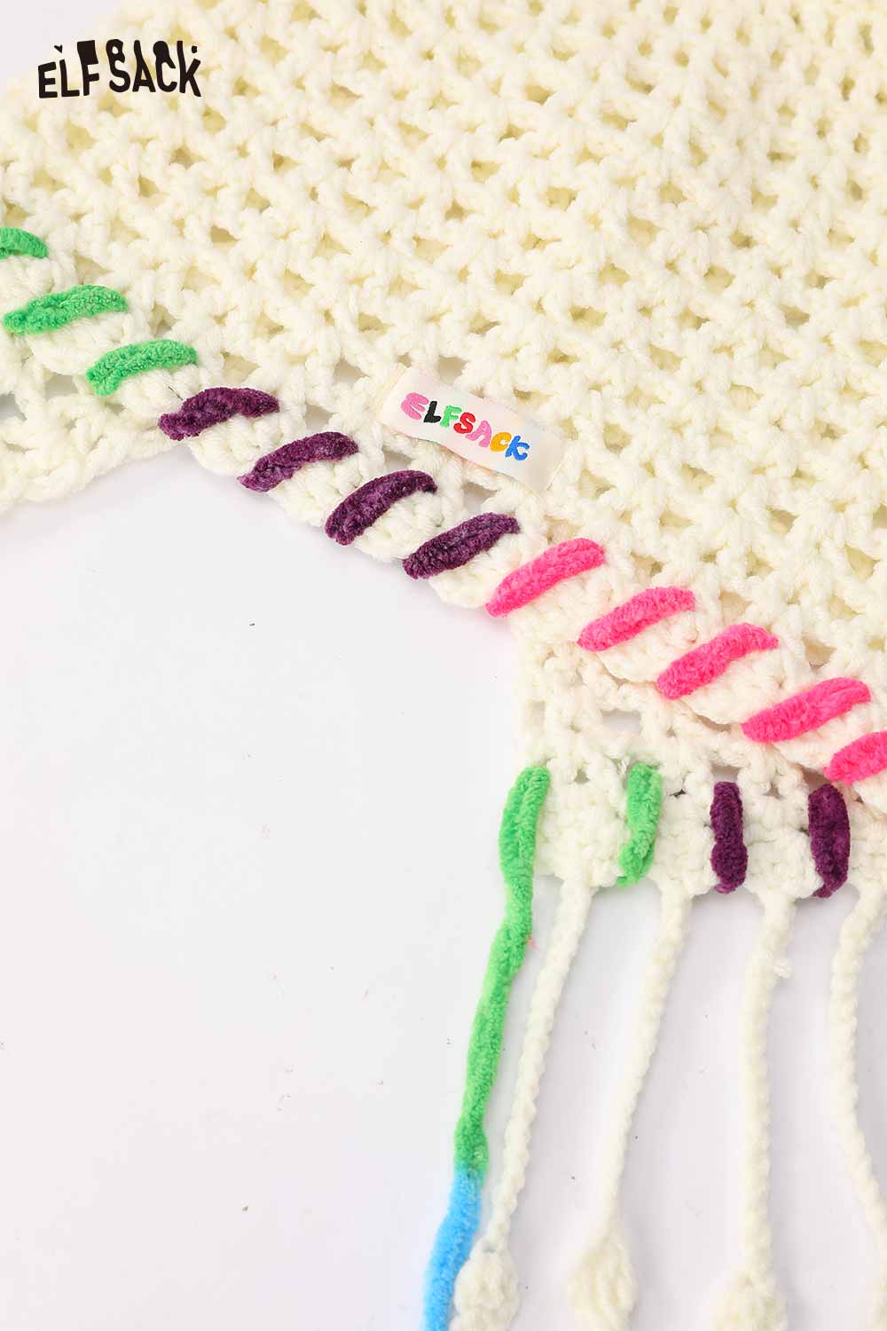 Cotton Knit Braided Tassel Color Block Cute Openwork Crochet Beanie