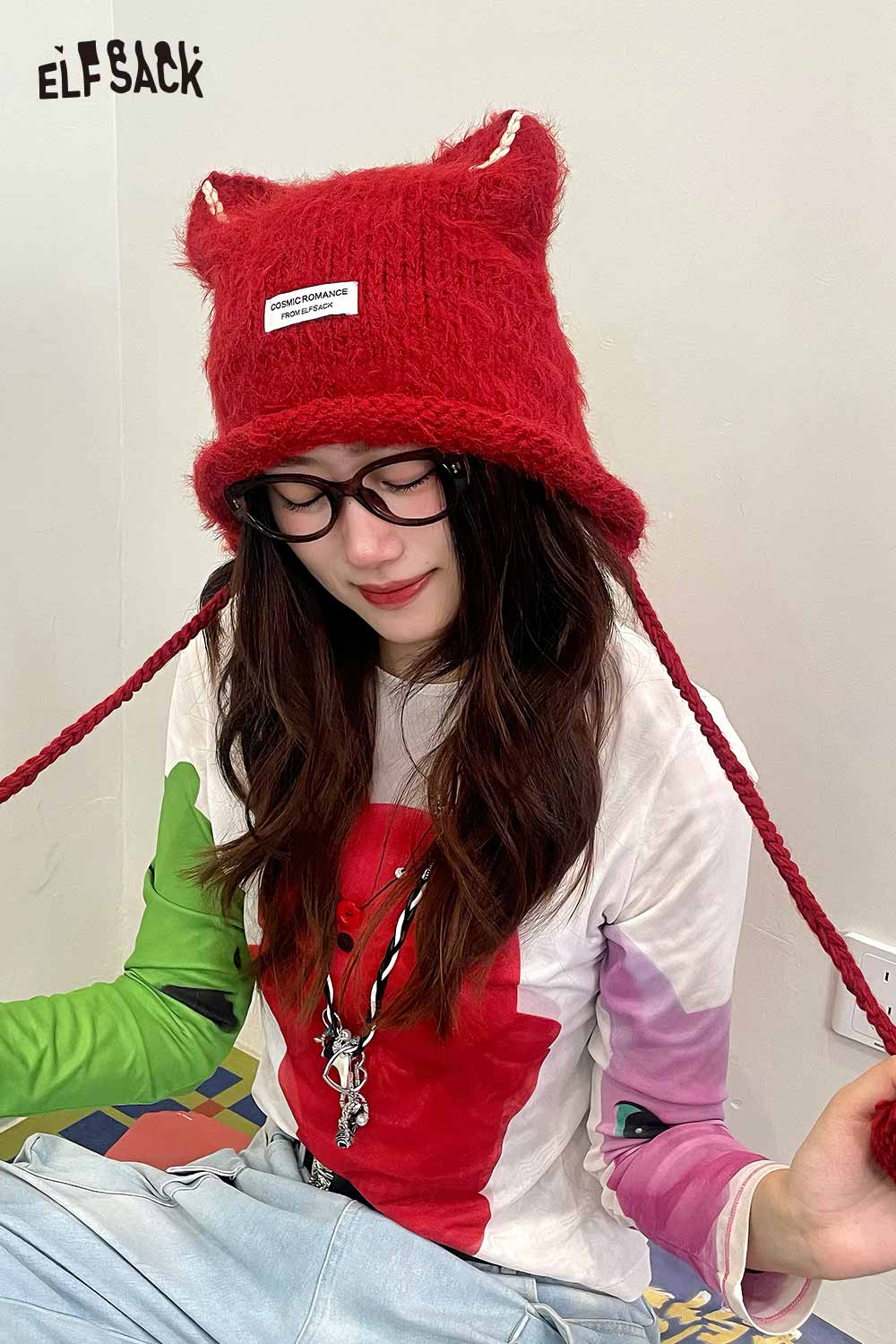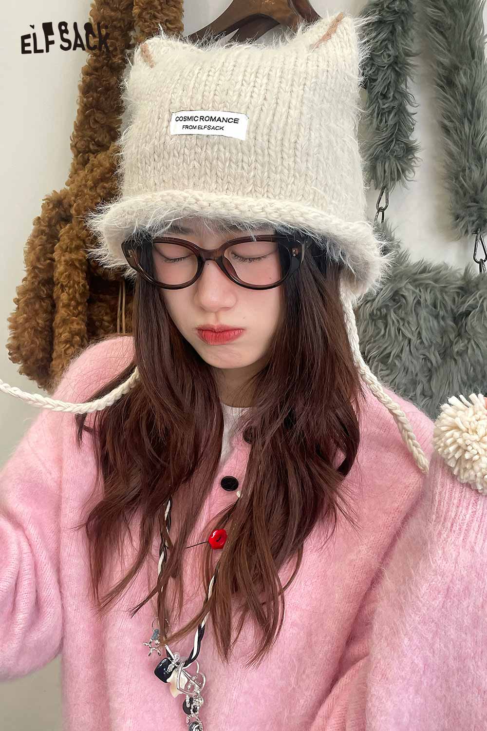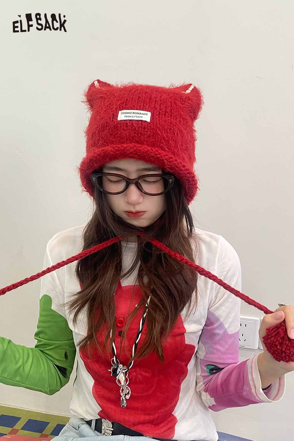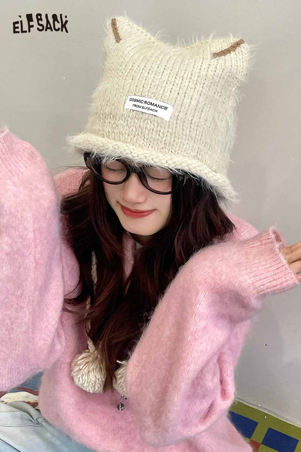 Fluffy Elf Ear Face Slimming Knit Beanie