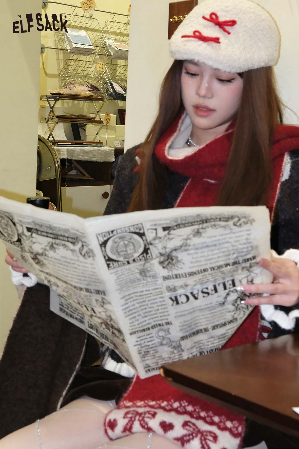Vintage Fair Isle Bow Reversible Warm Scarf
