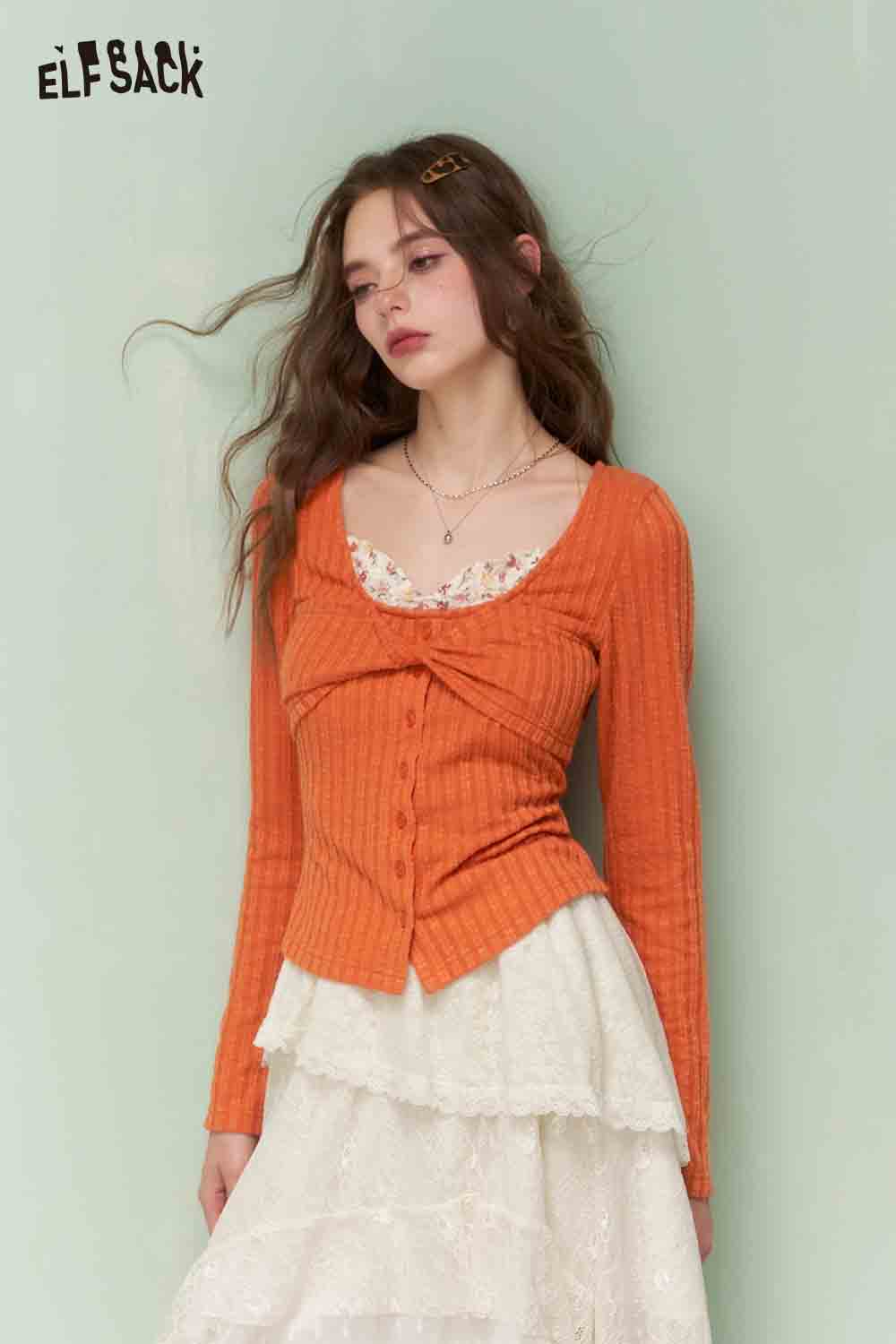 Light Fake Two Piece Graphic Embroidery Stripe Long Sleeve Tshirt