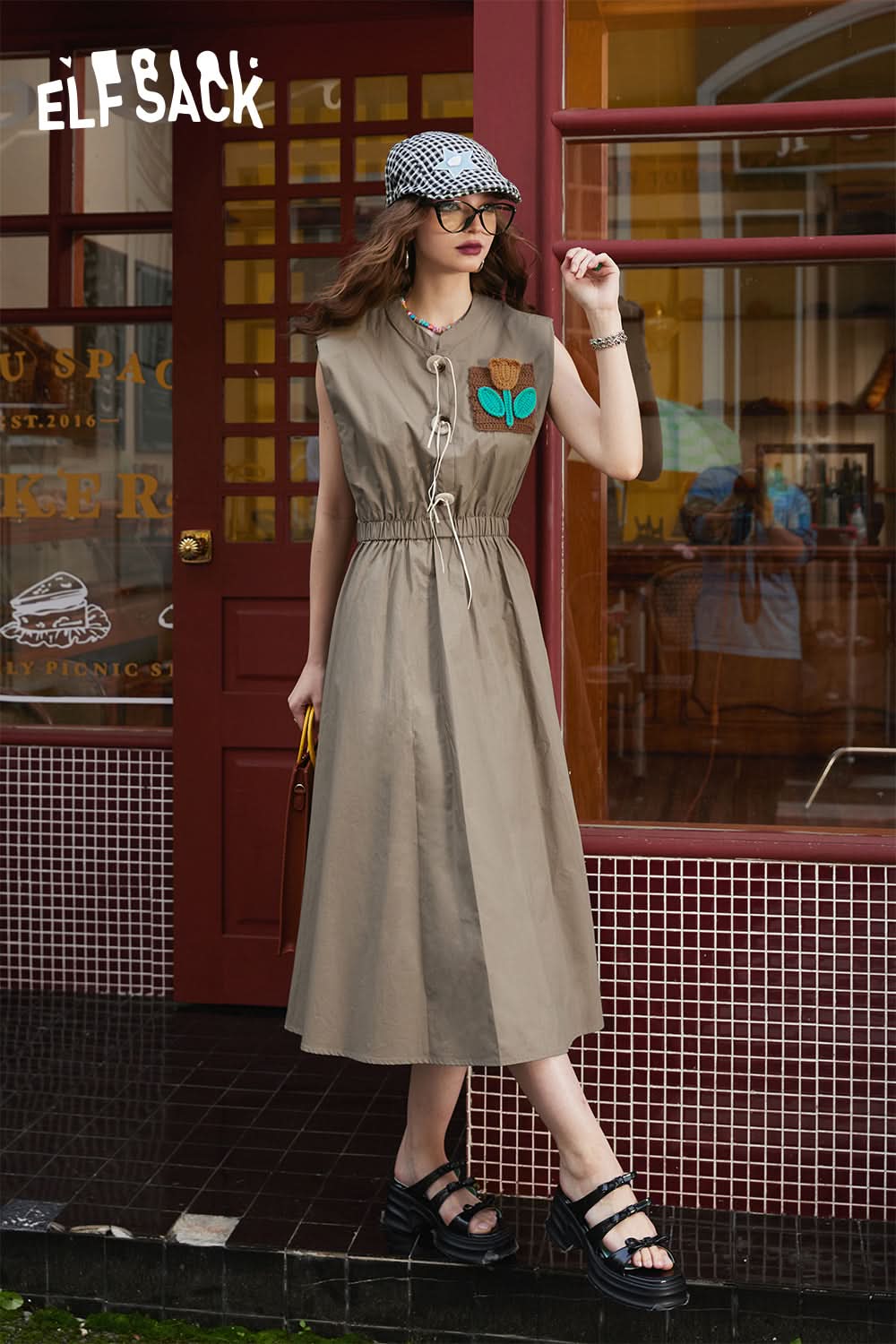 Workwear casual sleeveless round neck vest dress with a loose waist