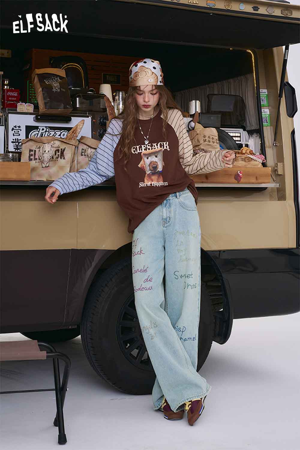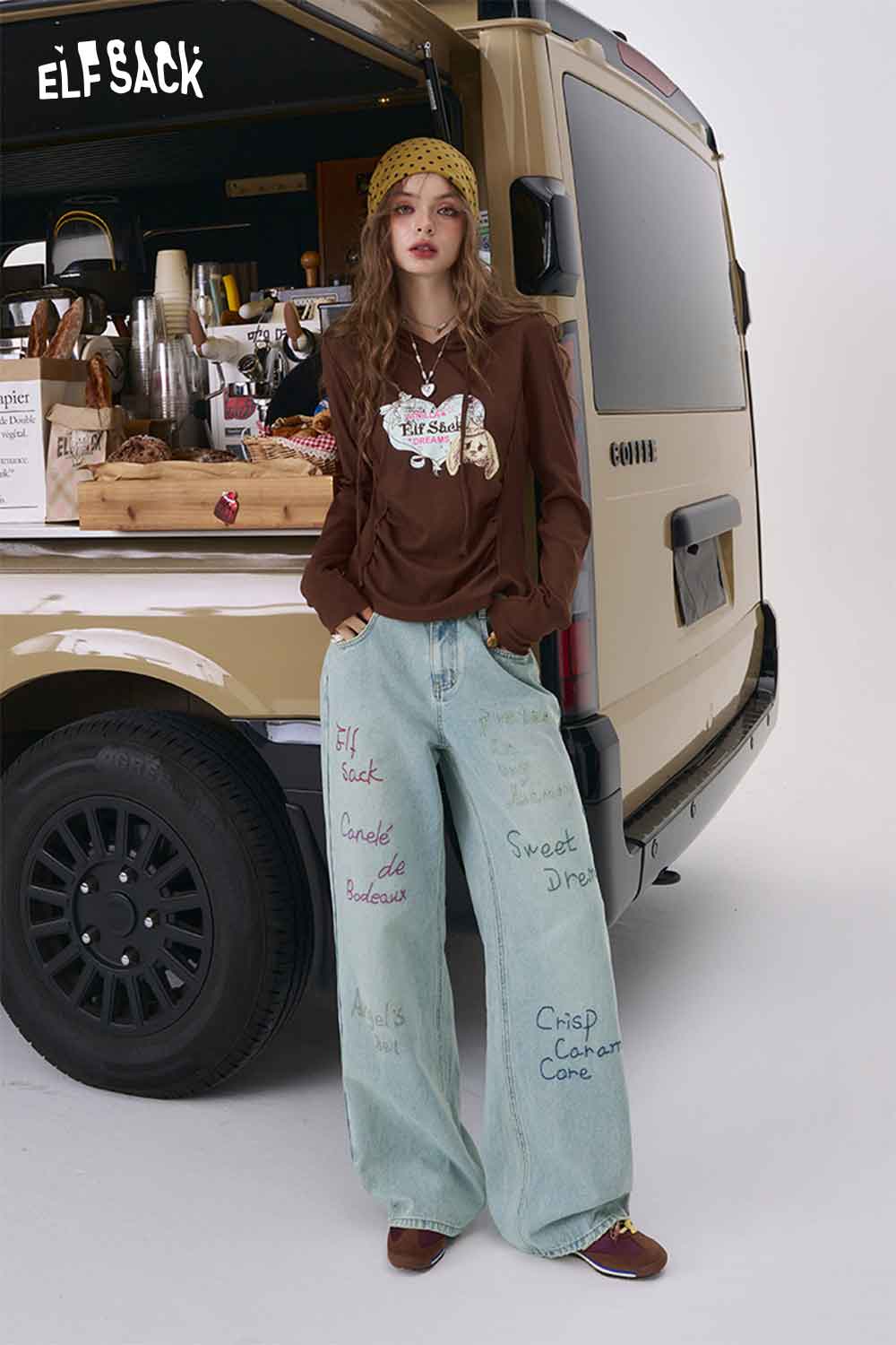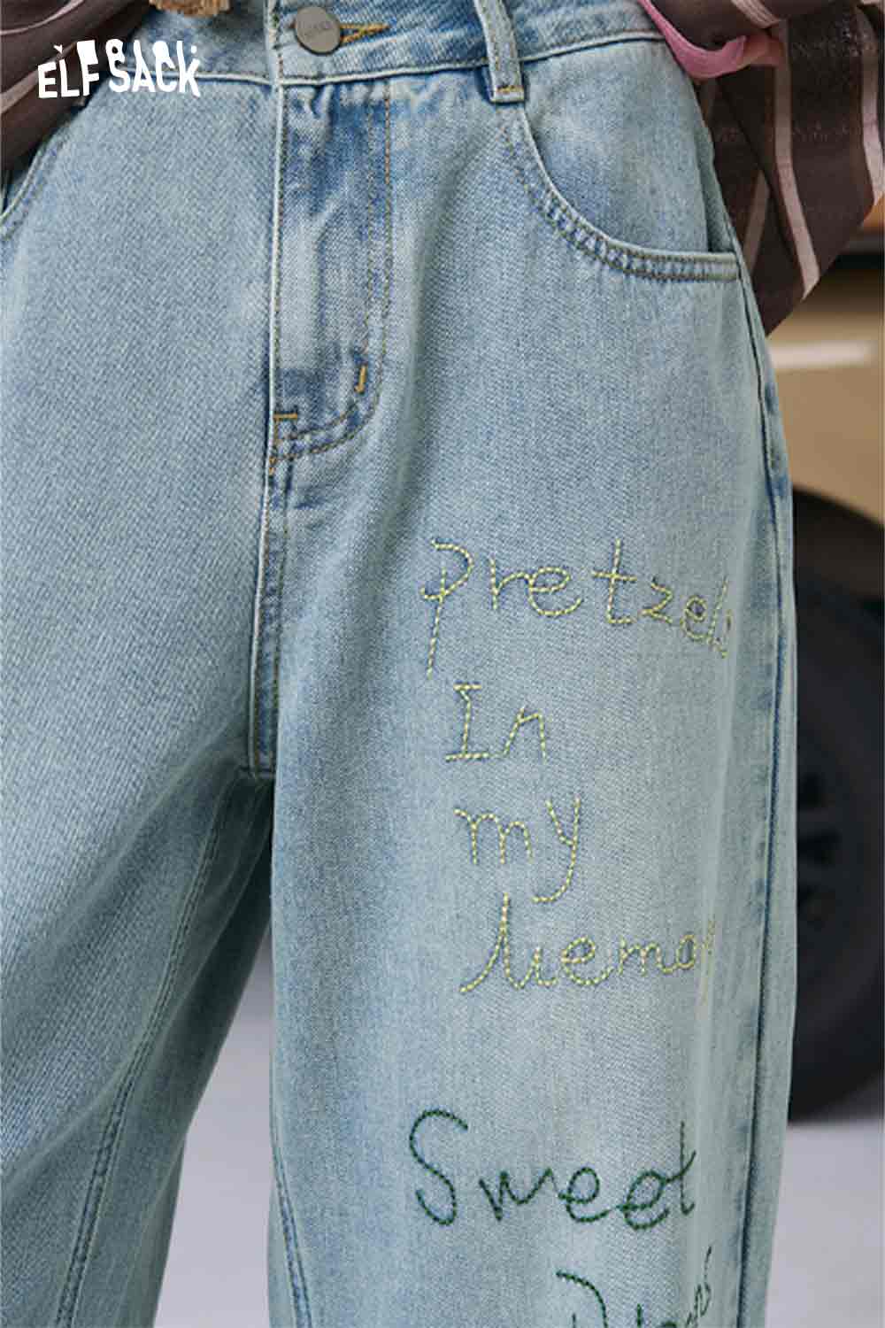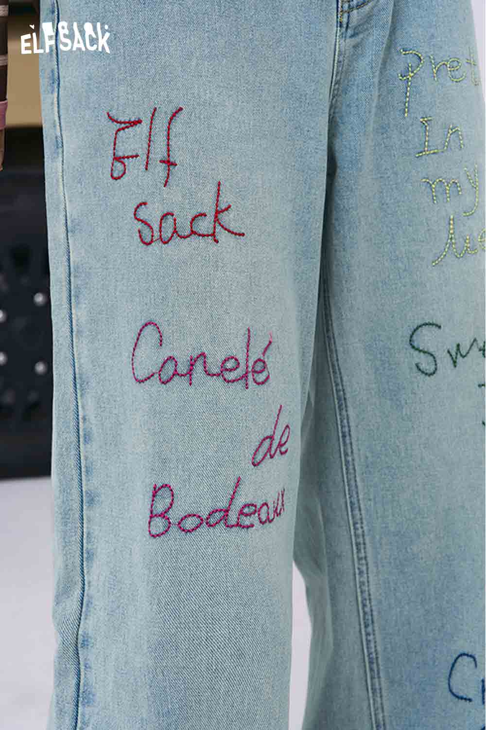Letter Embroidery Loose-Fit Straight-Leg Jeans