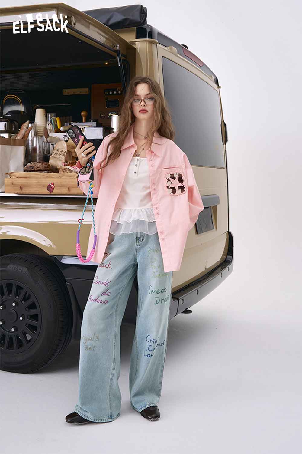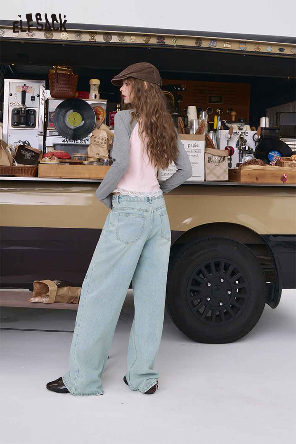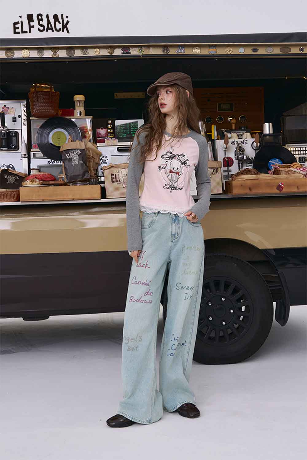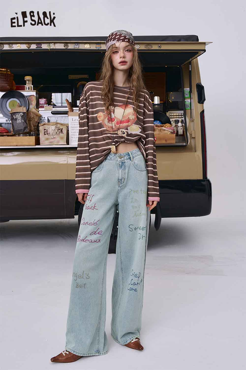 Letter Embroidery Loose-Fit Straight-Leg Jeans