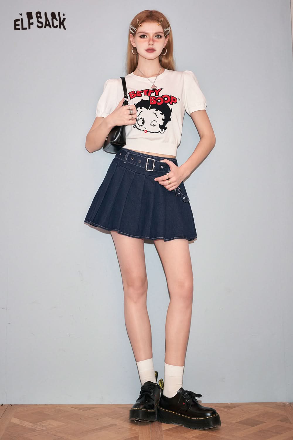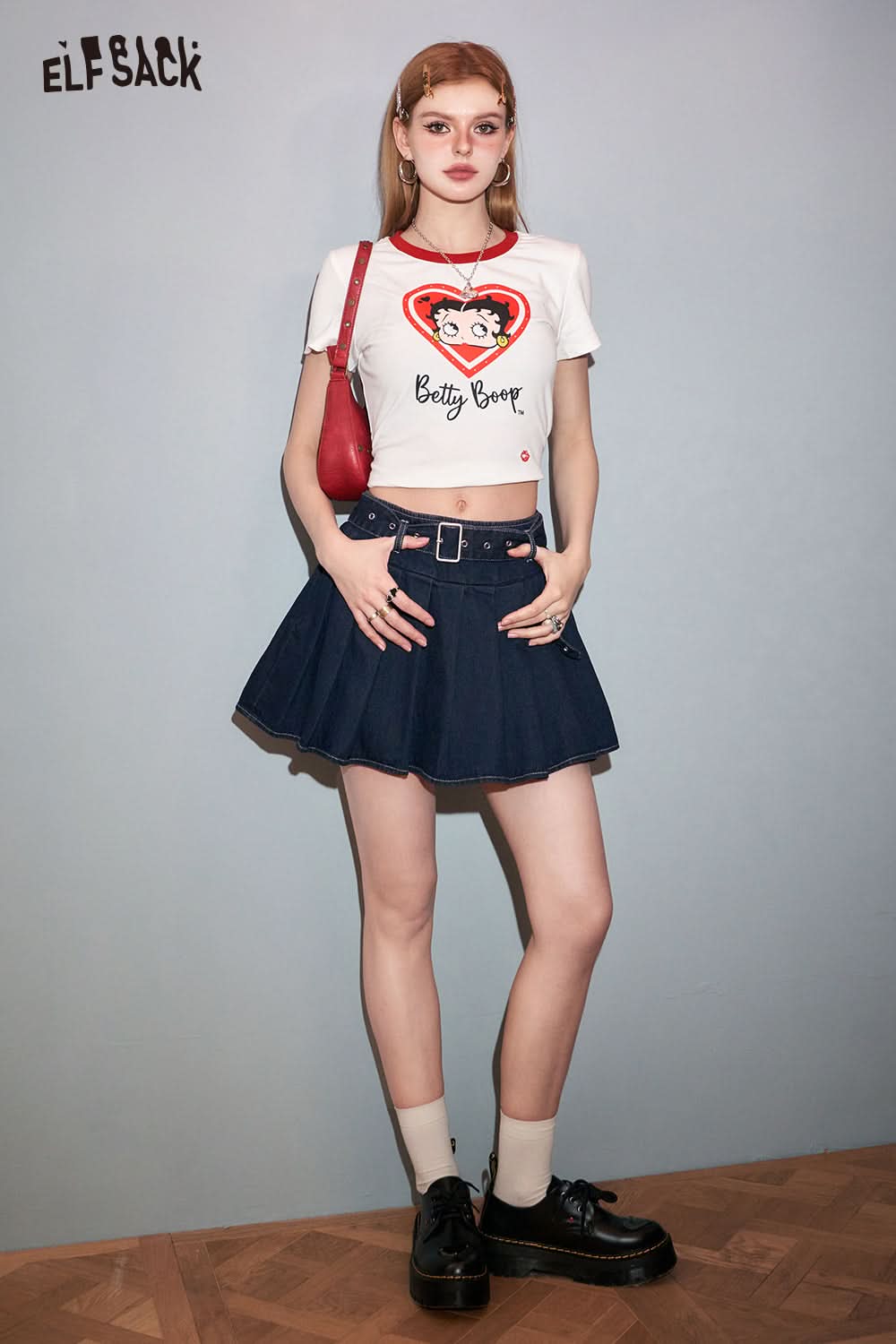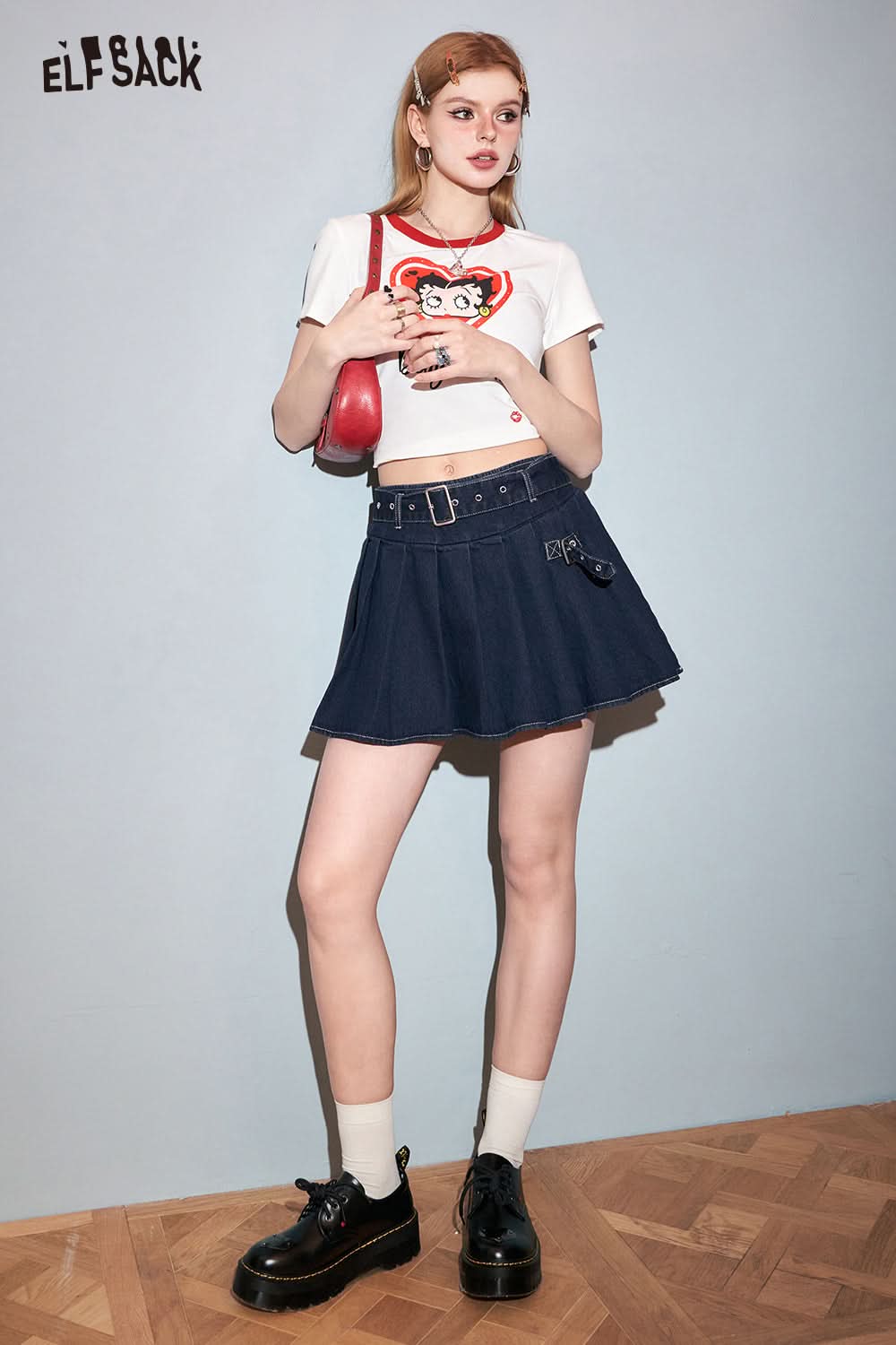 Petite High Waist Denim Pleated Skirt