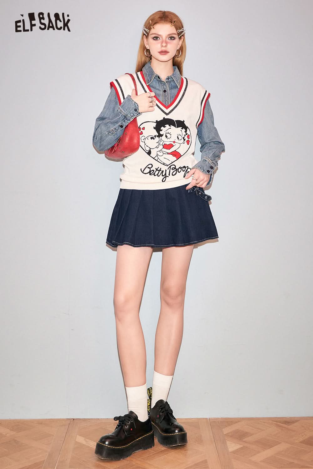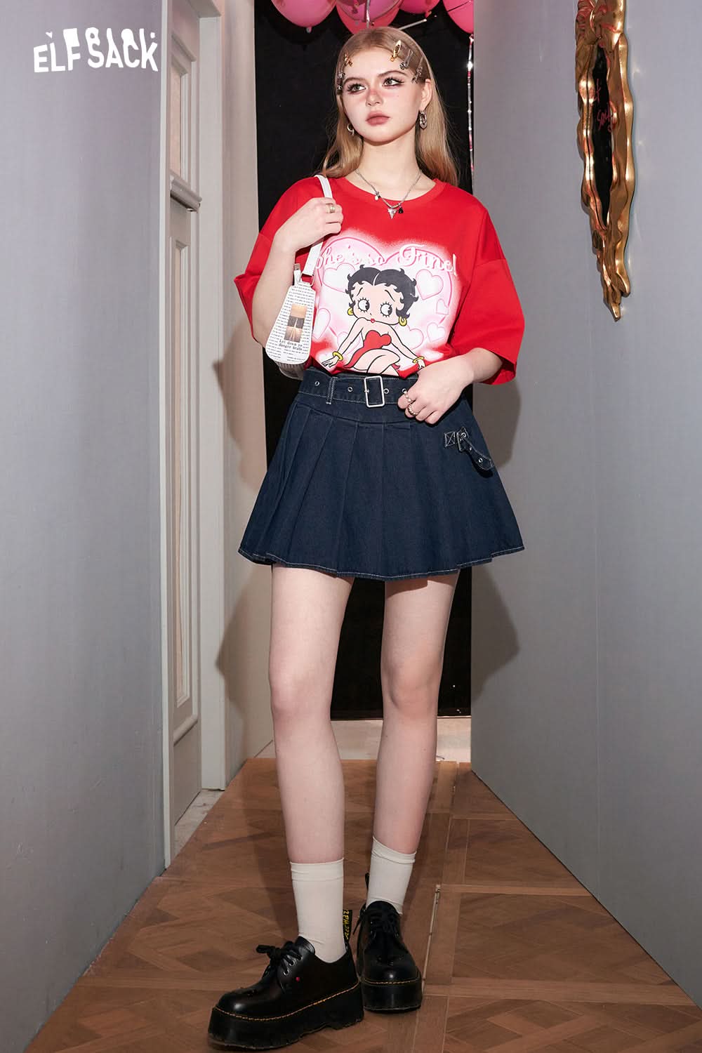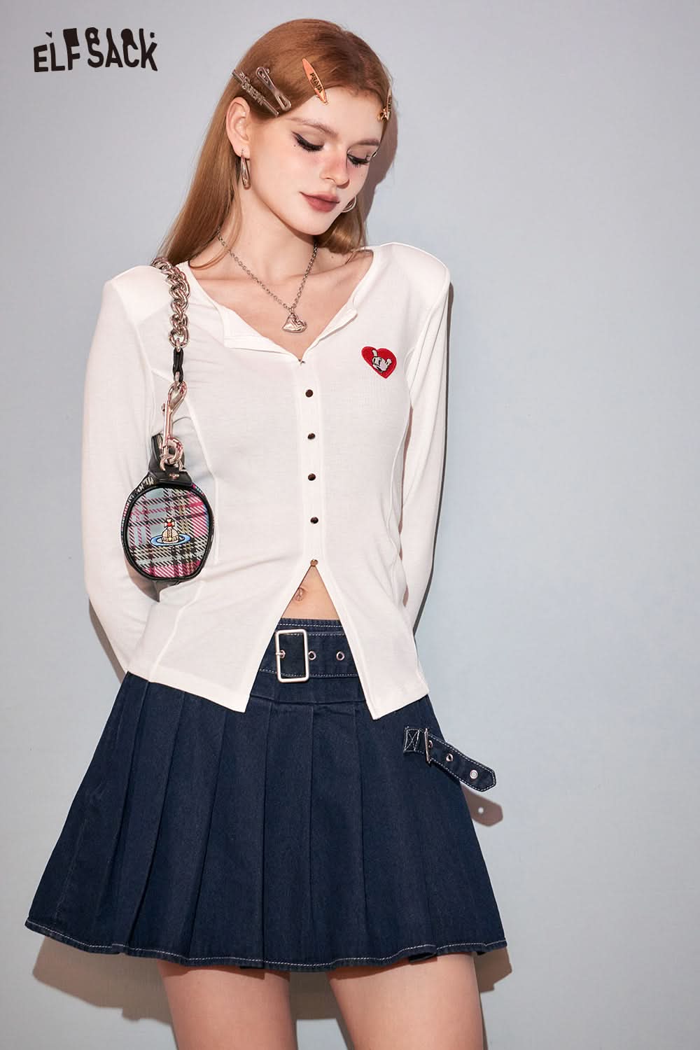 Petite High Waist Denim Pleated Skirt