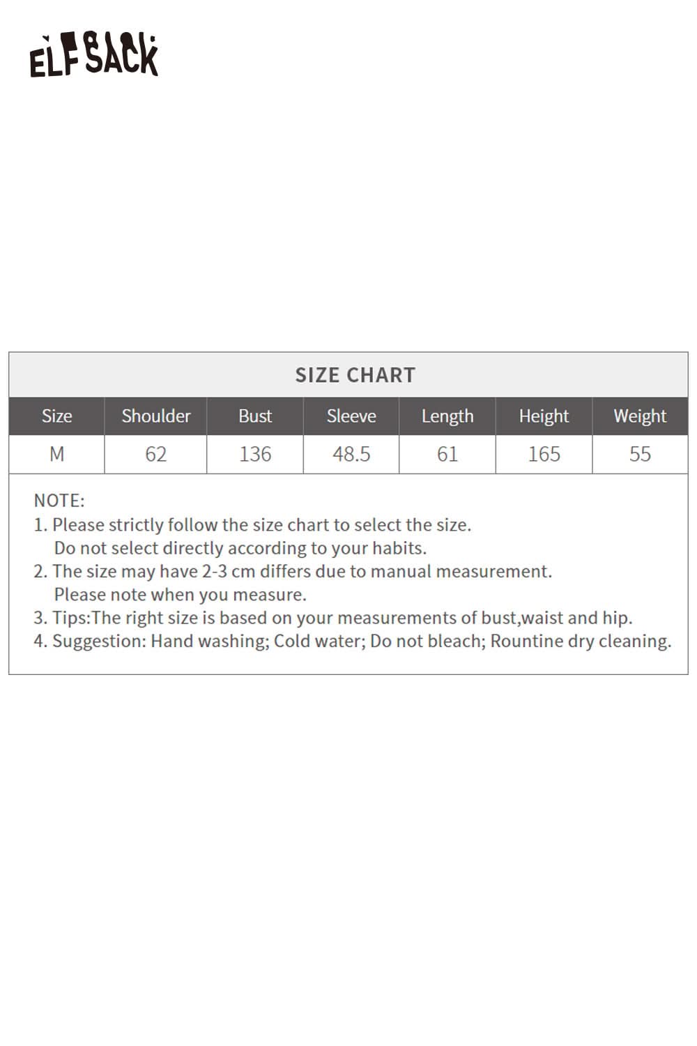 Size chart for ELFSACK vintage striped knit cardigan showing measurements and care instructions