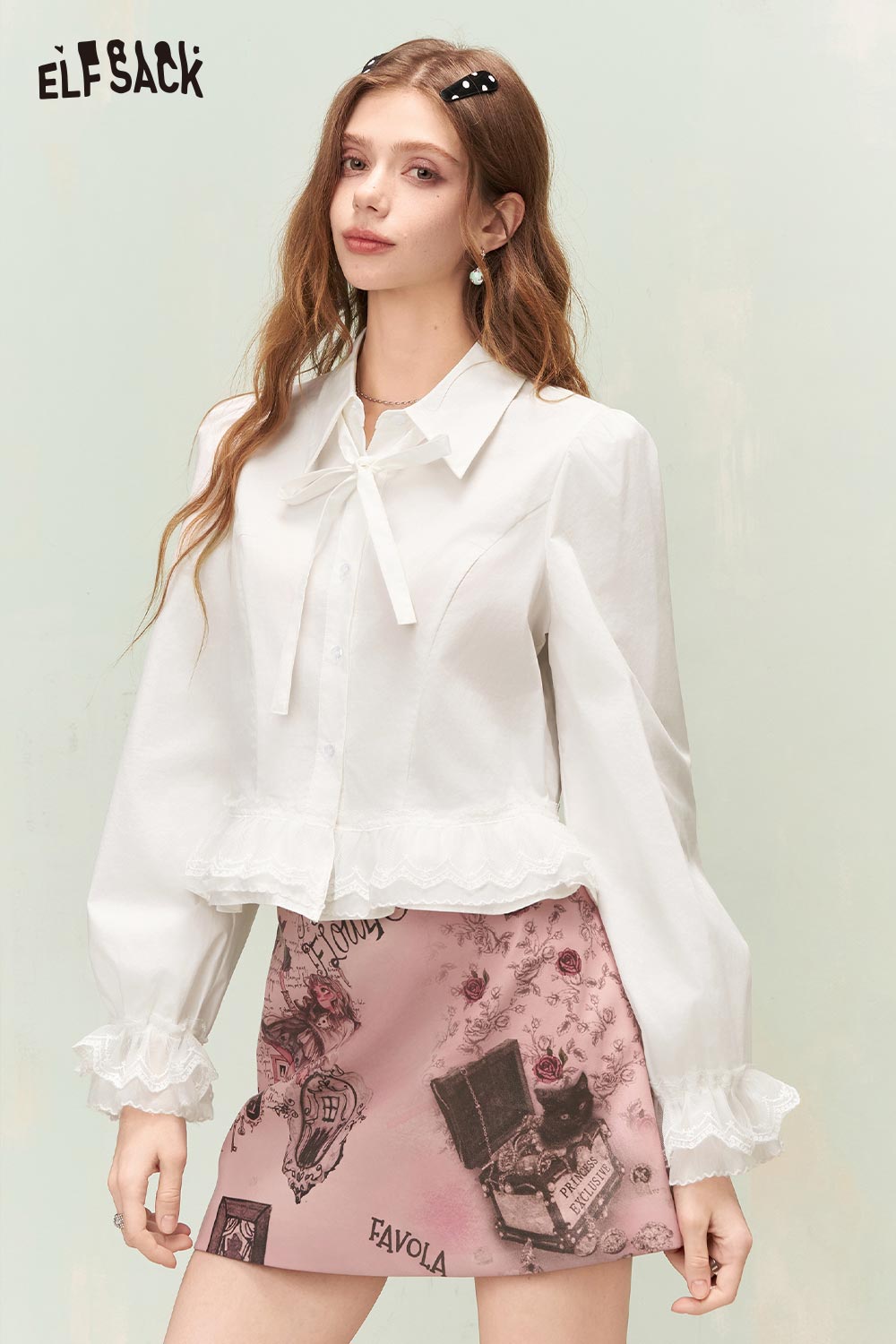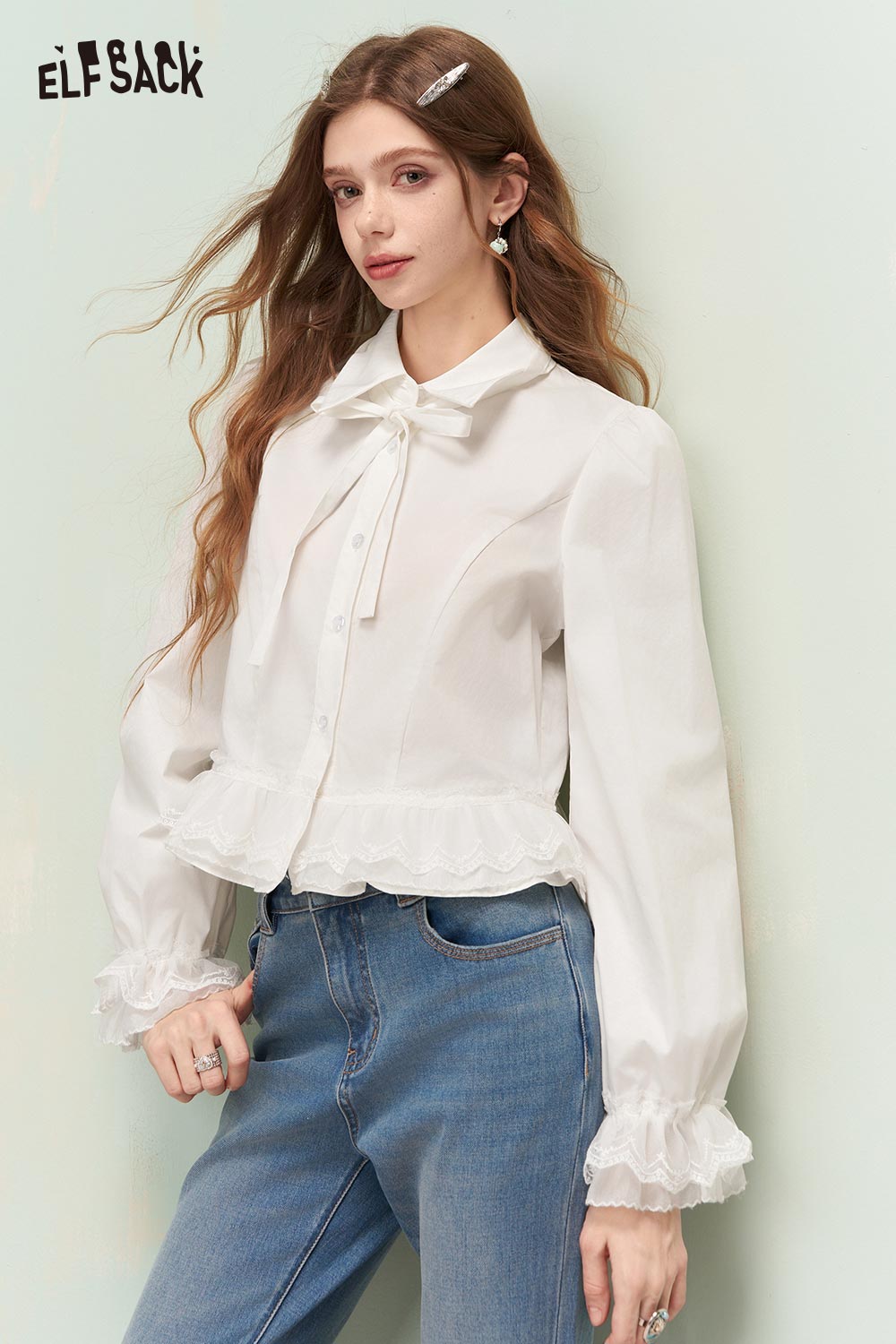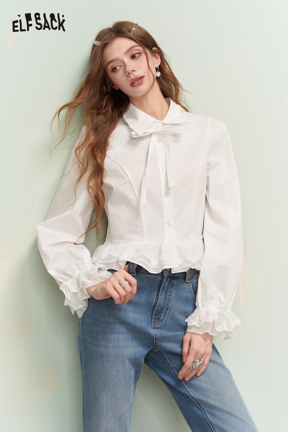 Elegant Button Down Shirt with Ruffled Lace Hem