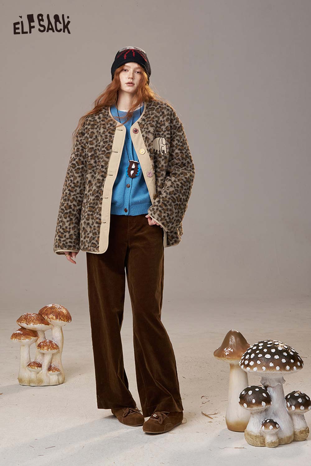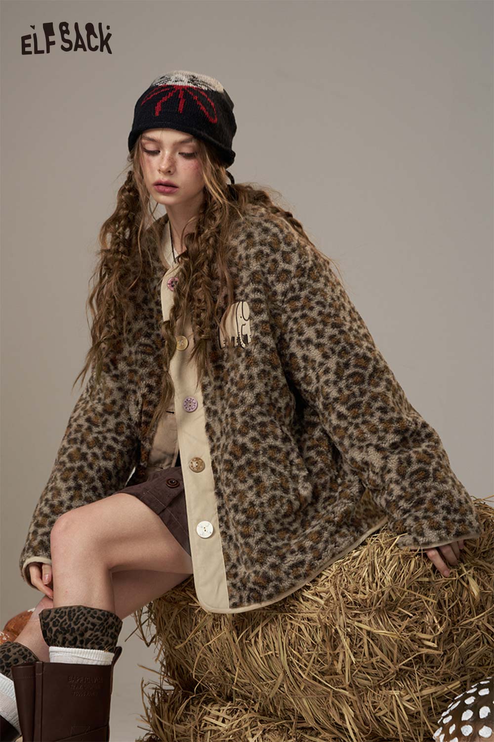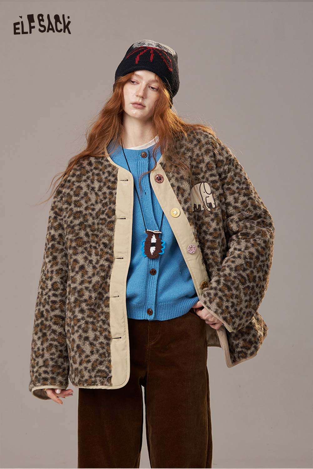 Polycotton Animal Print Panel Faux Shearling Puffer Jacket