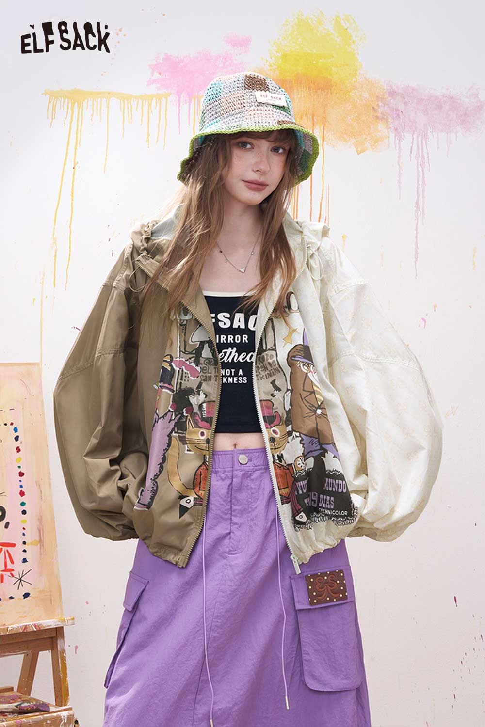 Novelty Print Sun Protective Jacket with Adjustable Hood
