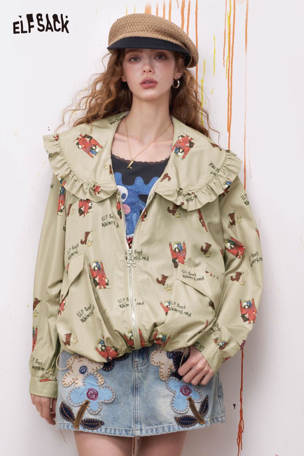 Sweet Cool Girly Splatter Print Hooded Zip Up Sweatshirt Jacket