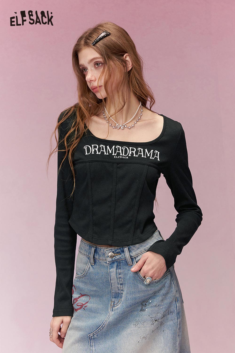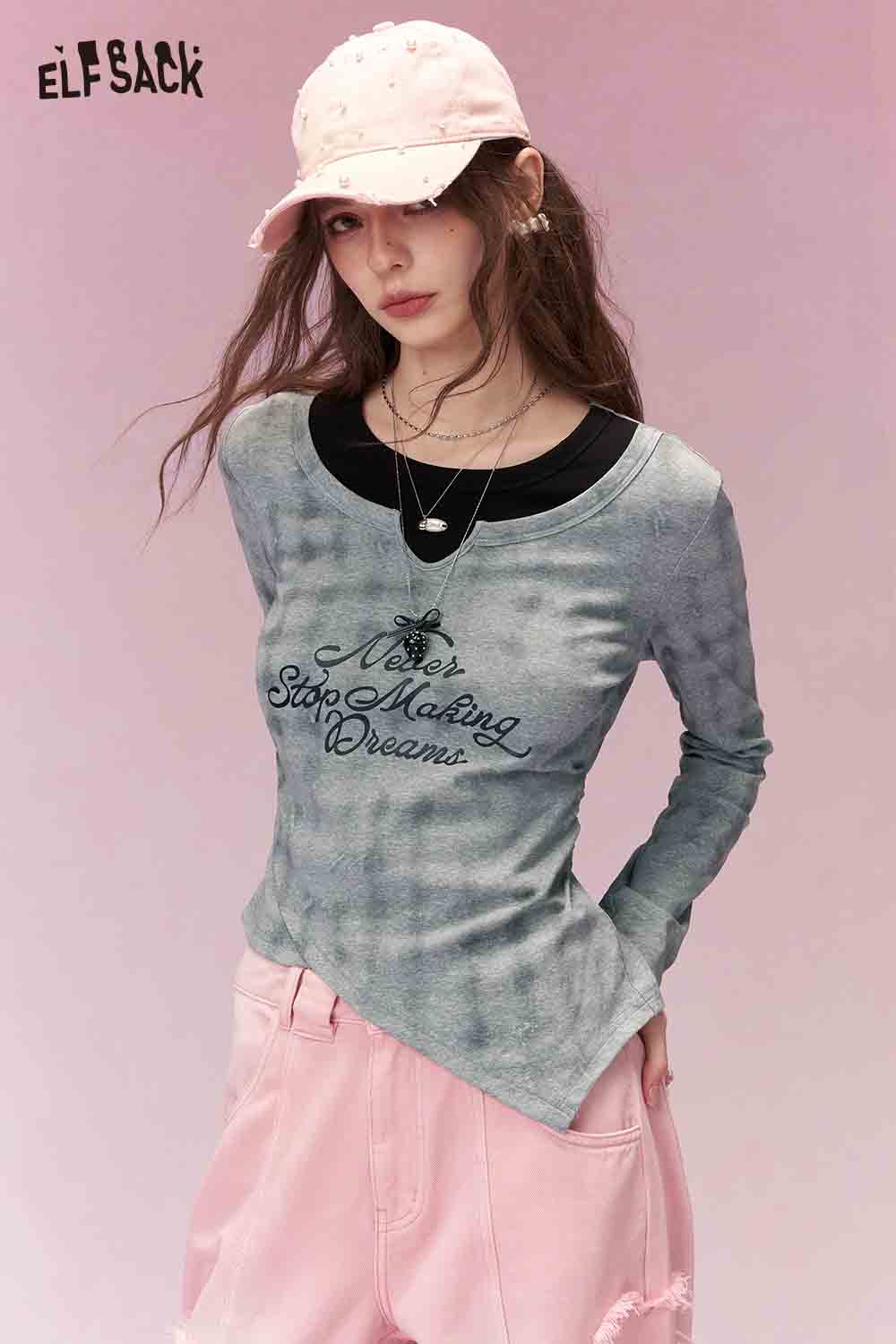 Y2K Aesthetic Long Sleeve T-Shirt with Side Drawstring Ruched