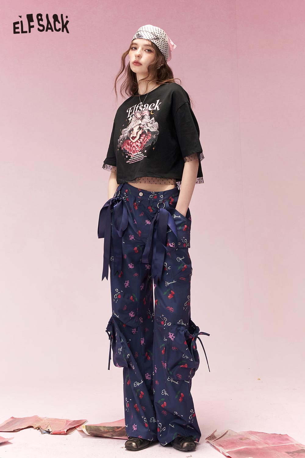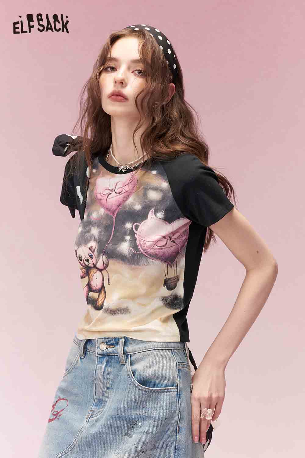 Casual Versatile Cartoon Print Polka Dot Trim Short Sleeve Tshirt