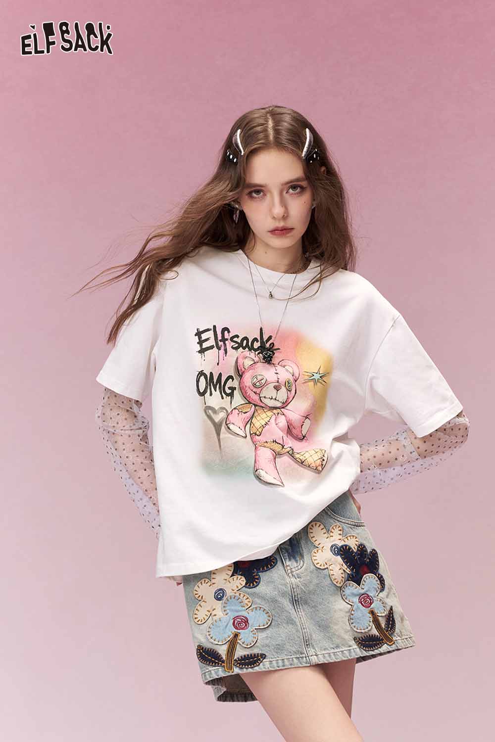 Viscose Blend Bear Graphic Essential Layer Relaxed Fit Tee