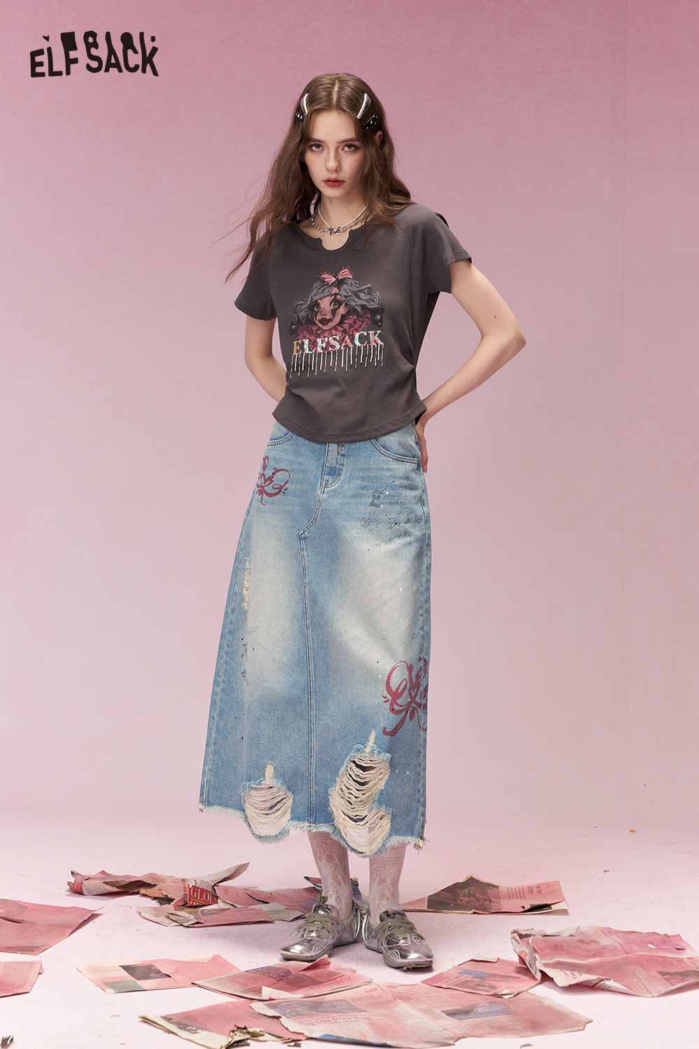 Sweet Cool Distressed Ripped Bow Embroidered Denim Skirt