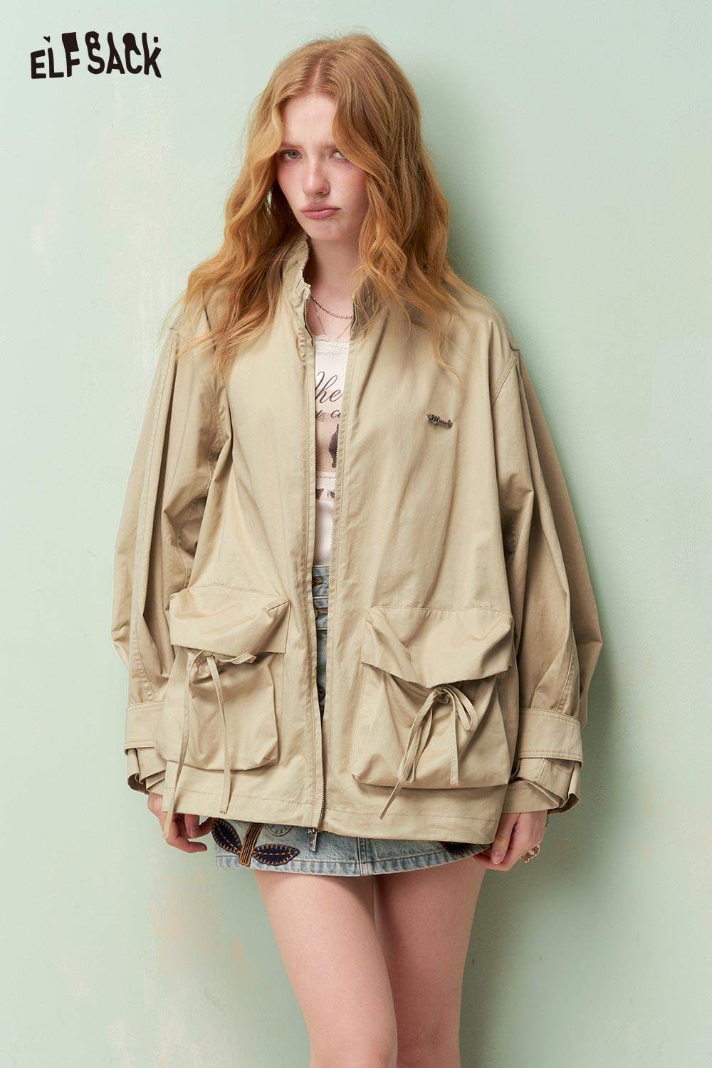 Techwear Drawstring Pocket Stand Collar Loose Fit Cargo Trench Coat