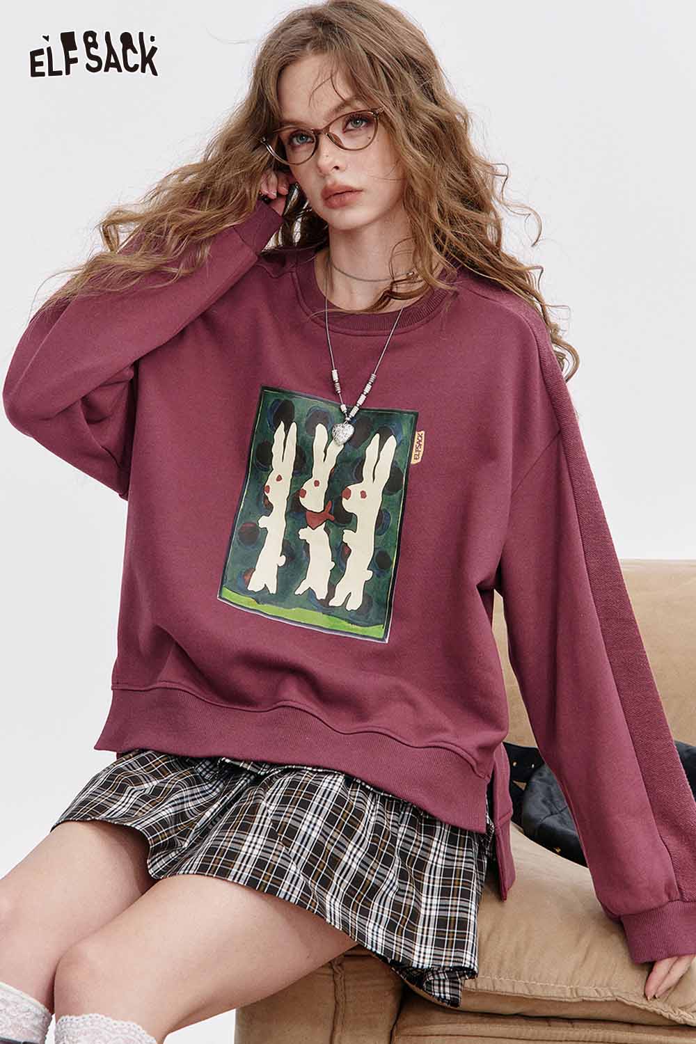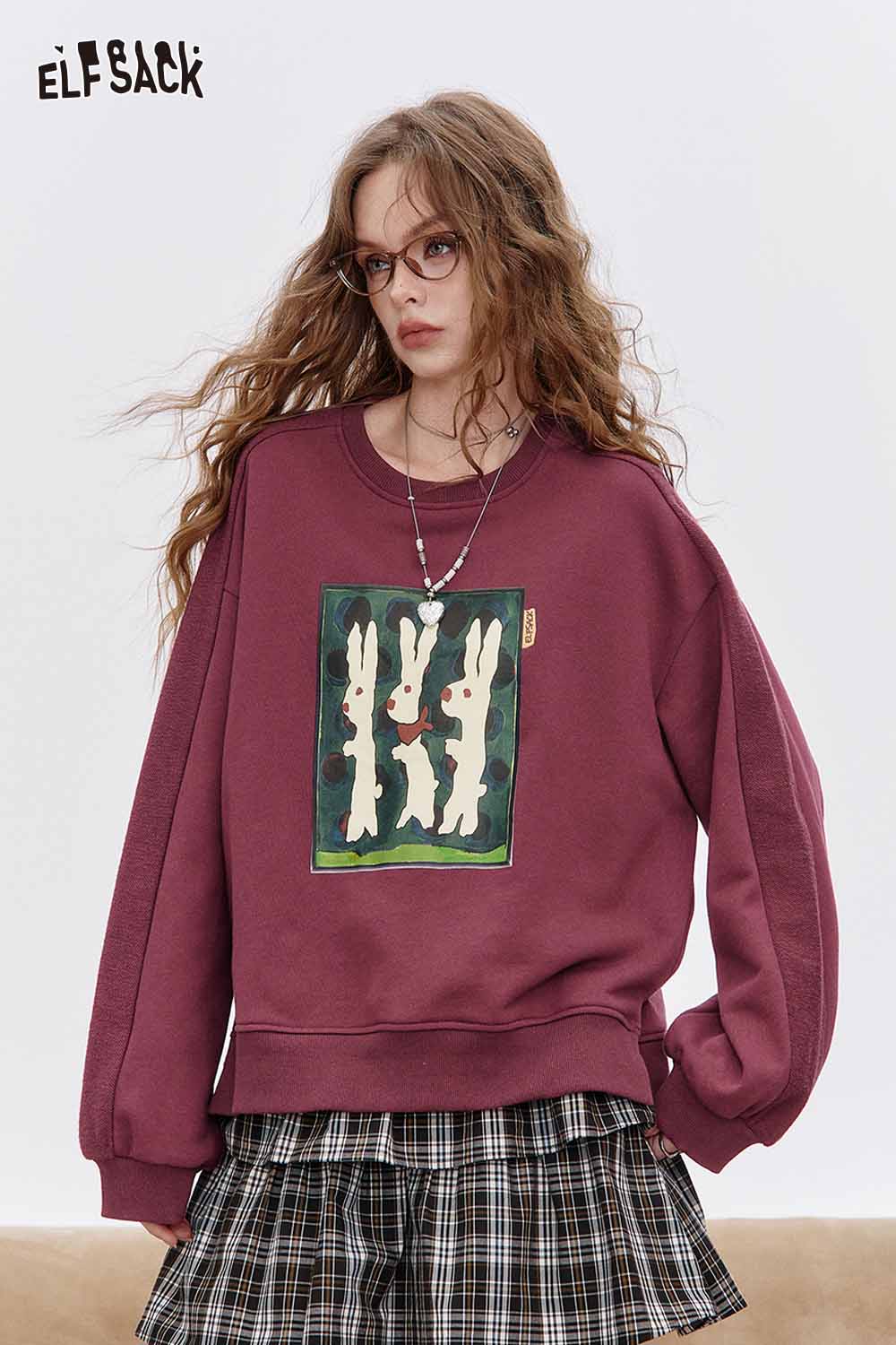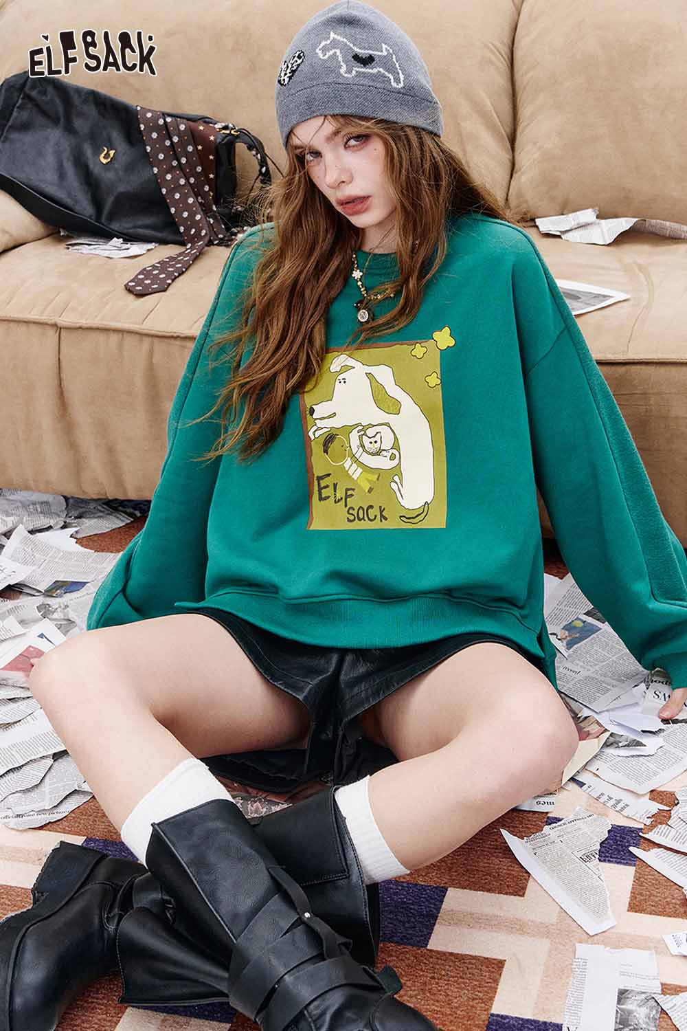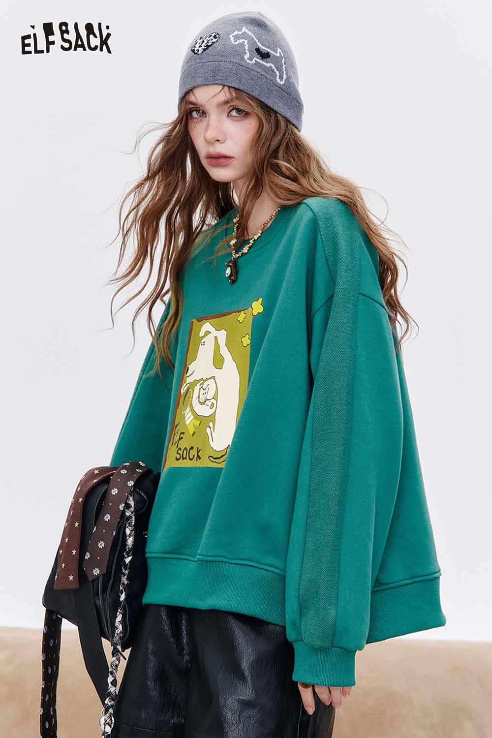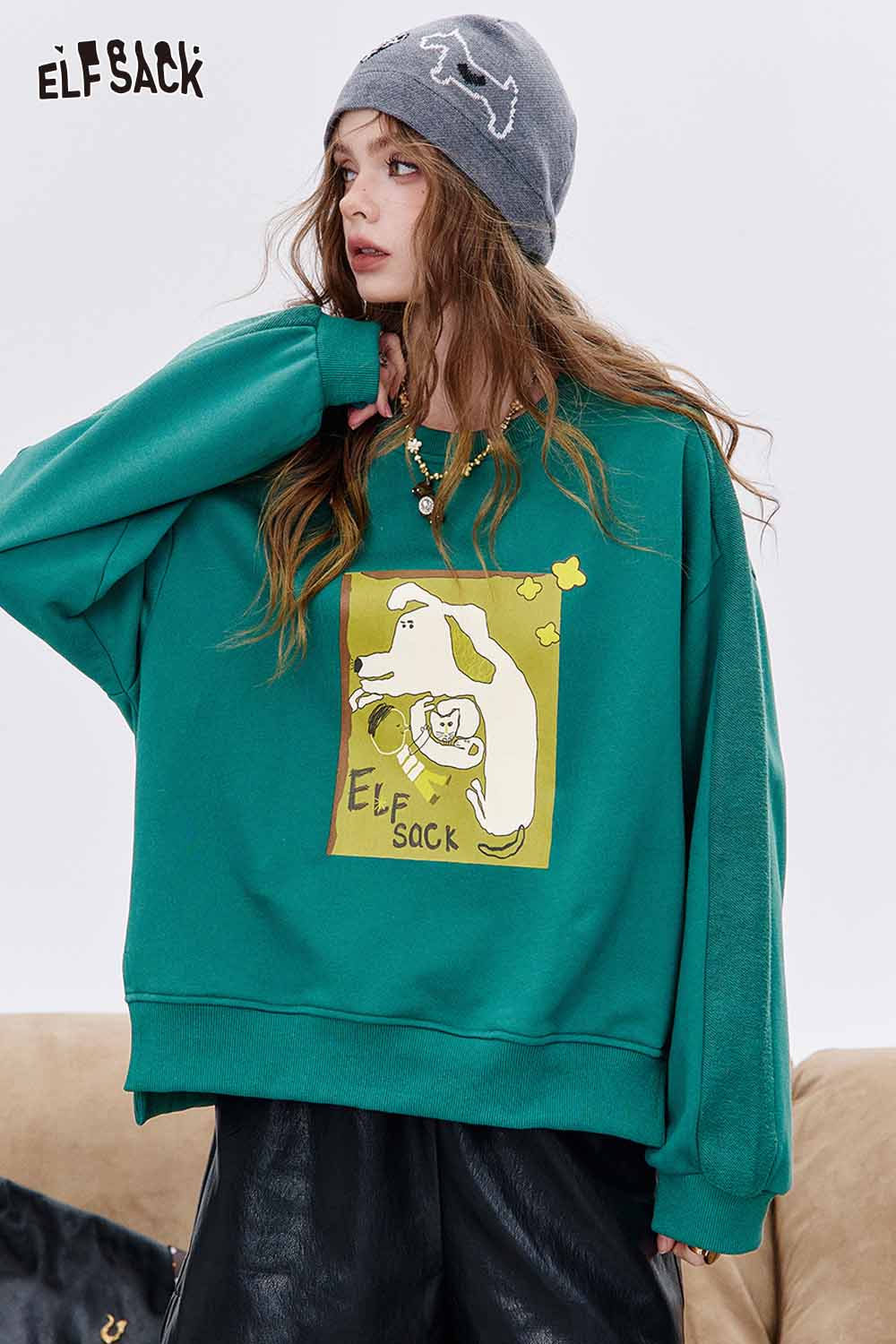 Soft French Terry Fabric Vibrant Color Block Animal Graphic Print Pullover Hoodie