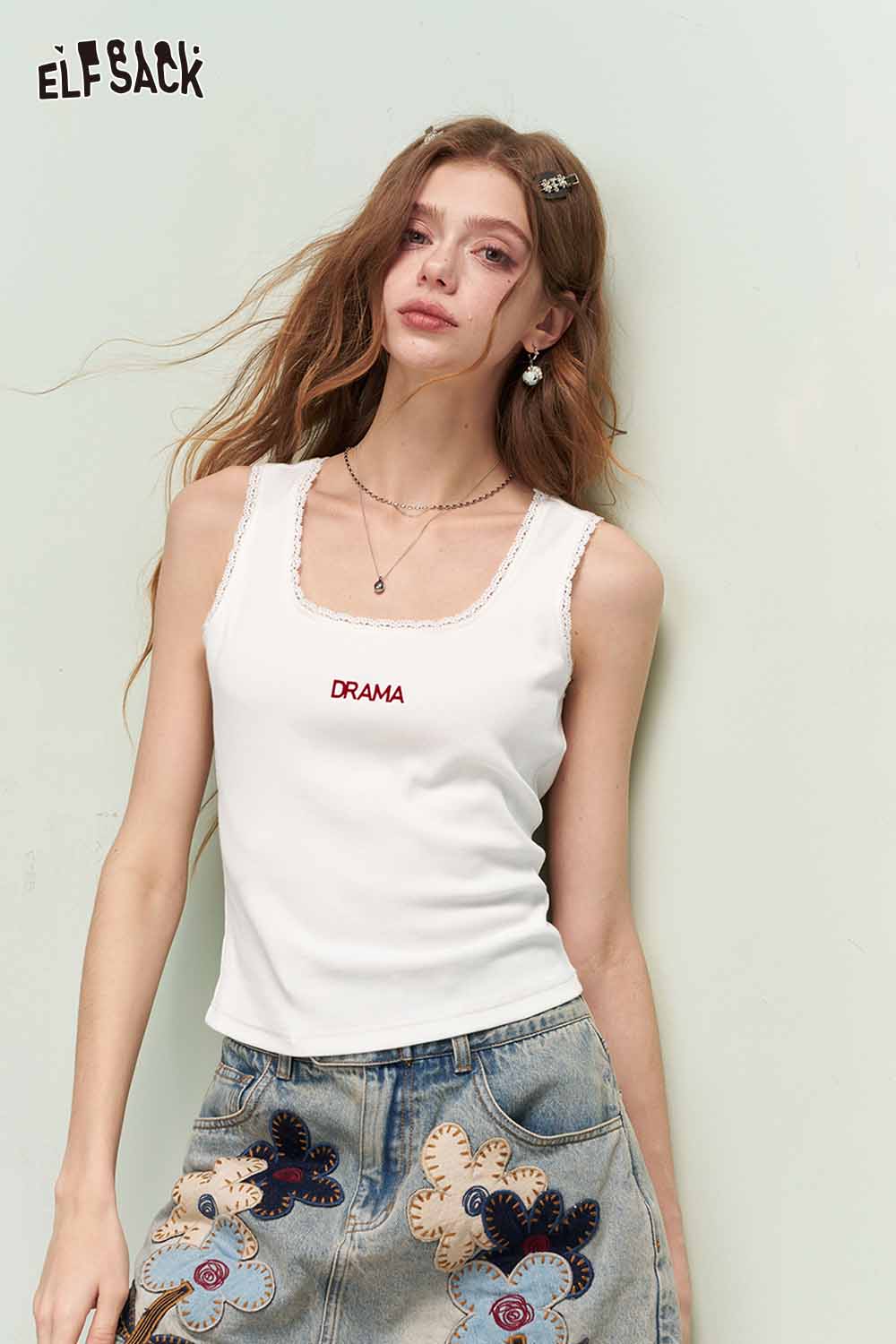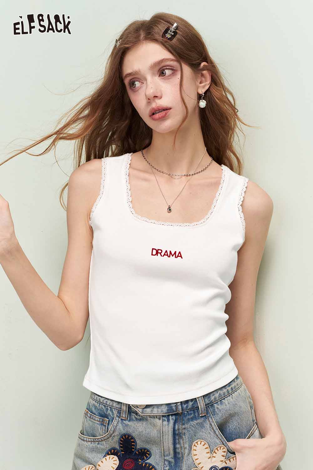 Minimalist Versatile Lace Trim Letter Print Camisole