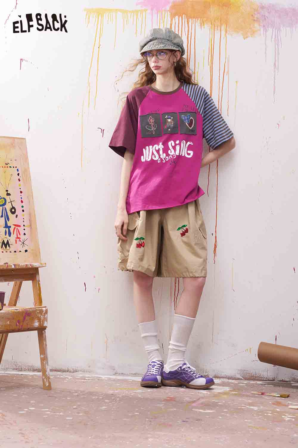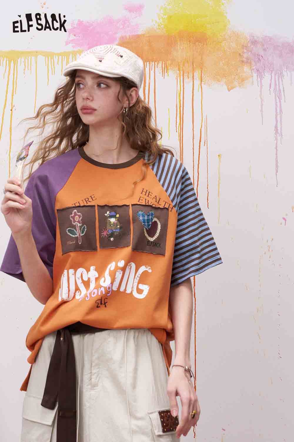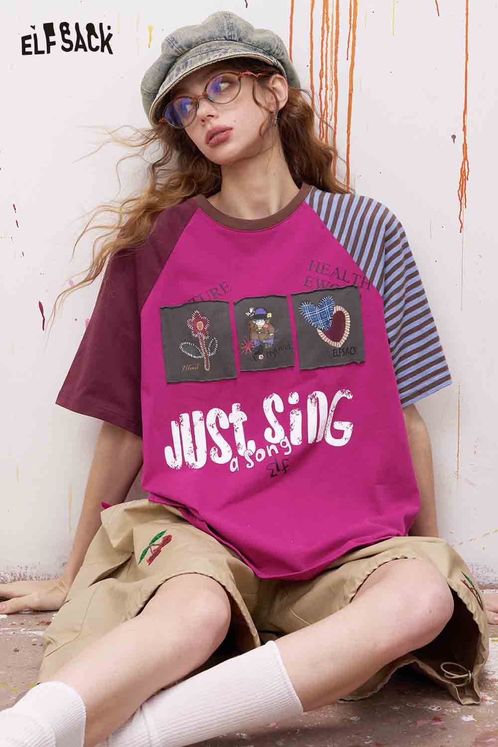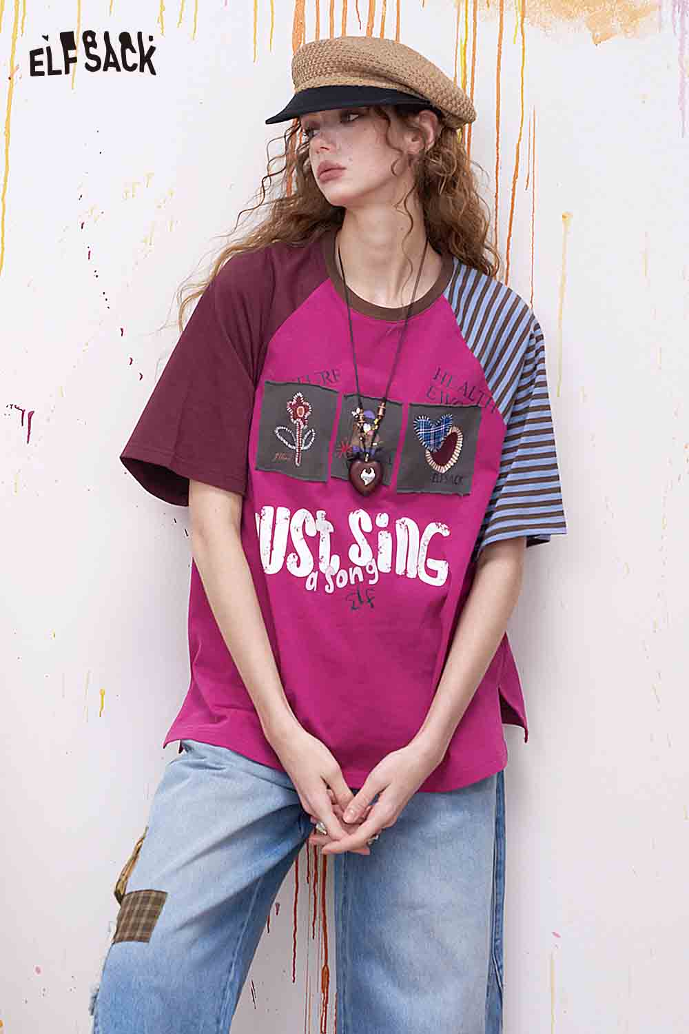Patch Applique Raglan Sleeve T-Shirt