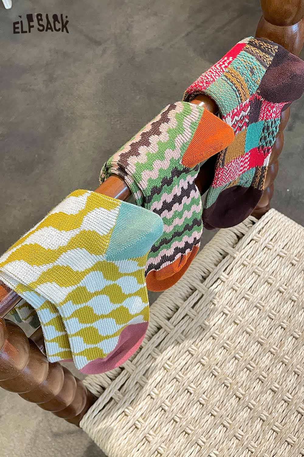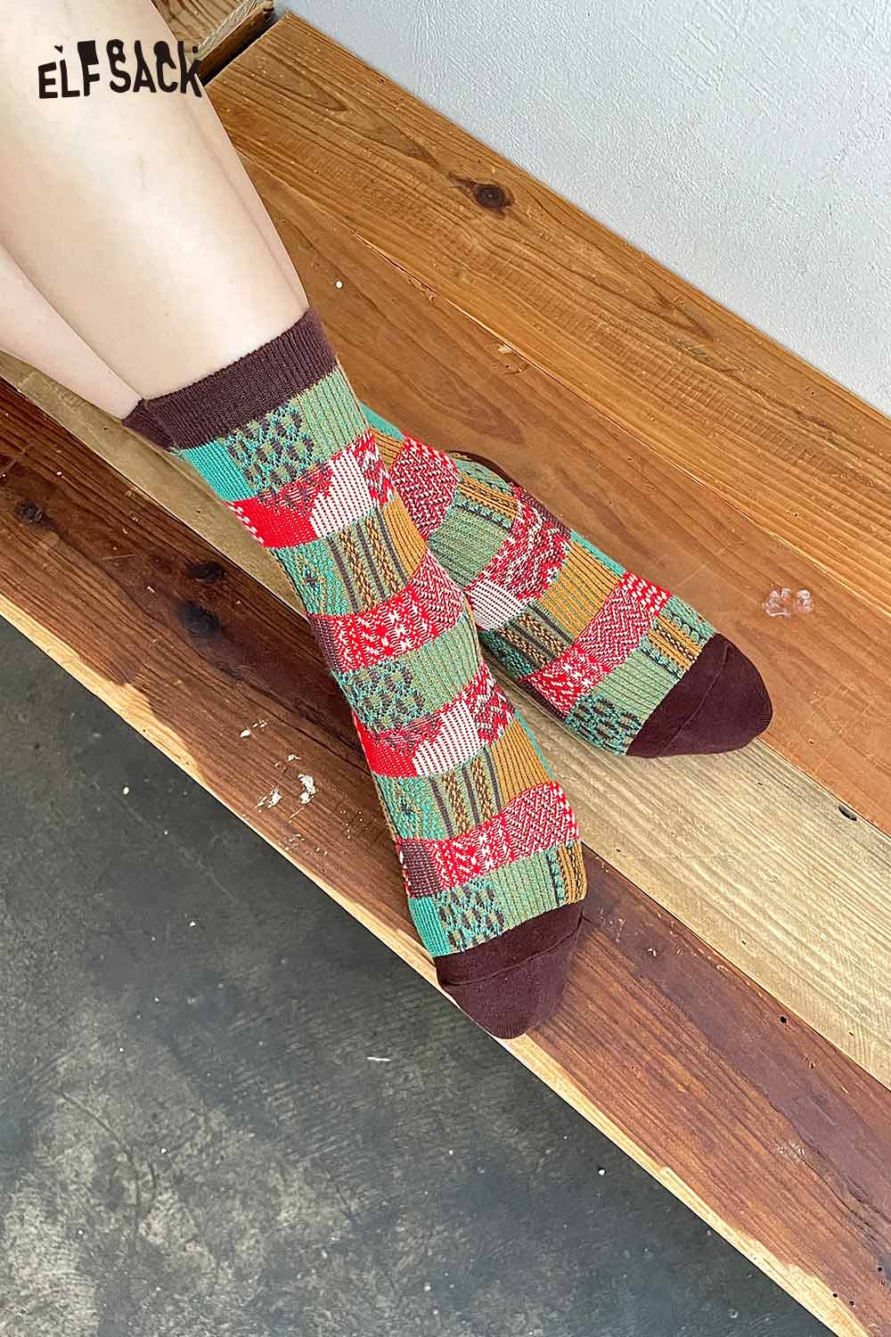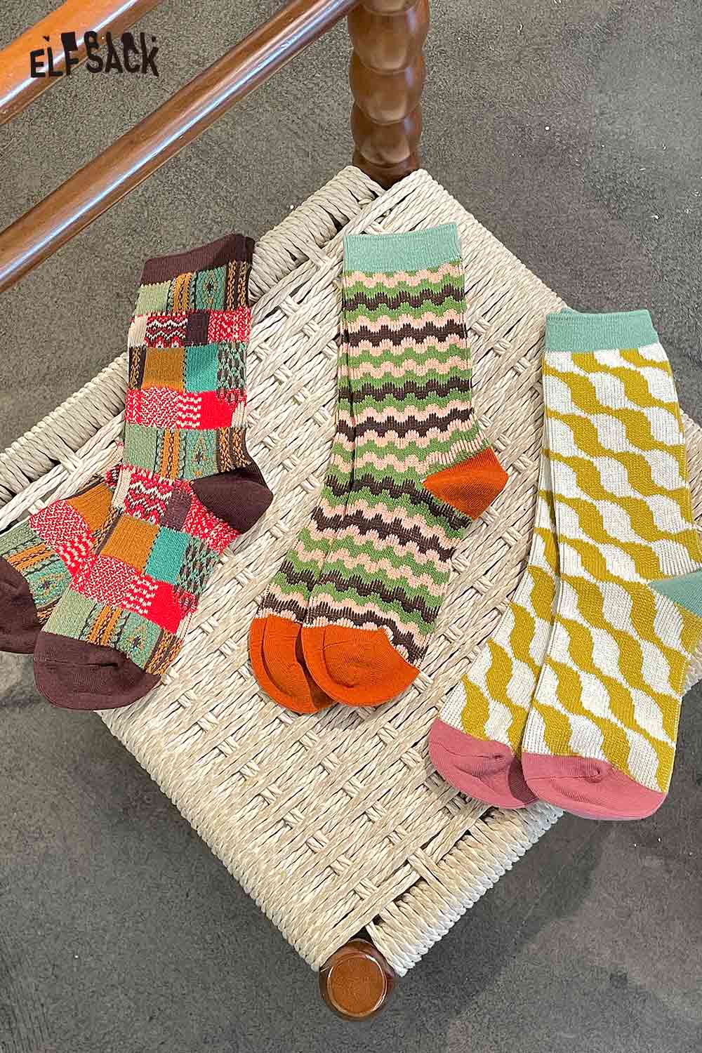 Cotton Bohemian Pattern Color Block Design Ankle Socks