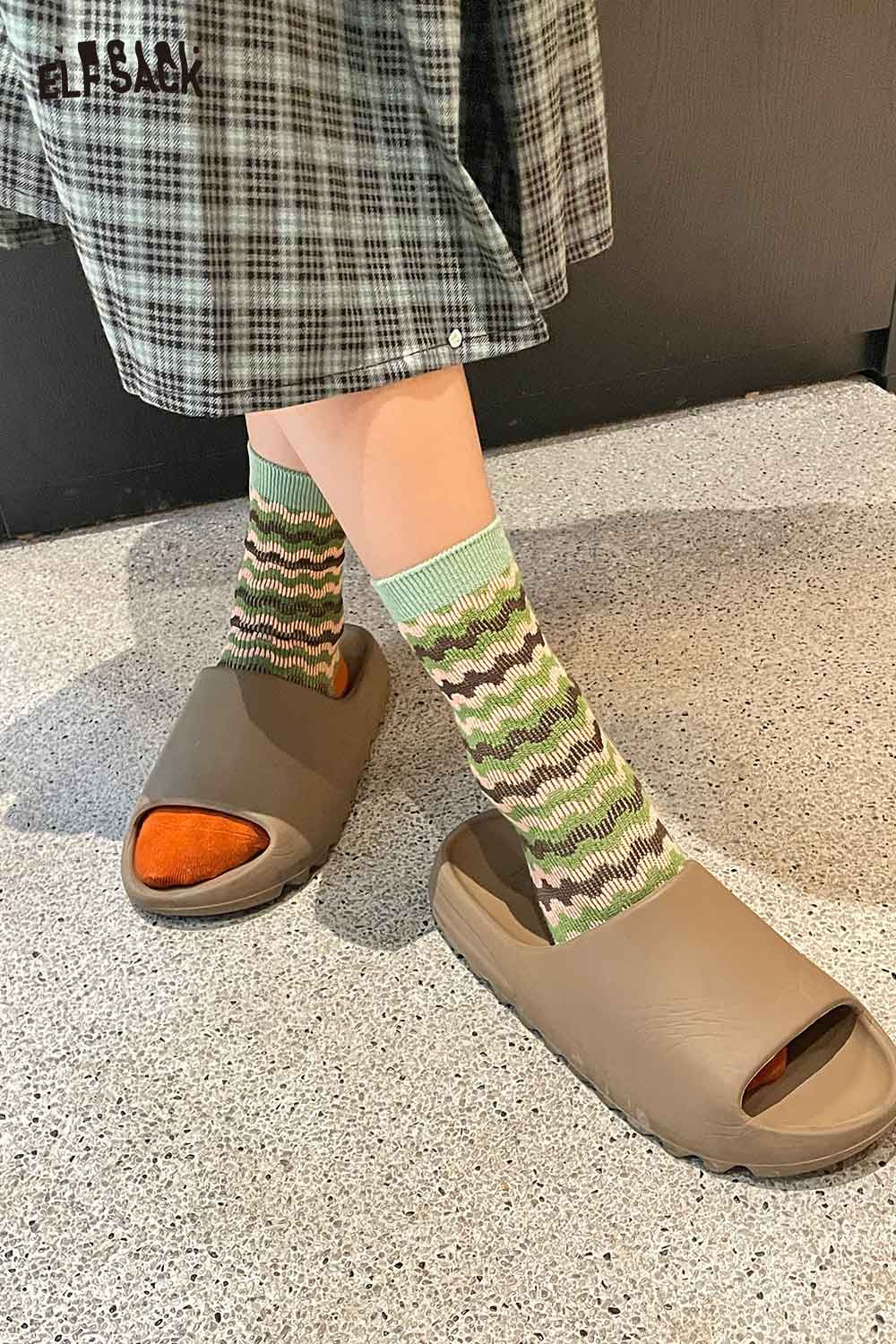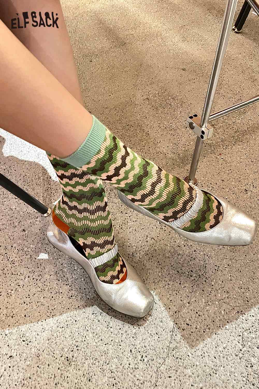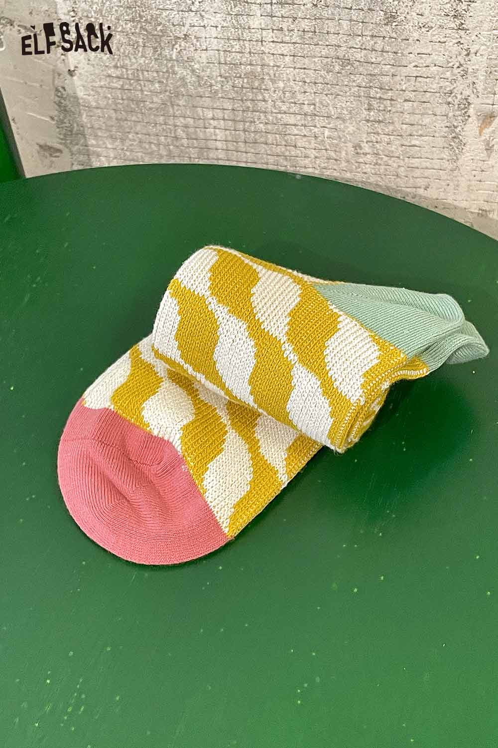 Cotton Bohemian Pattern Color Block Design Ankle Socks