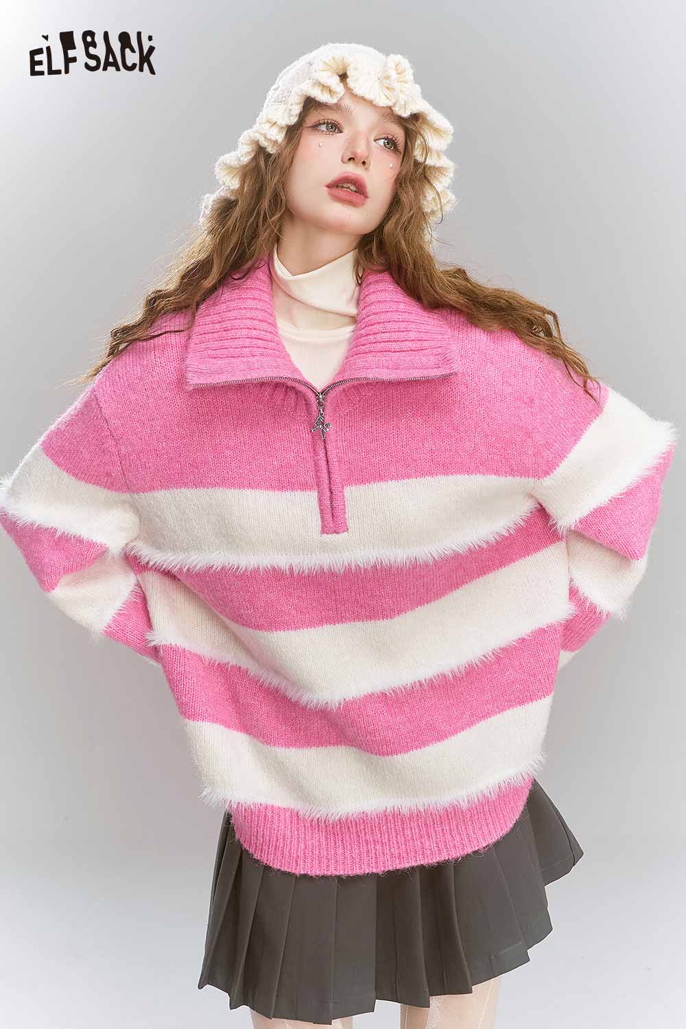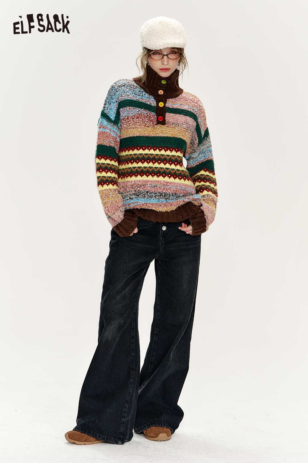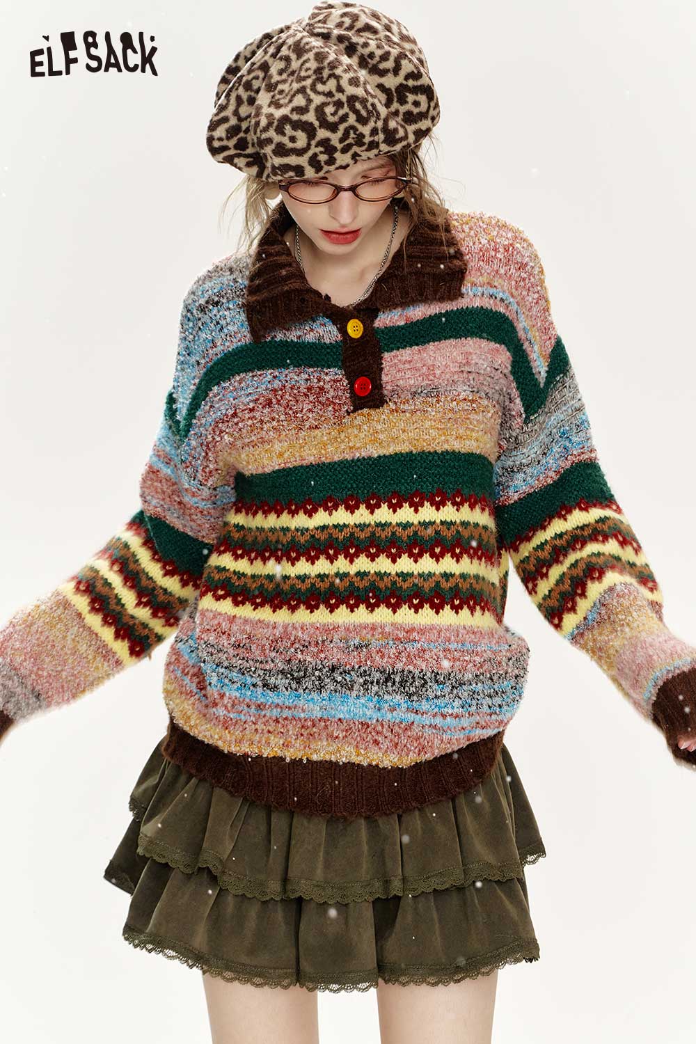 Color Block Patchwork Plush Feel Stripe Animal Graphic Sweater