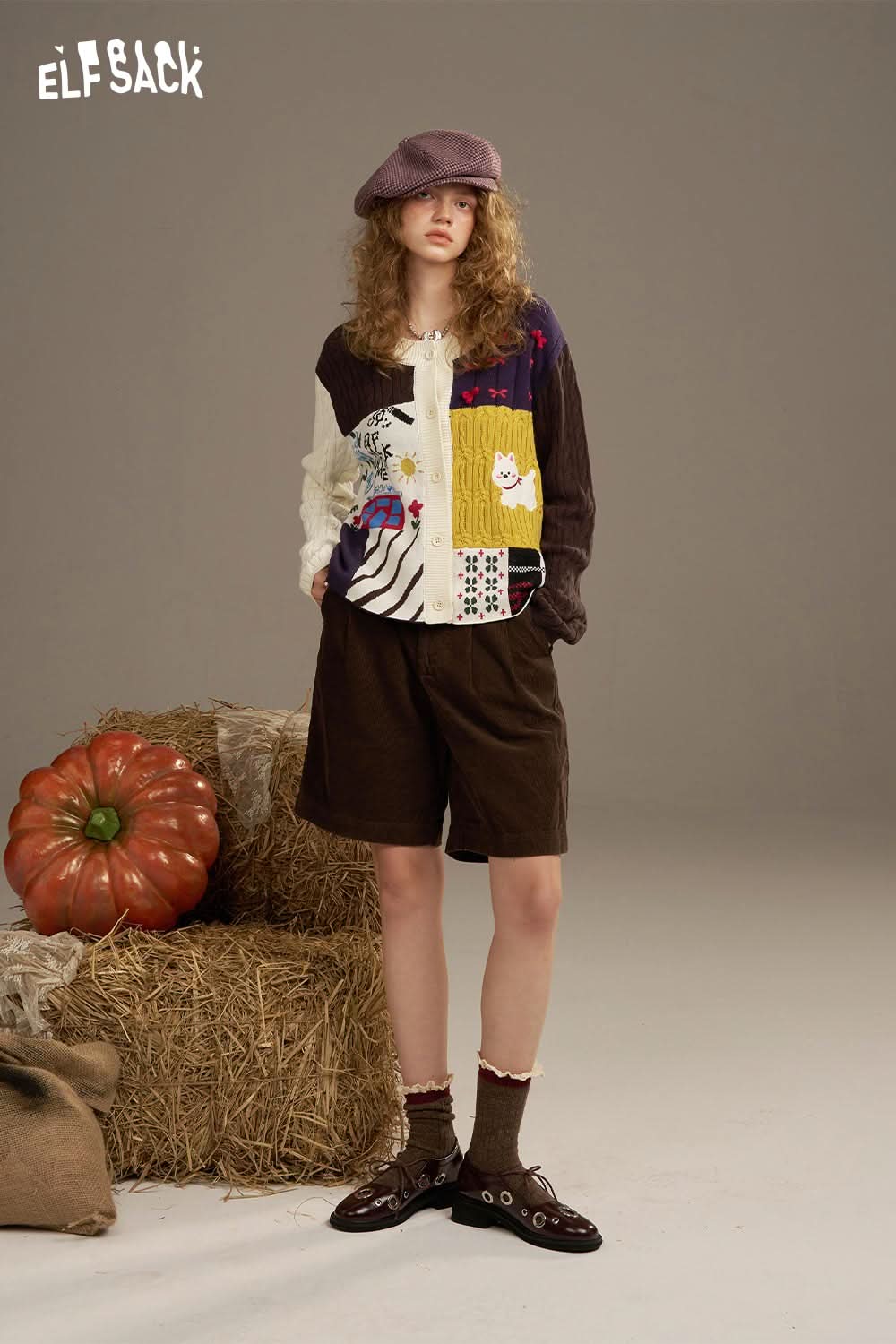 Cotton Patchwork Dog Motif Contrast Trim Open Front Cardi