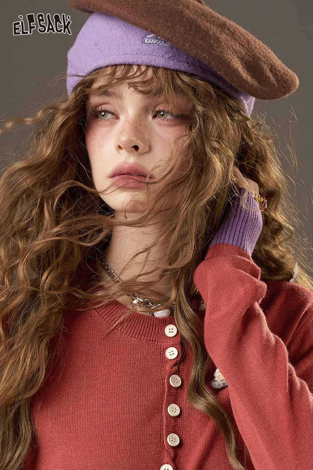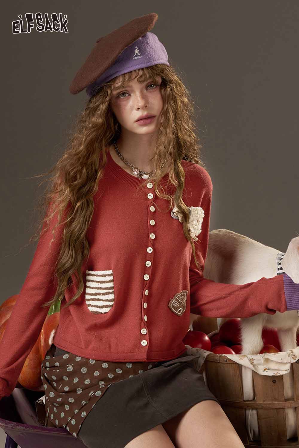 ELFSACK women's zebra print knit sweater in stylish outfit with accessories and vintage vibes