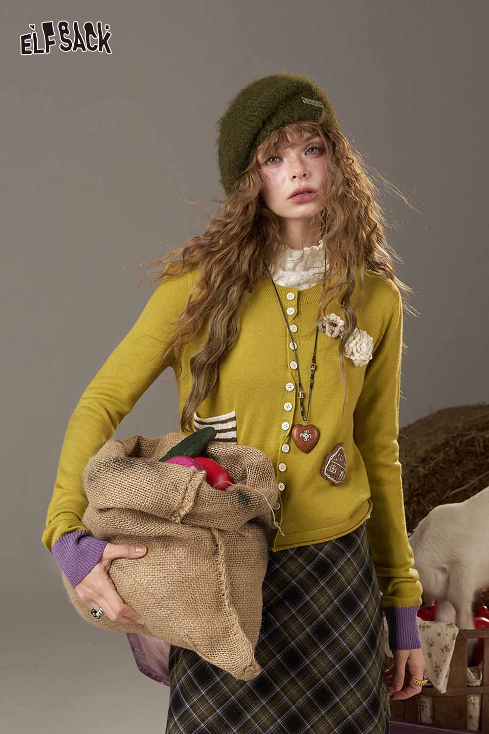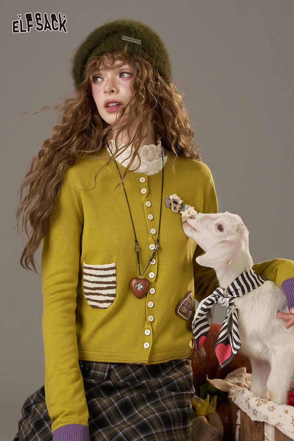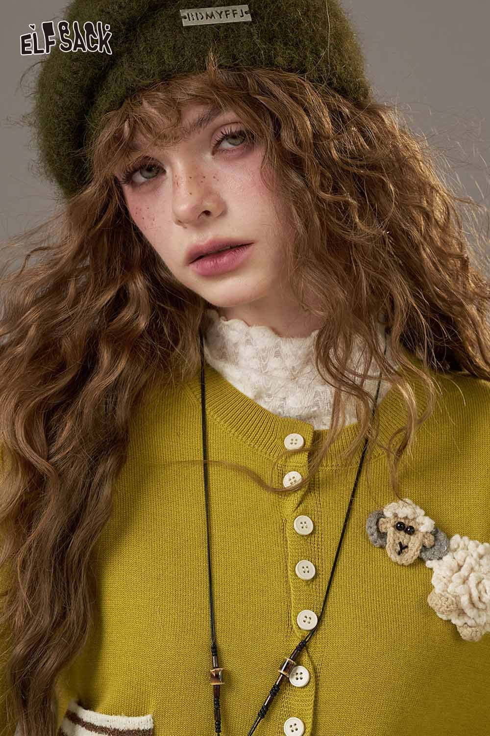 ELFSACK stylish yellow knitwear featuring a zebra print knit sweater for women with unique detailing