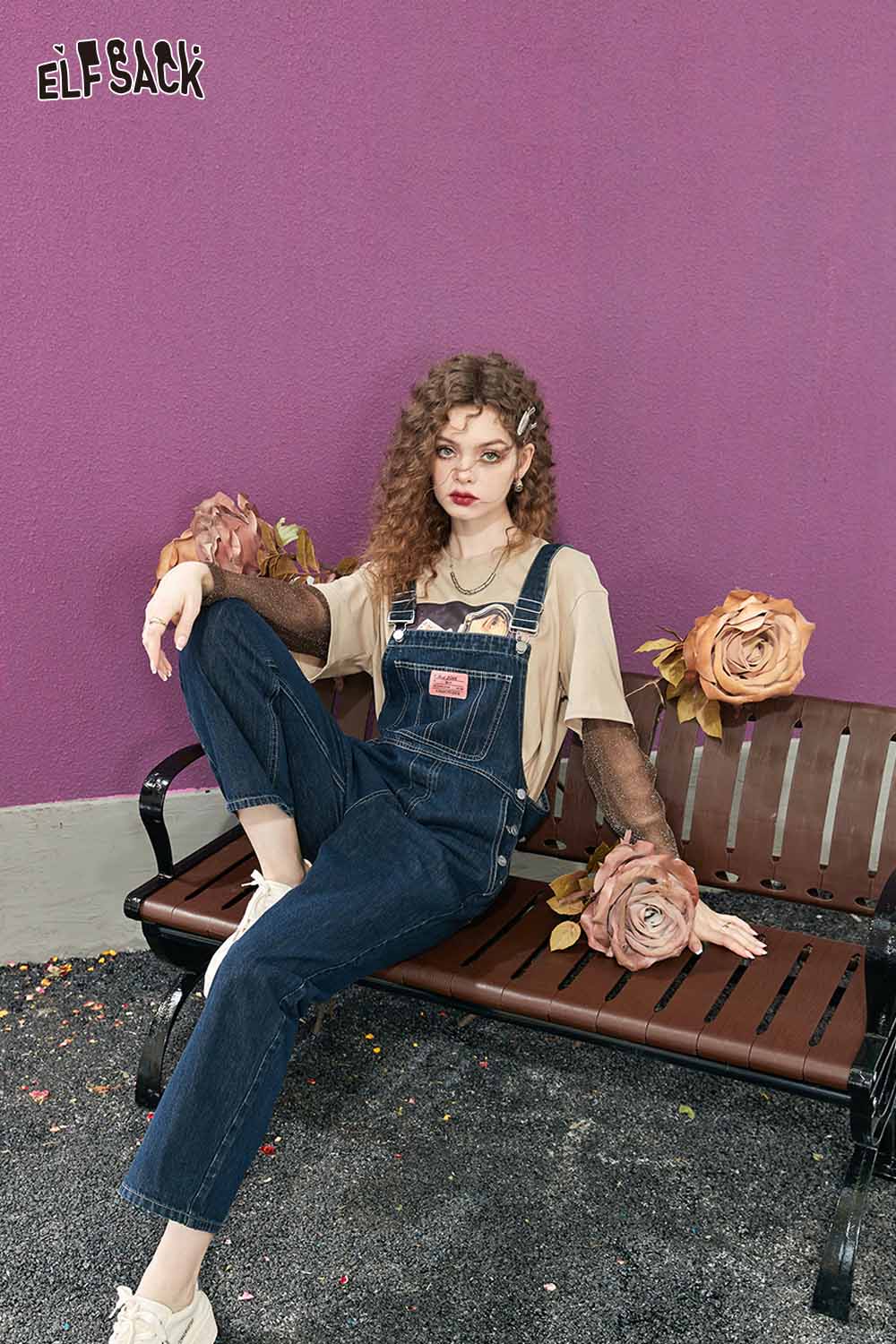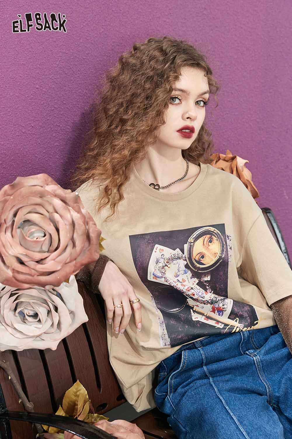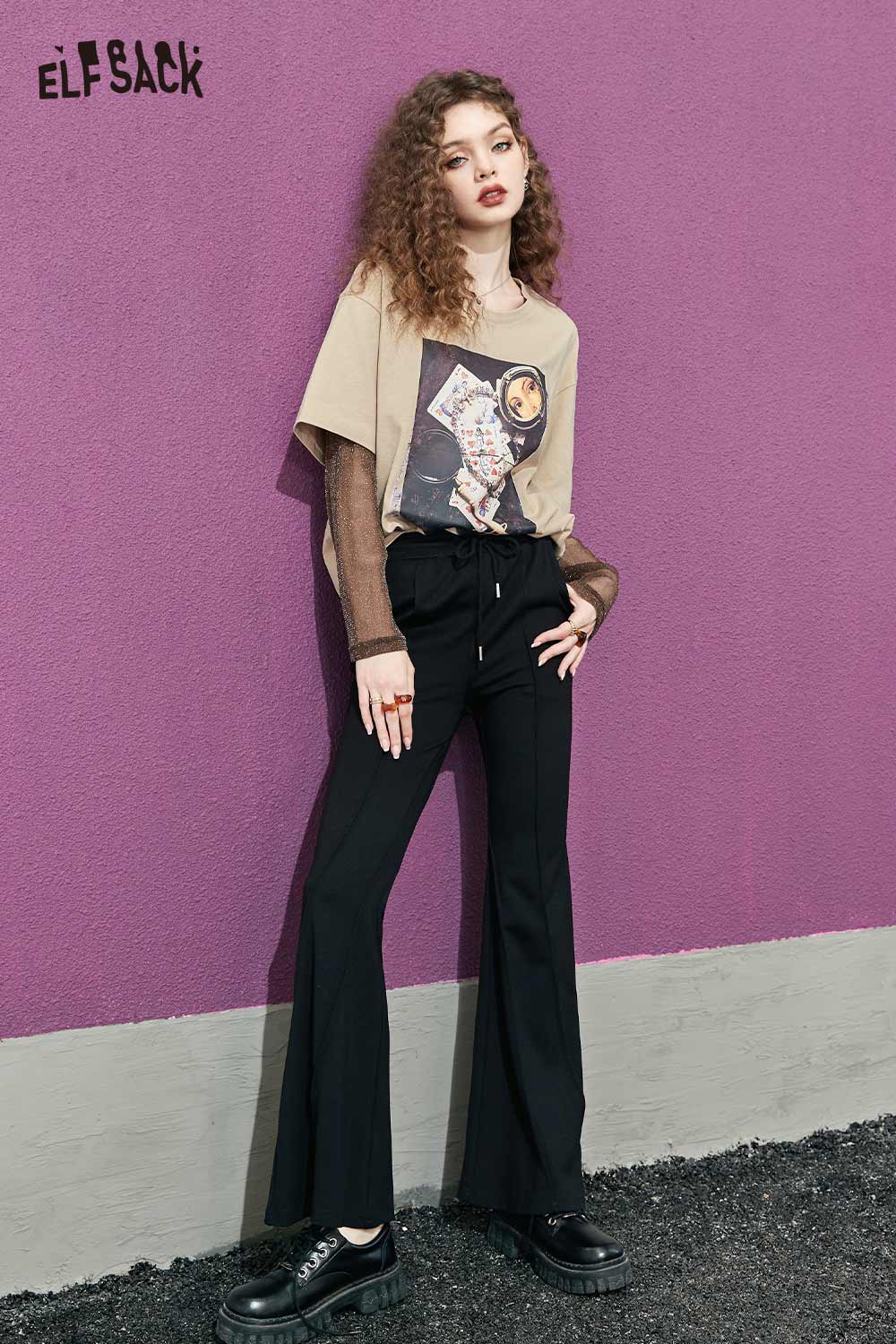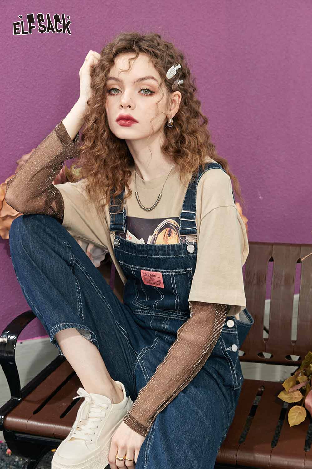 Loose Fake Two Piece Mesh Patchwork Graphic Long Sleeve Tshirt