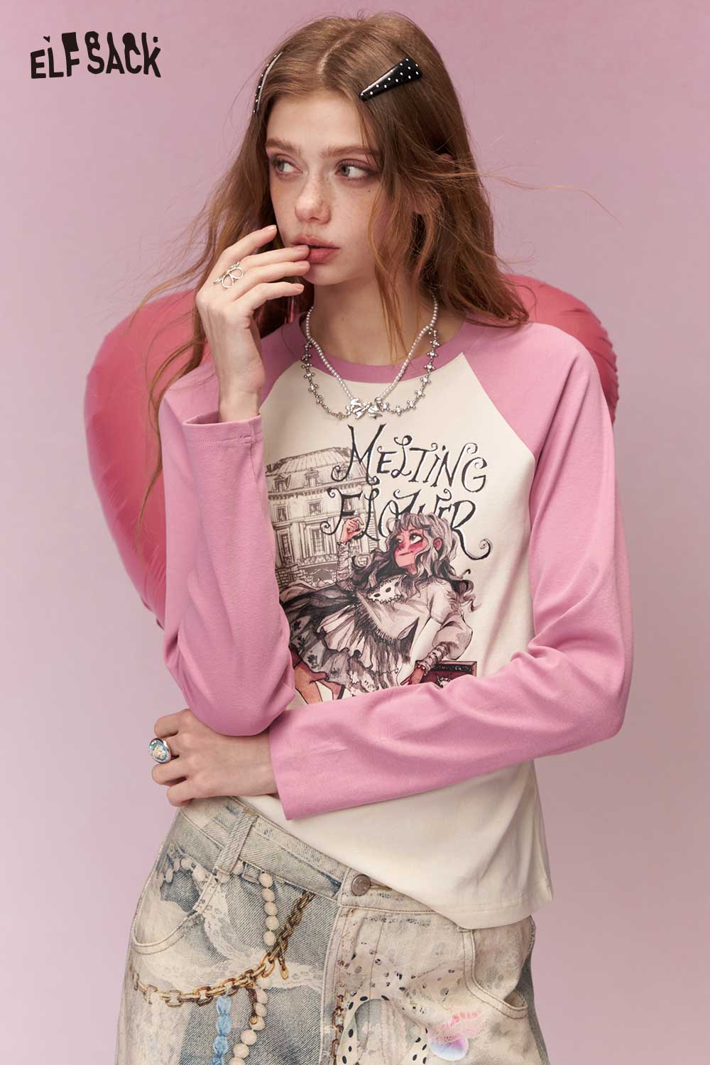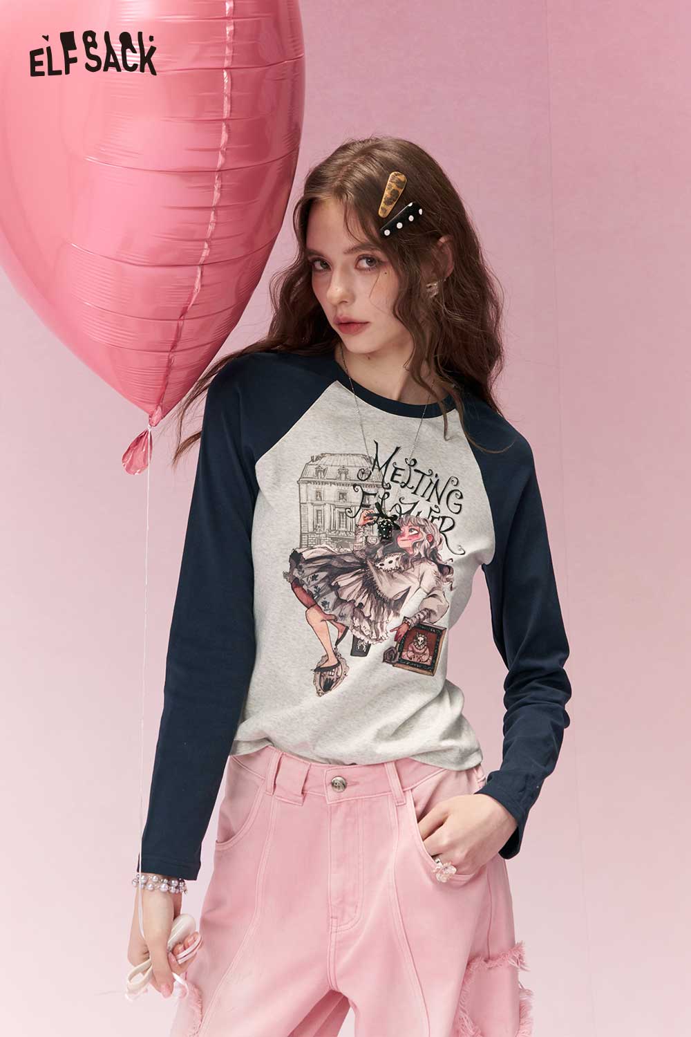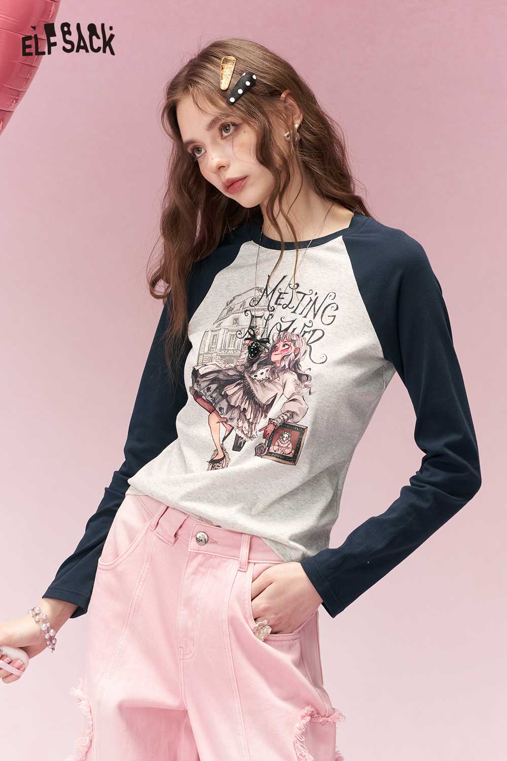 Y2K Contrast Sleeve Fitted Long Sleeve Tshirt