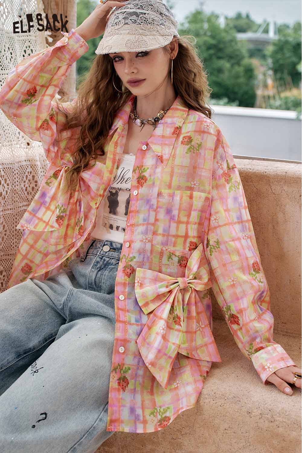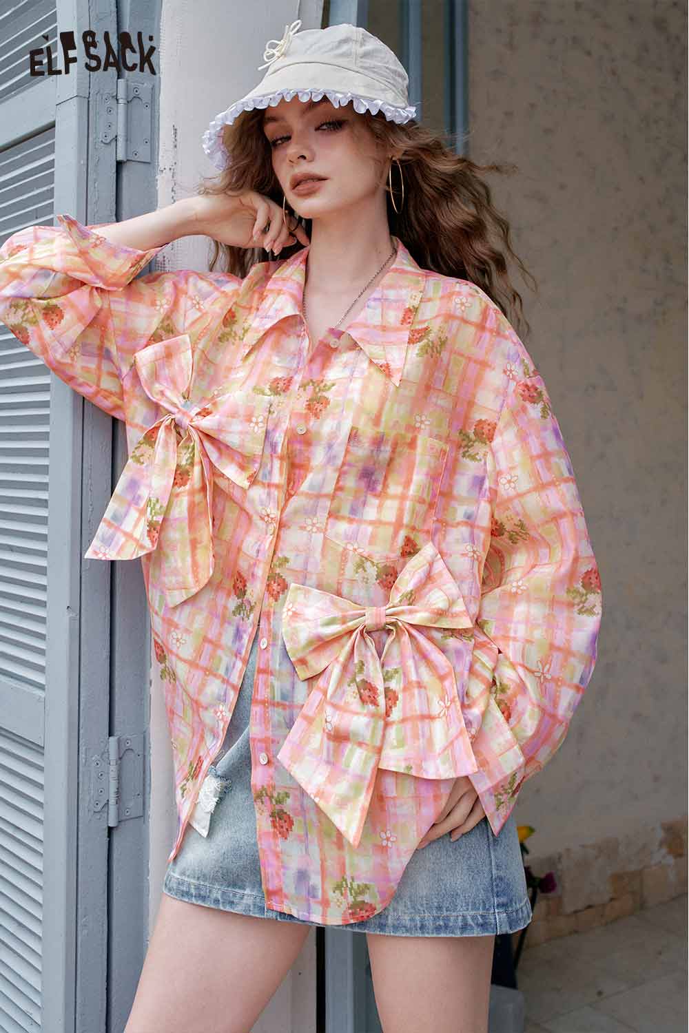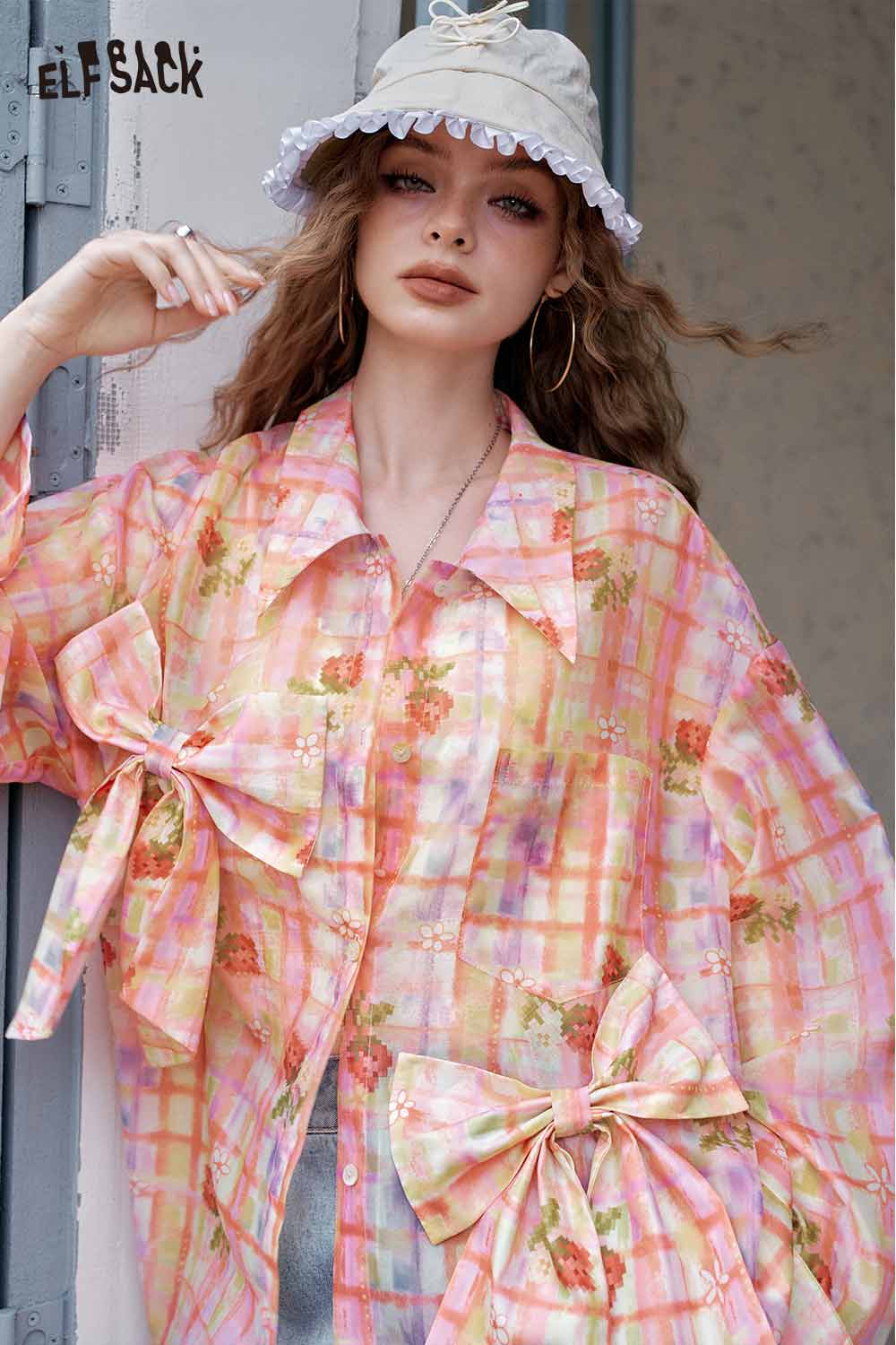 Cute 3D Bow Dopamine Long Sleeve Design Blouse