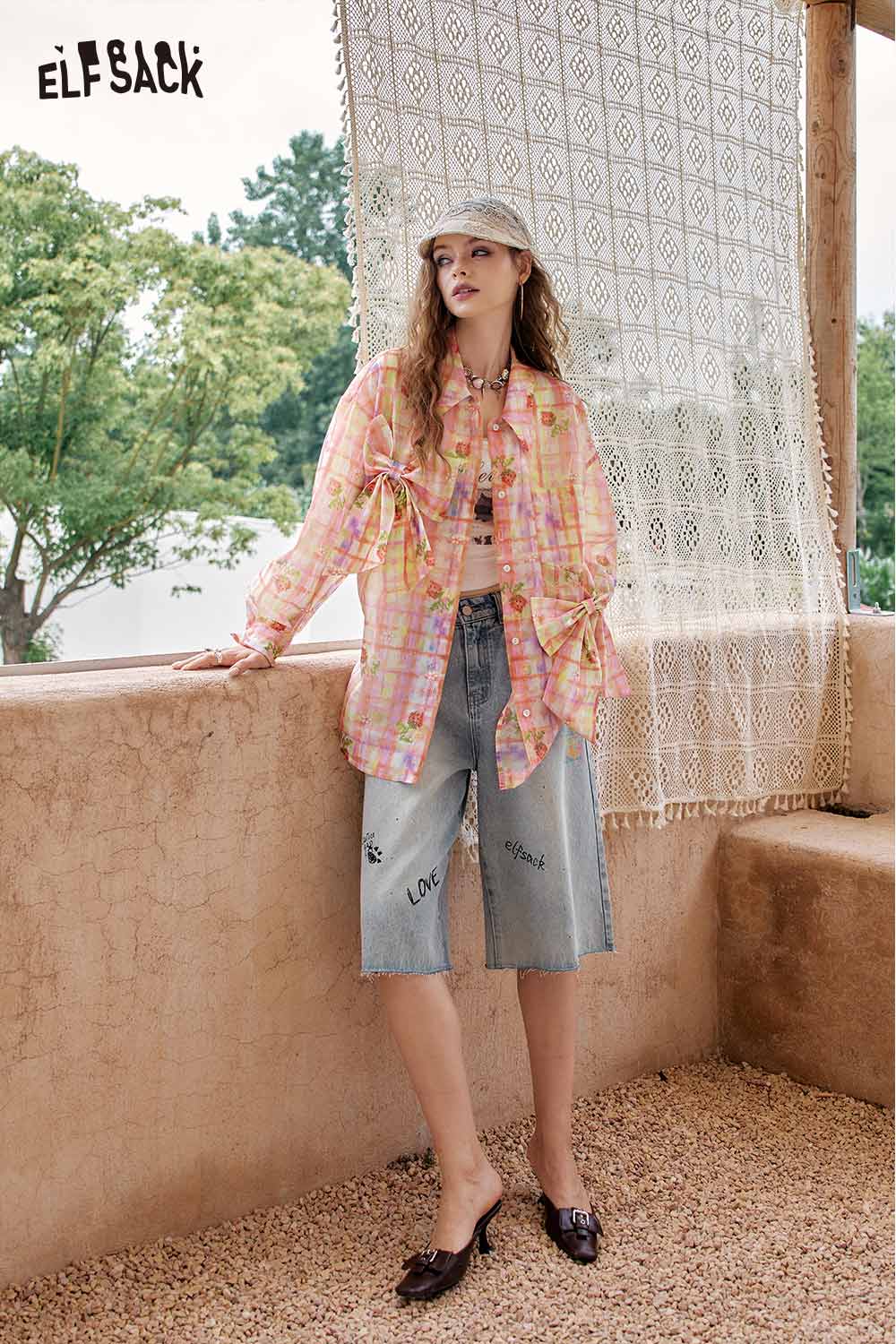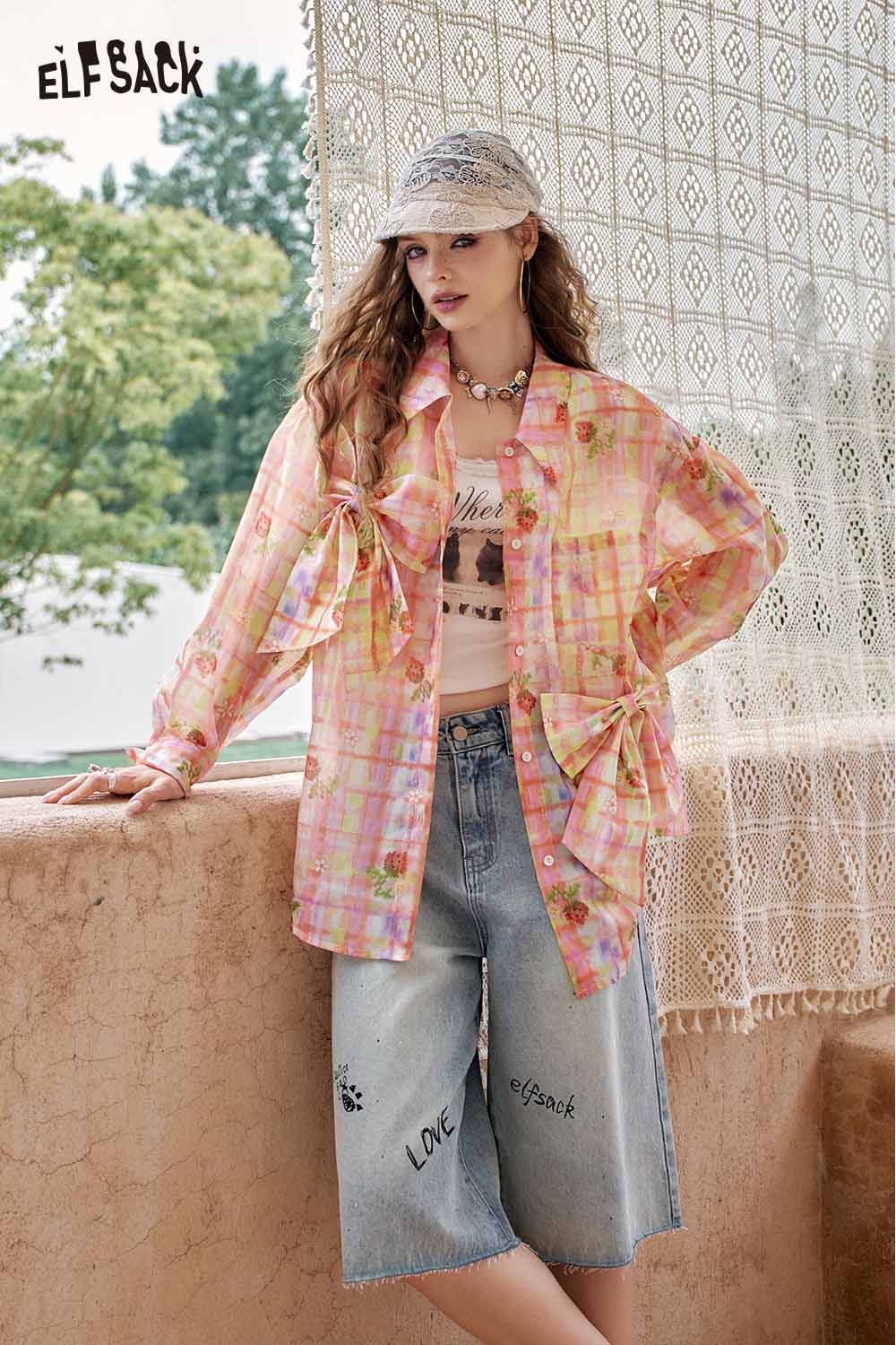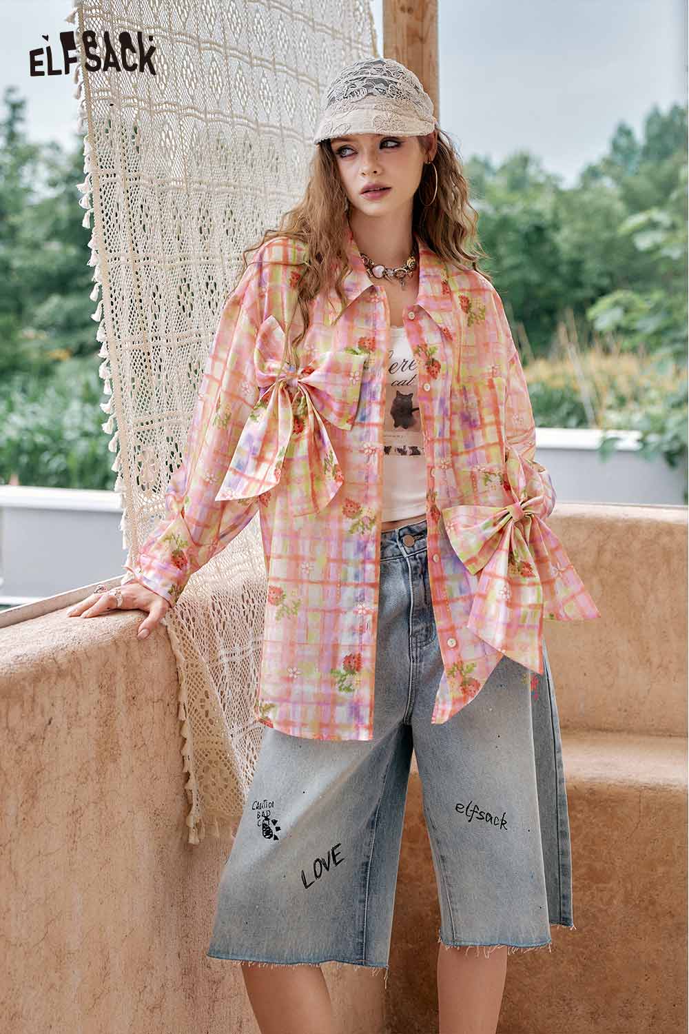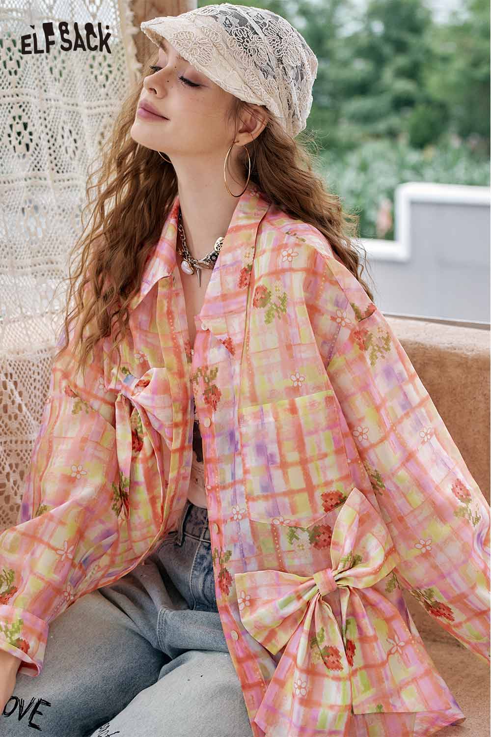 Cute 3D Bow Dopamine Long Sleeve Design Blouse