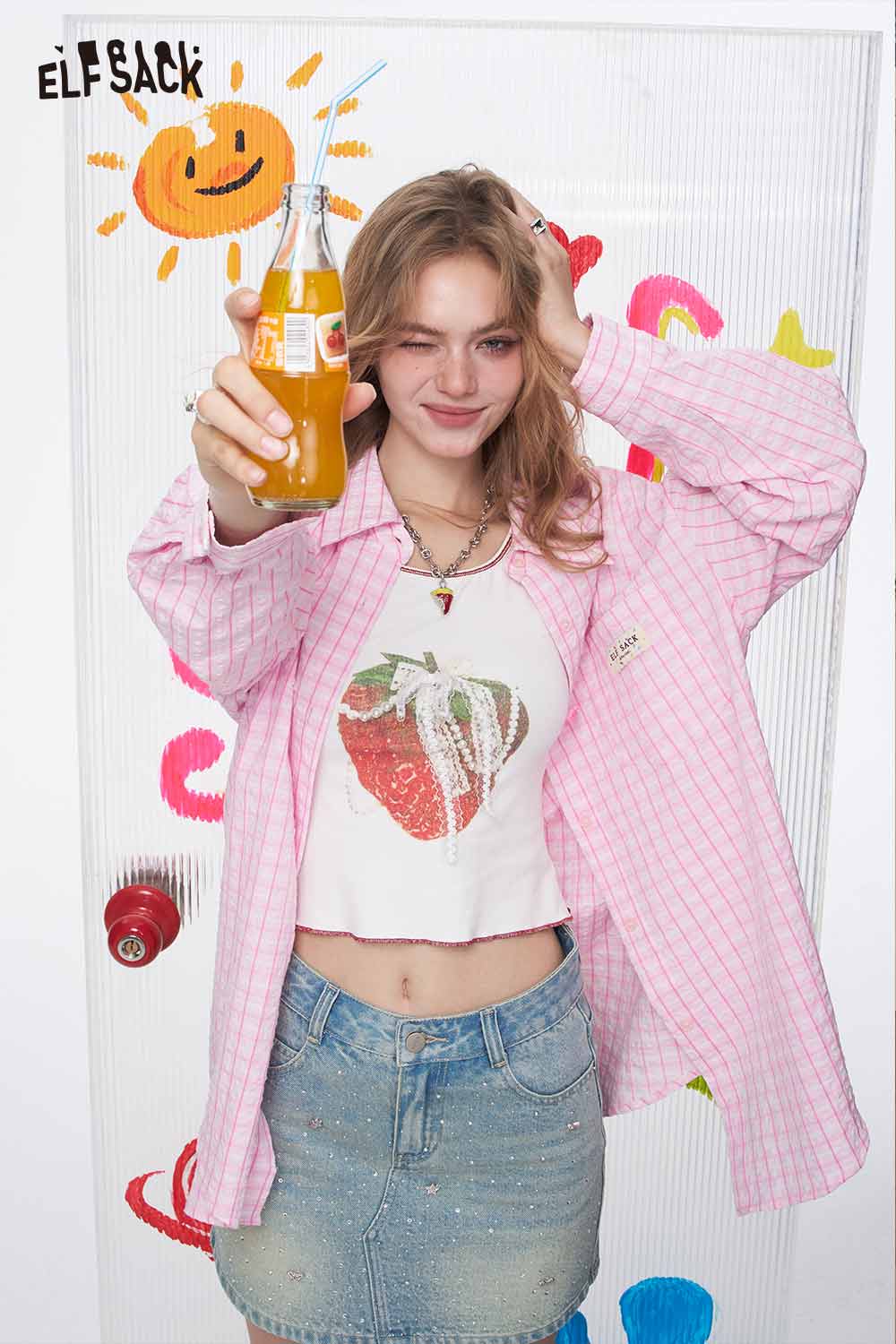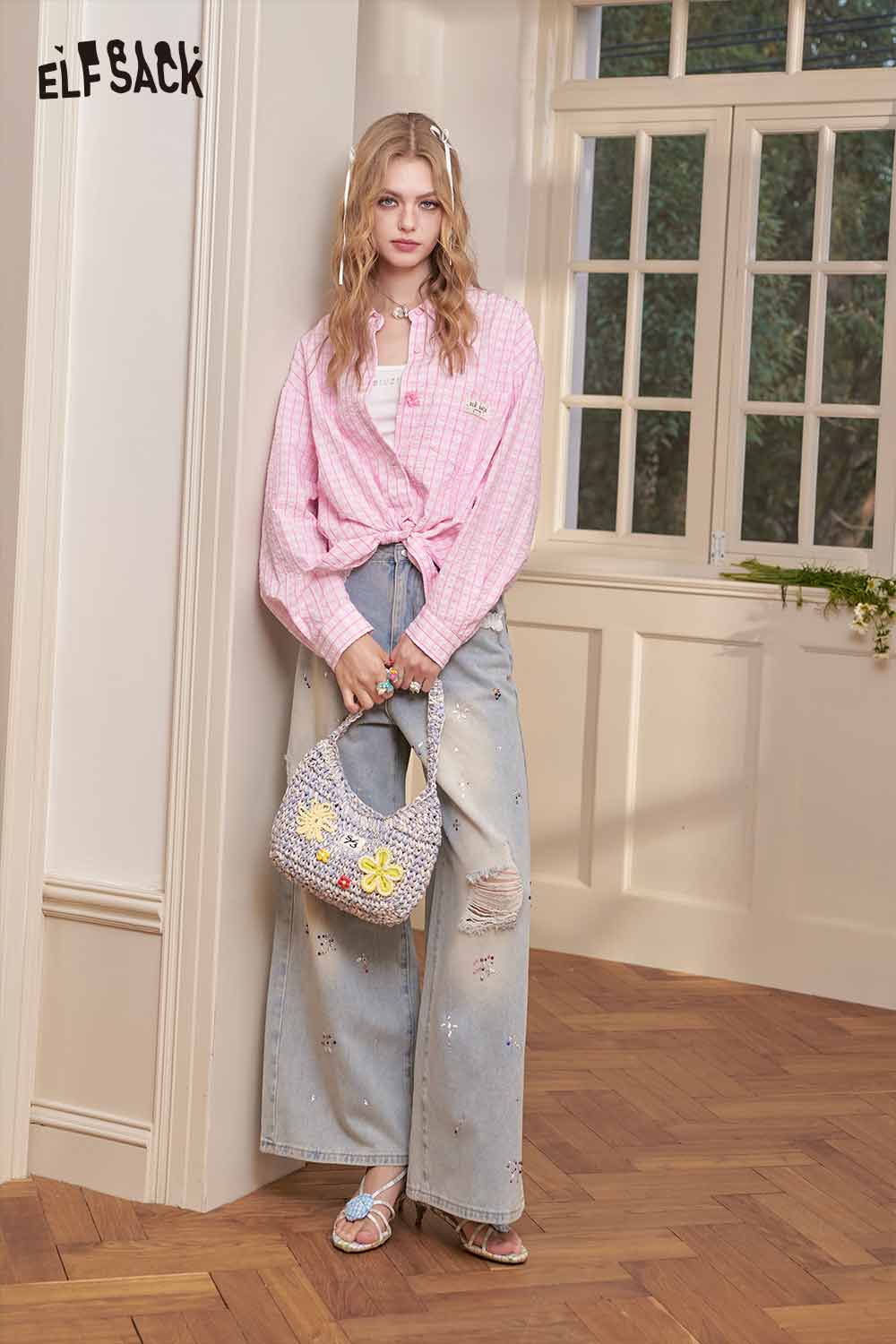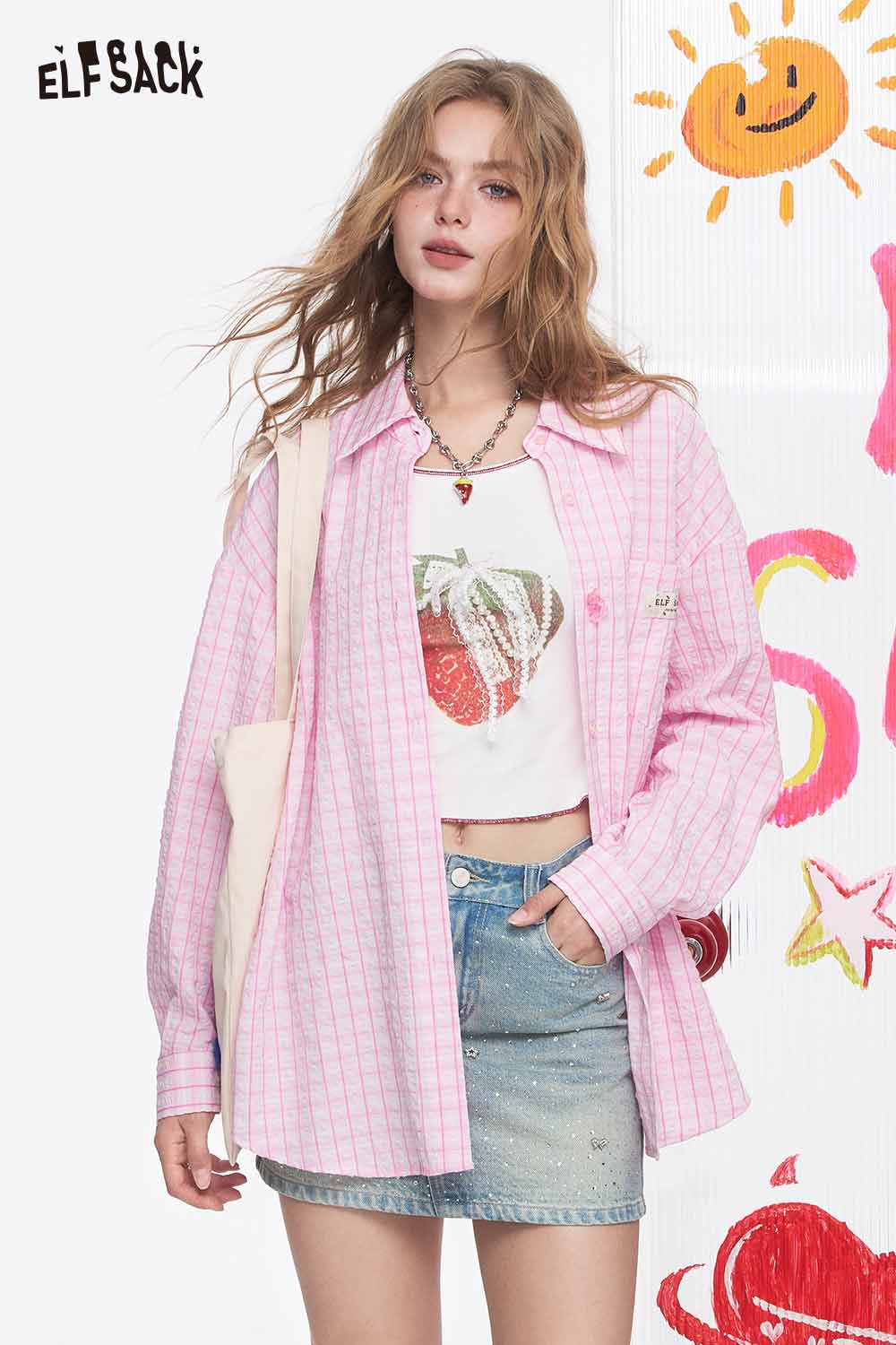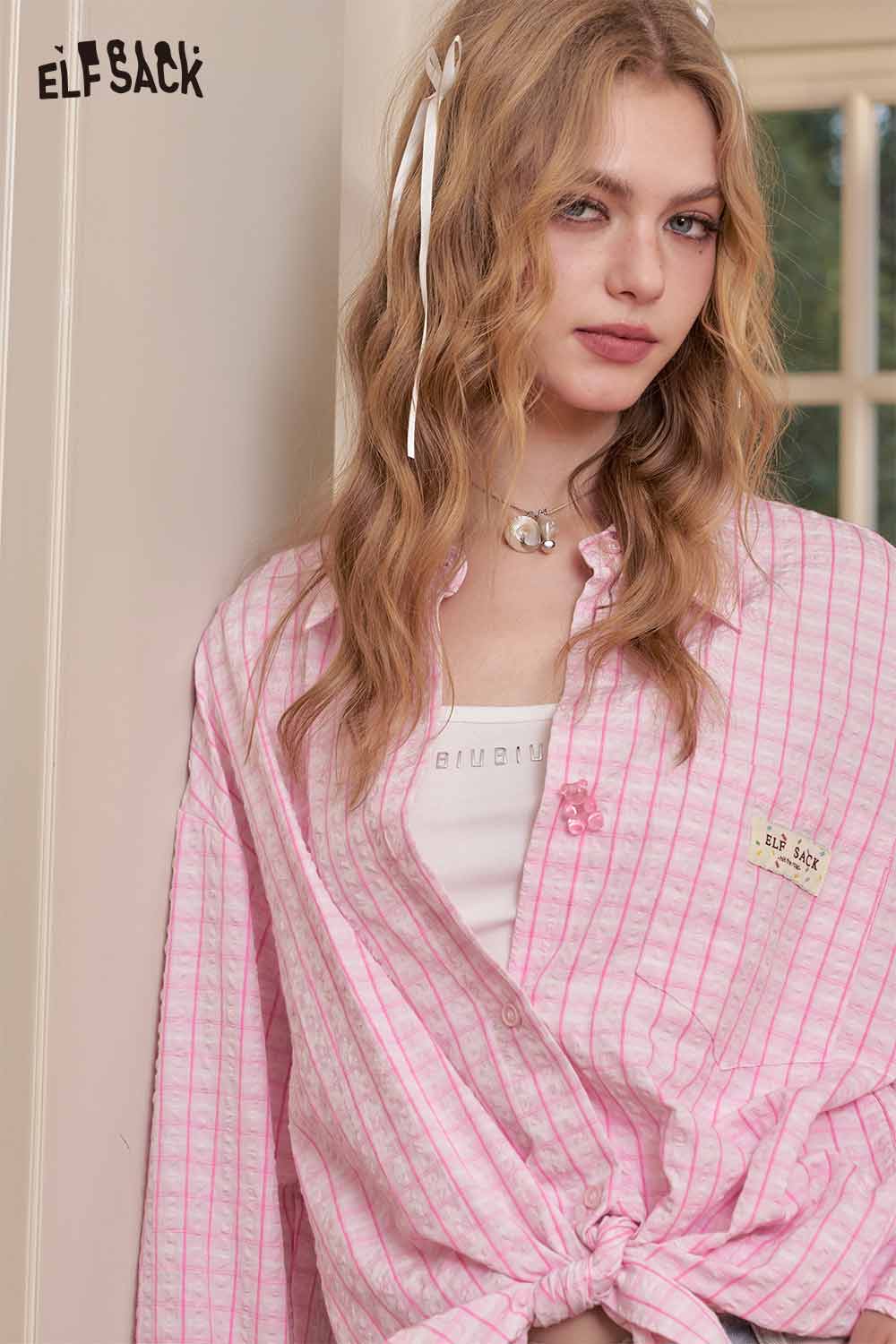 Cute Textured Pink Plaid Long Sleeve Boyfriend Shirt